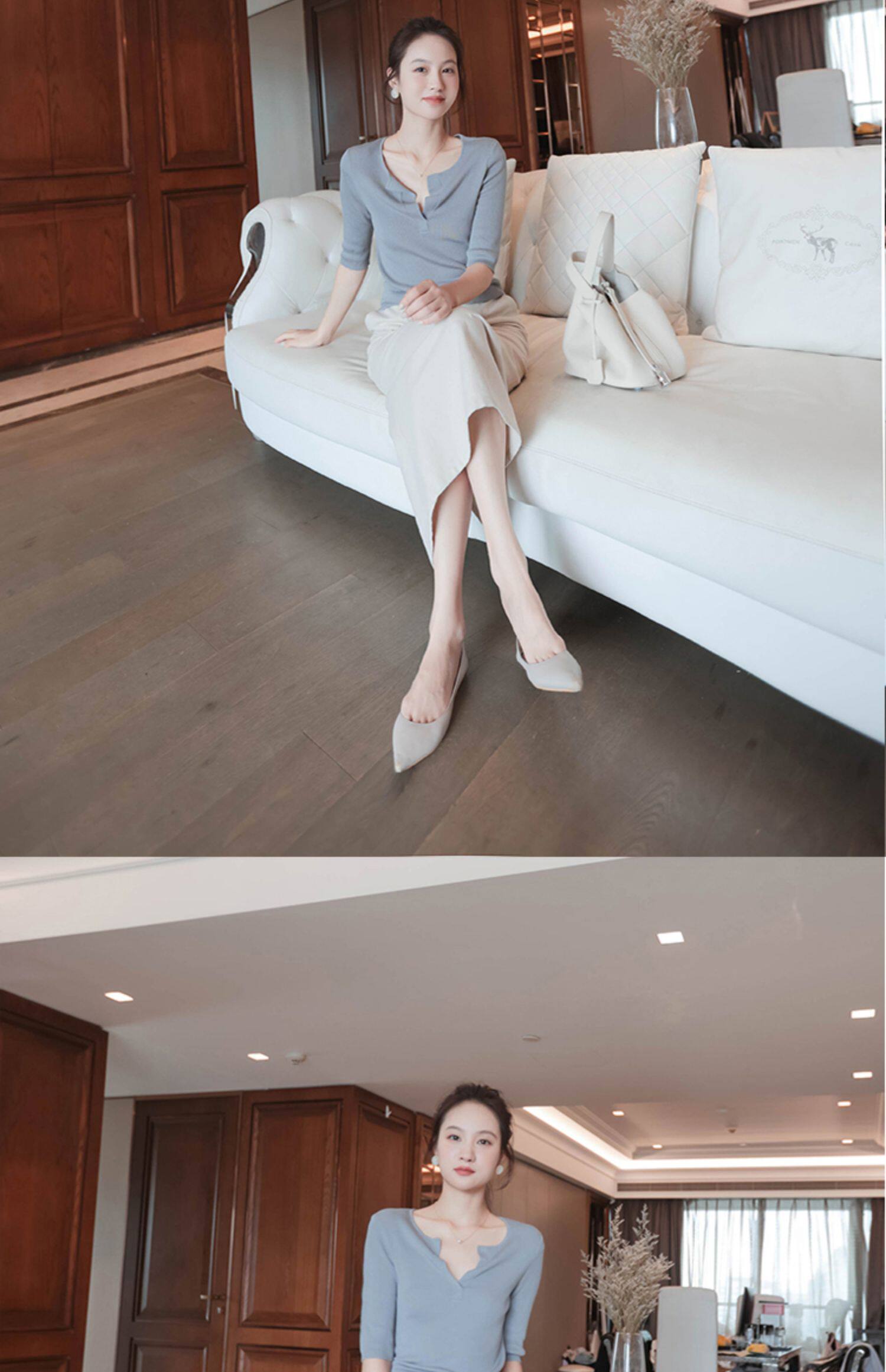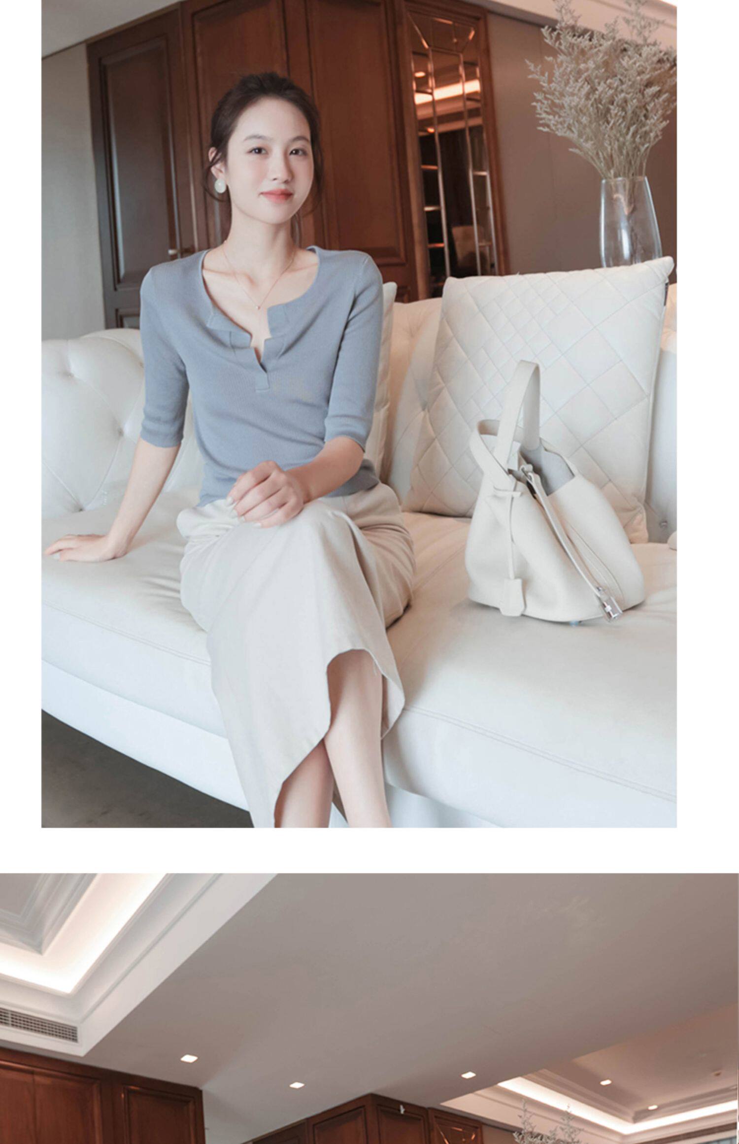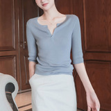 Модный шелковый летний базовый трикотажный свитер, футболка, V-образный вырез, облегающий крой