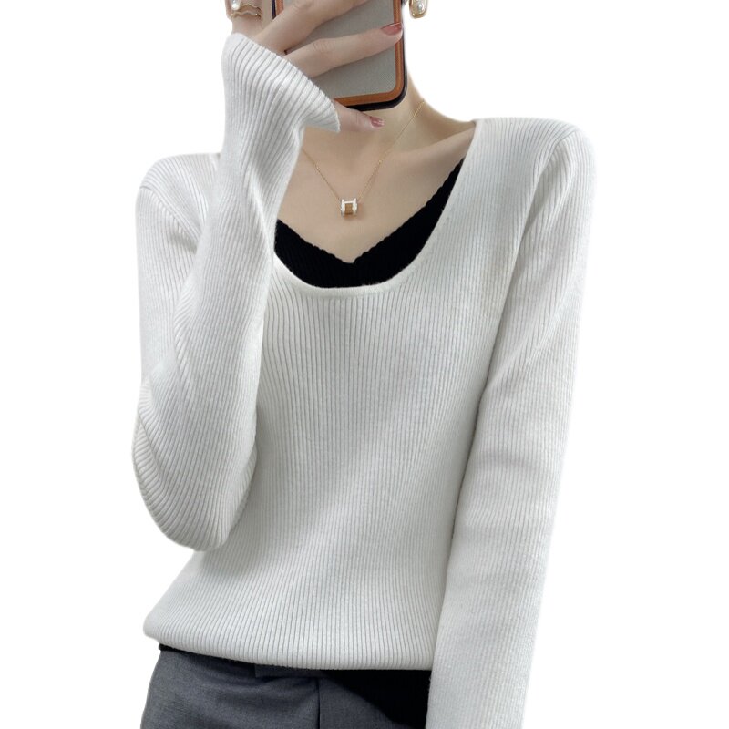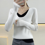 Свитер, комплект, приталенный трикотажный лонгслив, удерживающее тепло шерстяное белье для повседневной носки, большой размер
