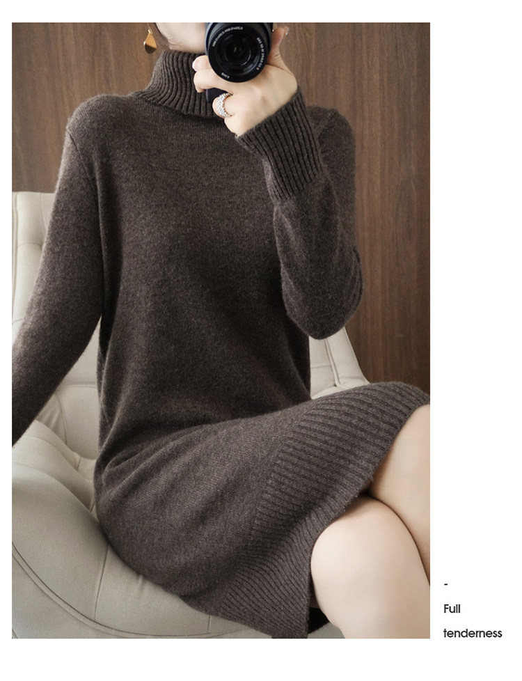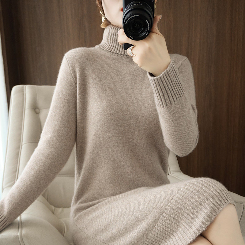 Демисезонное шерстяное платье, джинсы с начесом, длинный трикотажный свитер, оверсайз, средней длины