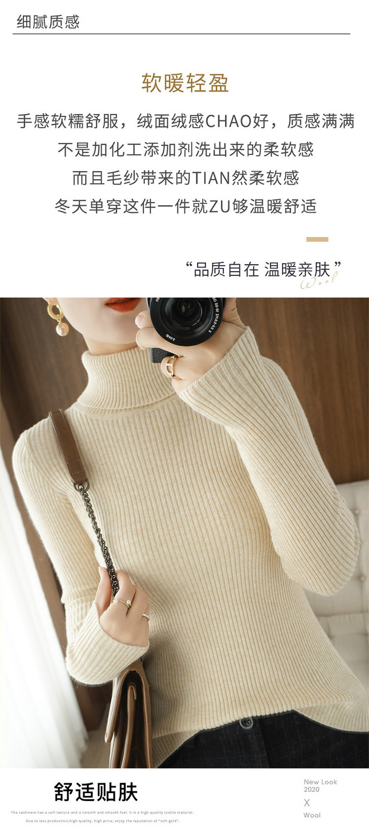 Осенний демисезонный кашемировый шерстяной базовый трикотажный свитер, облегающий крой