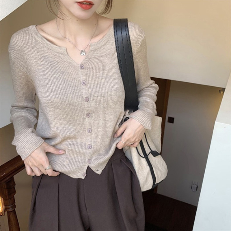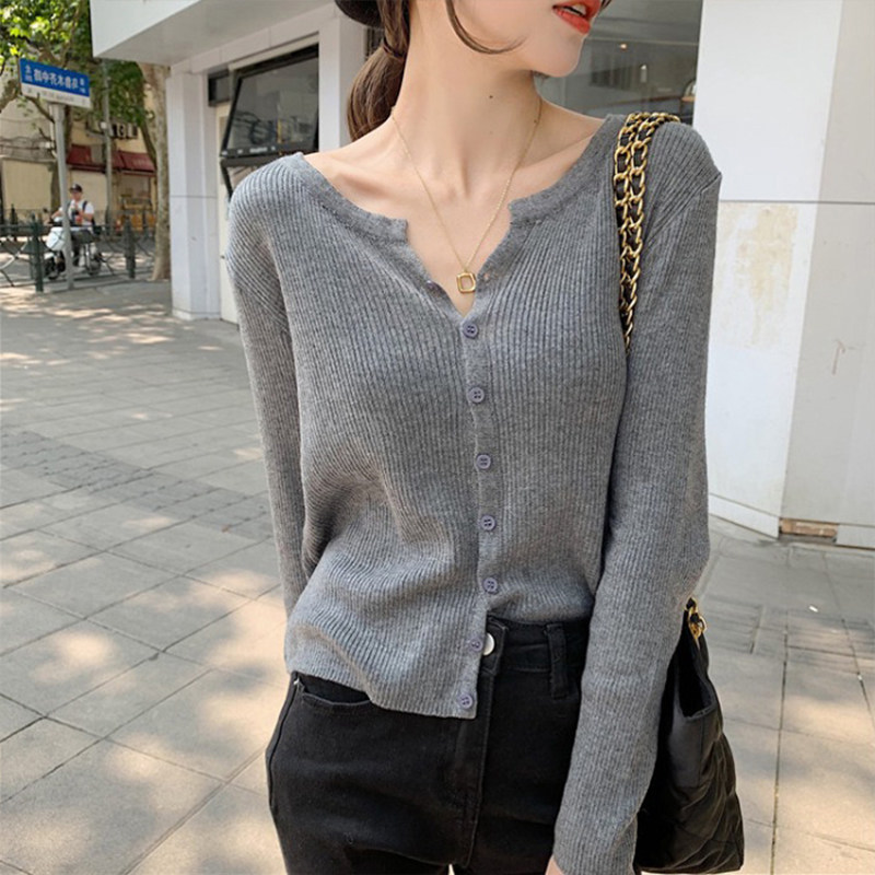 Демисезонный трикотажный тонкий свитер, базовый лонгслив, короткая куртка, кардиган