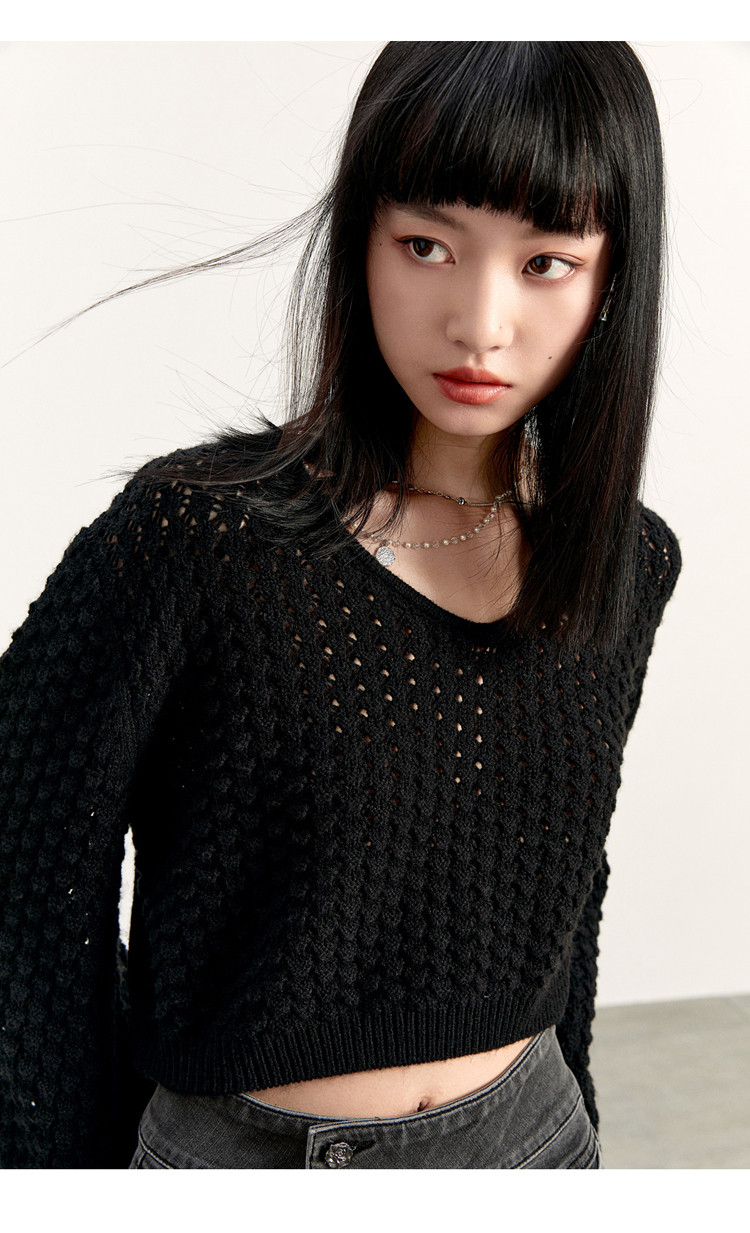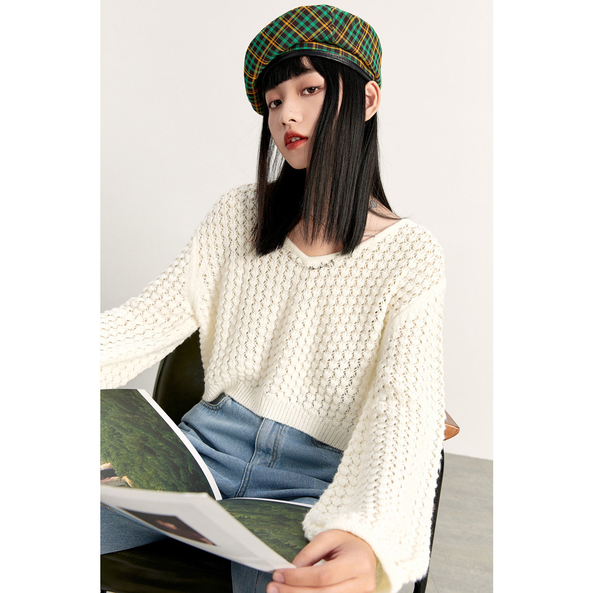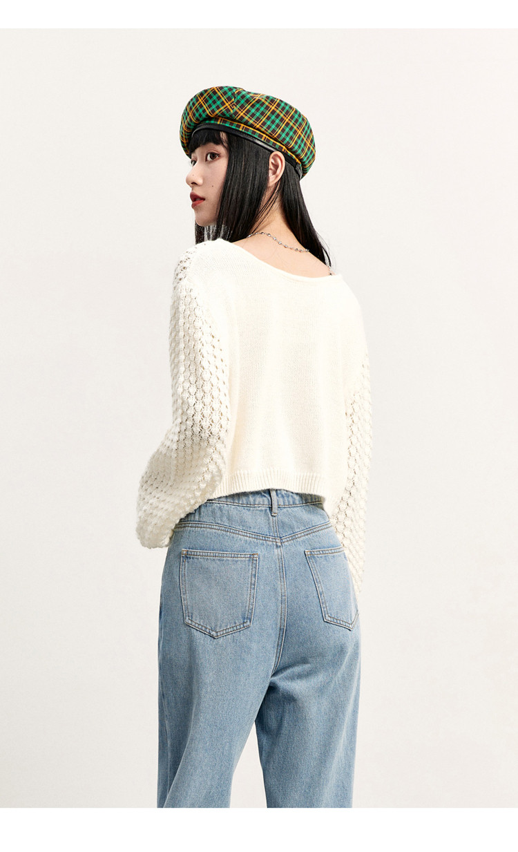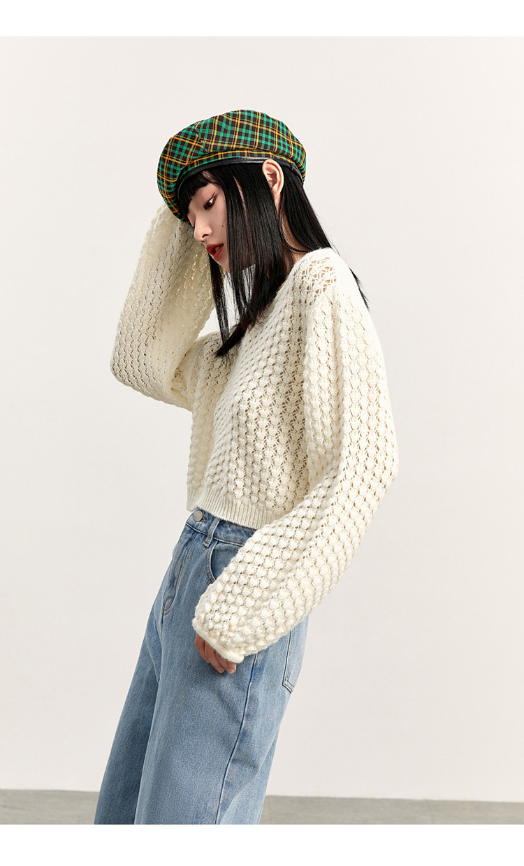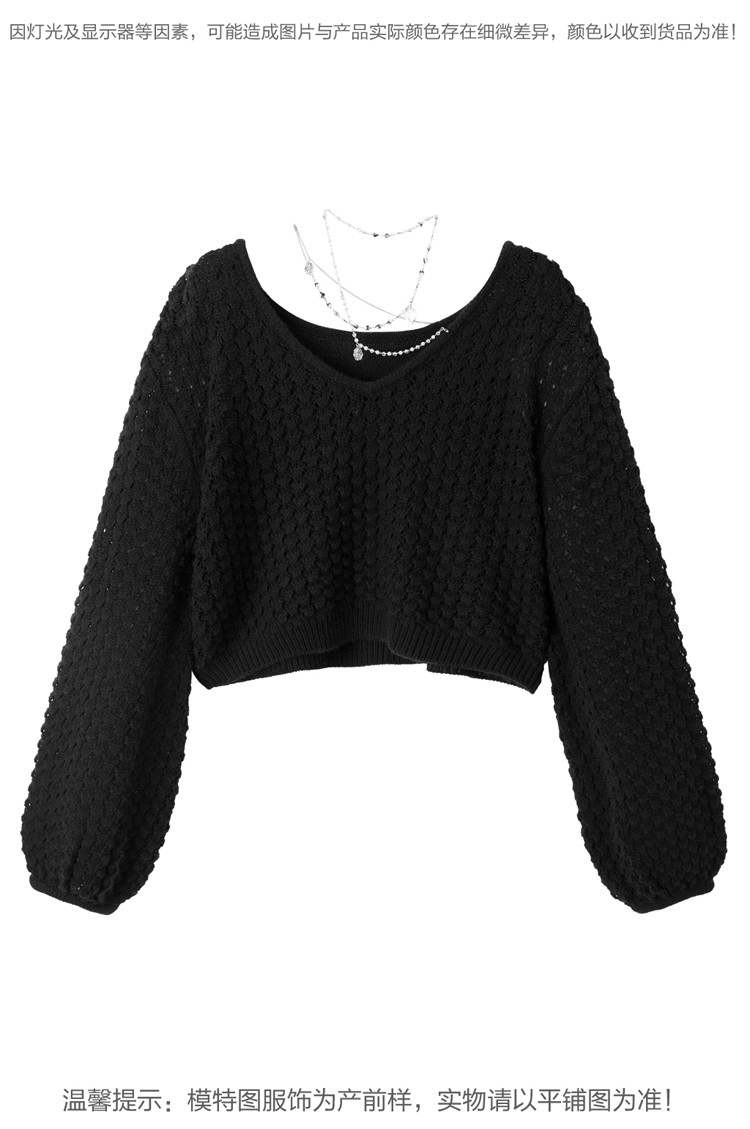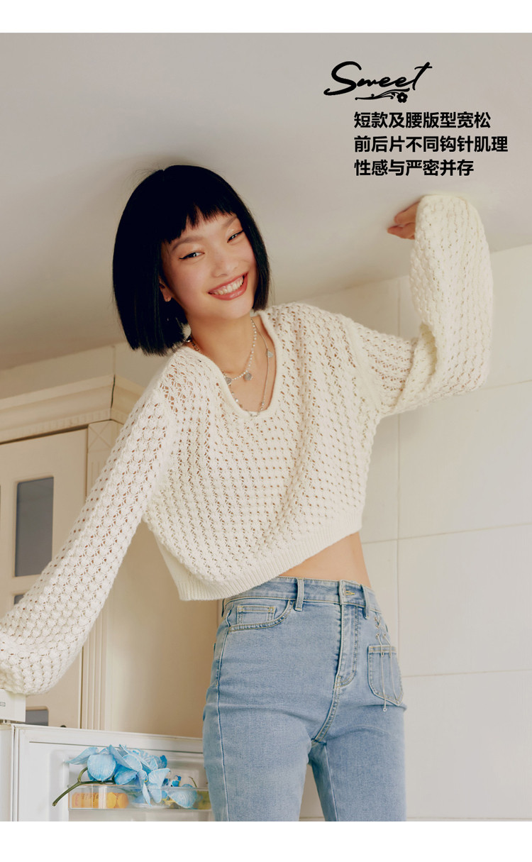 Короткий трикотажный фонарь, весенний белый свитер, V-образный вырез, новая коллекция, оверсайз