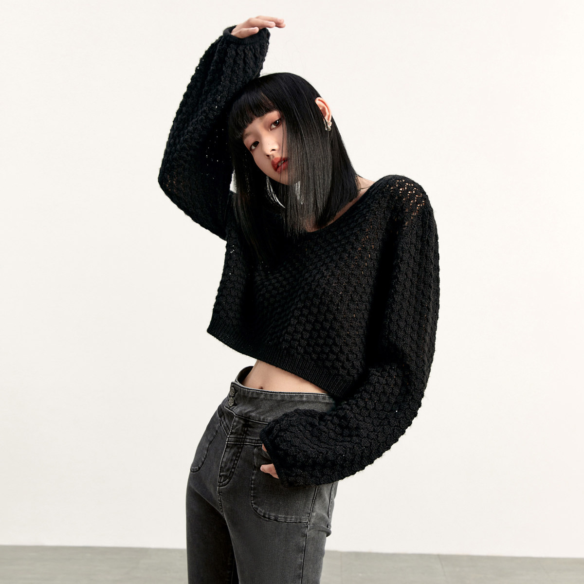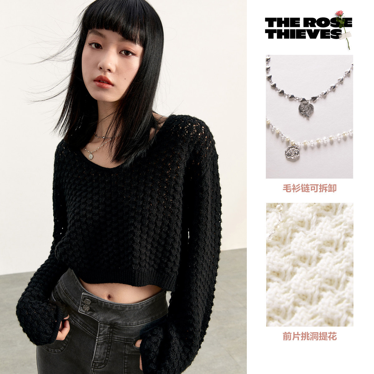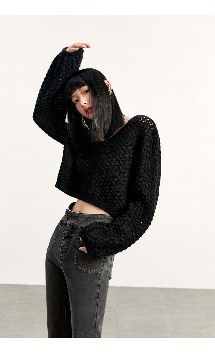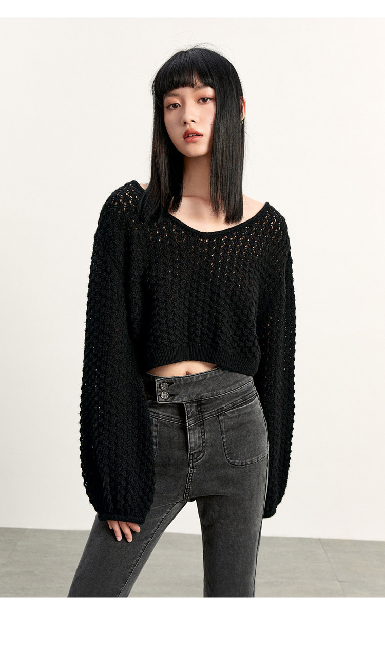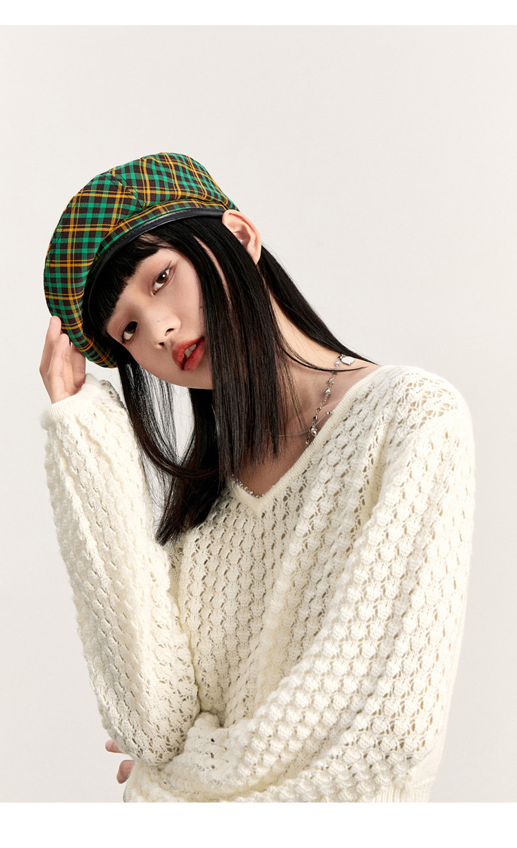 Короткий трикотажный фонарь, весенний белый свитер, V-образный вырез, новая коллекция, оверсайз