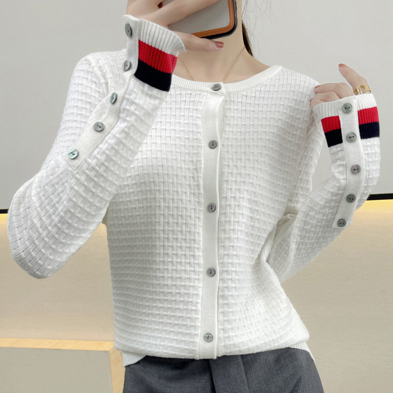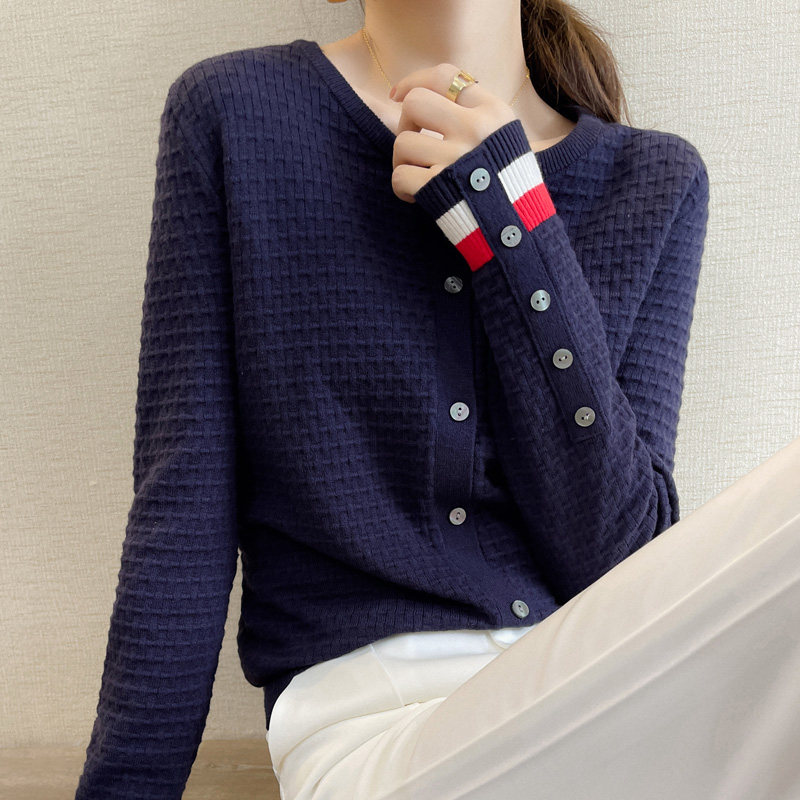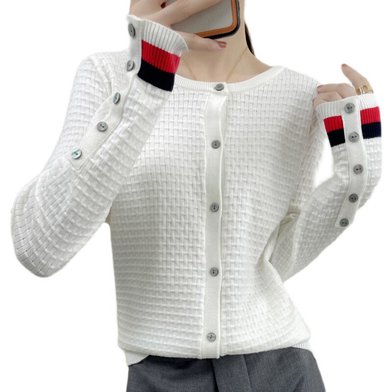Демисезонный кашемировый трикотажный кардиган, свитер, куртка, базовый лонгслив с круглым воротником, коллекция 2021, оверсайз
