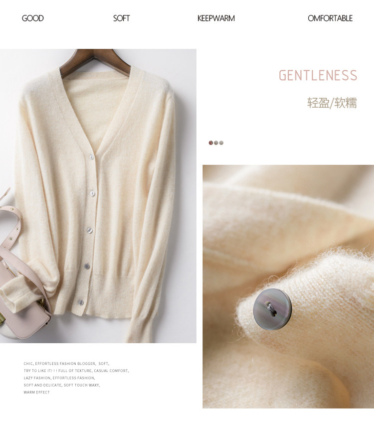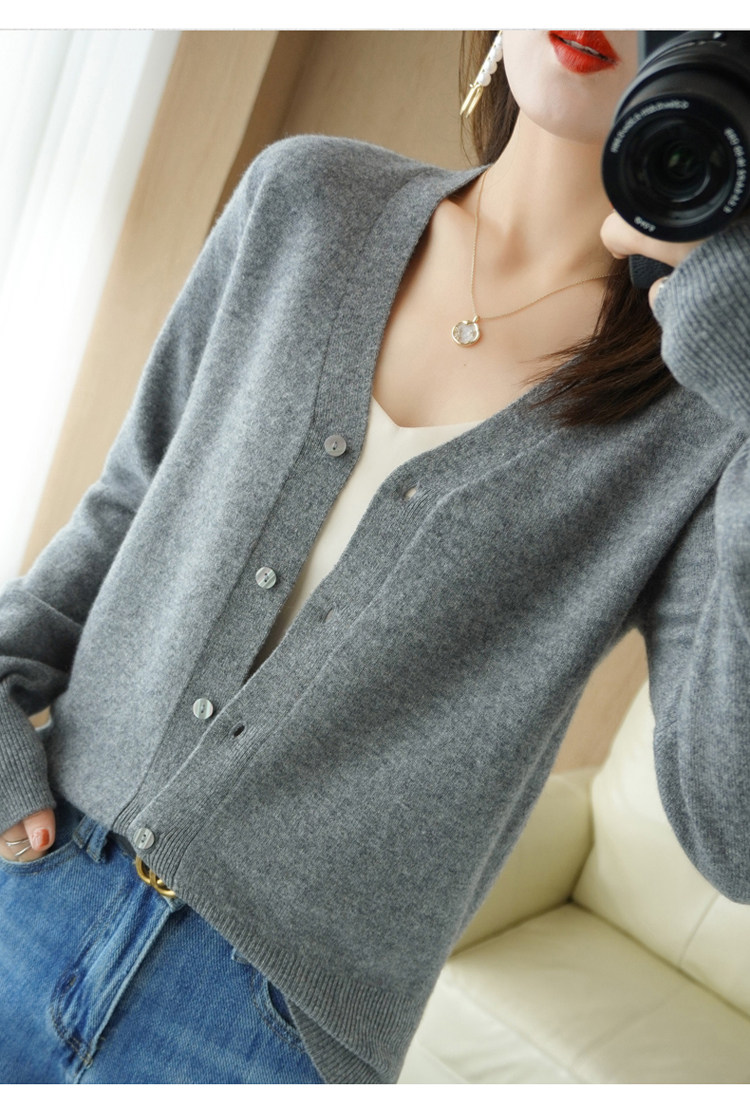 Шерстяной кардиган, трикотажная куртка, демисезонный пуховик, кашемировый свитер, V-образный вырез, коллекция 2023