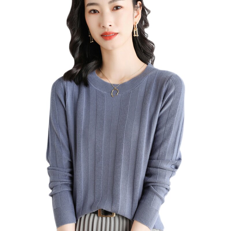 Демисезонный тонкий трикотажный лонгслив, короткий свитер с круглым воротником, облегающий крой