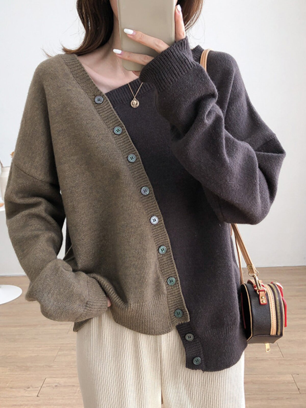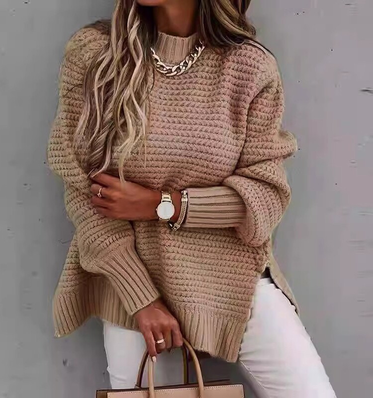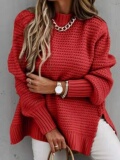 Трикотажный лонгслив, свитер, европейский стиль, оверсайз, ассиметричный крой