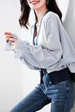 Содержит шерстяные трикотажные панели.Дизайн сращивания ослабляет ощущение полос и обеспечивает освежающий визуальный эффект. Сине-белая цветовая гамма также соответствует соленому темпераменту всего тела.Избегайте однообразия с предыдущими полосатыми рубашками.Мягкость вязания придает всему изделию нежный темперамент, подчеркивая умиротворенный вид прошедших лет. |