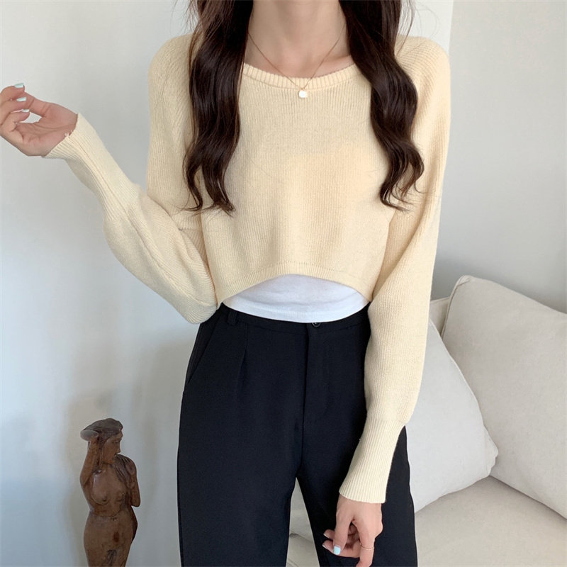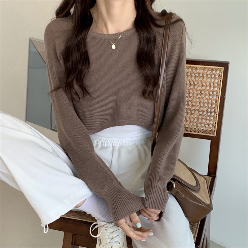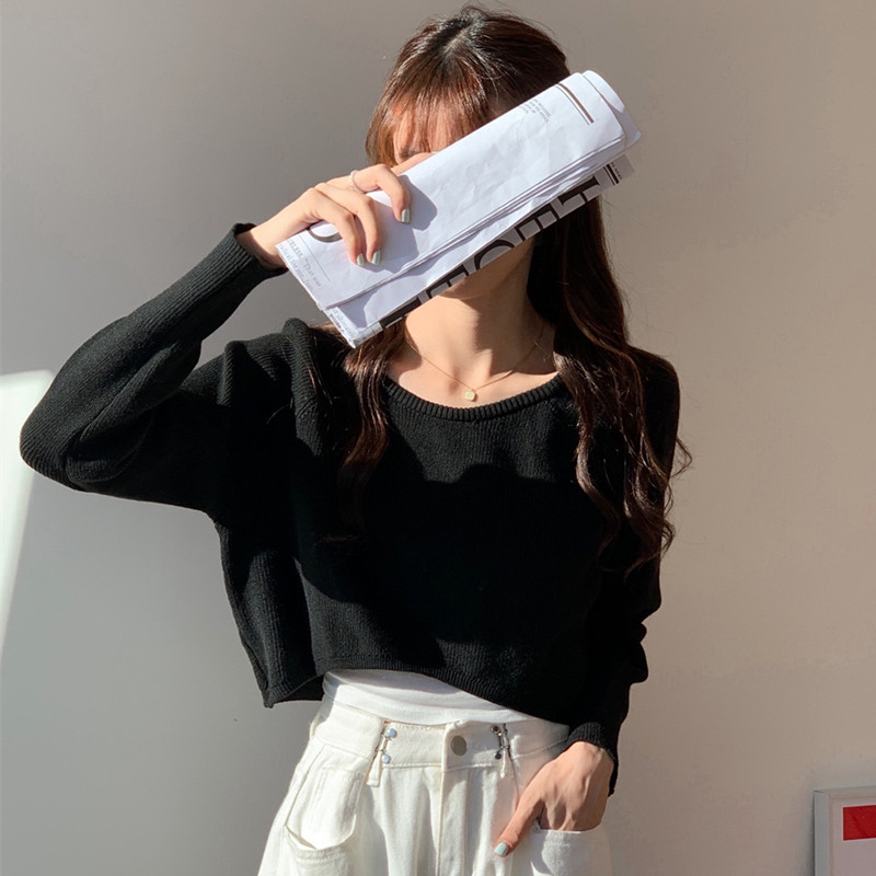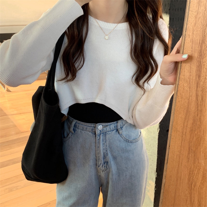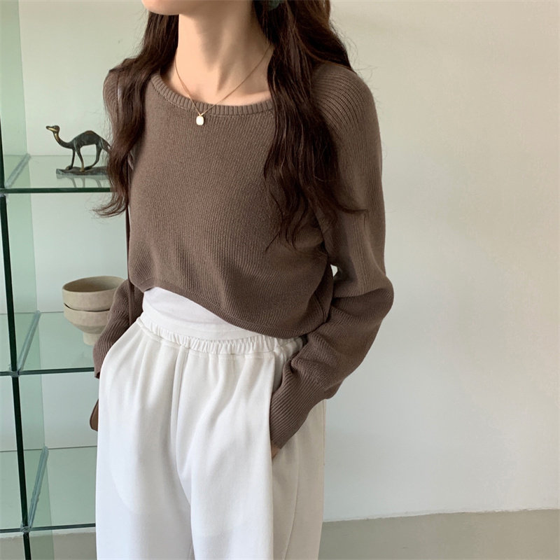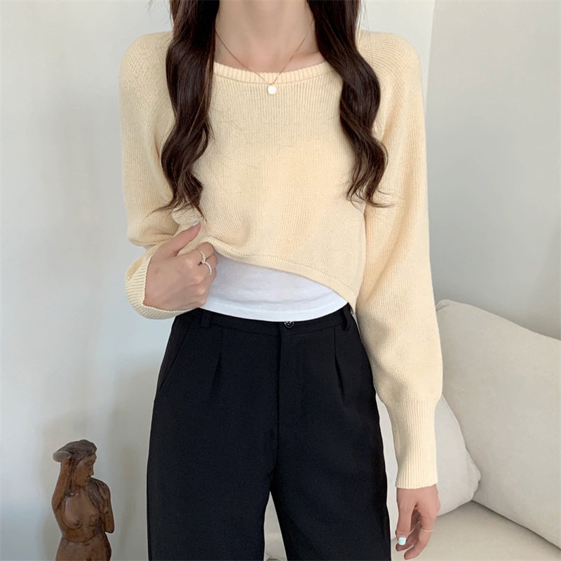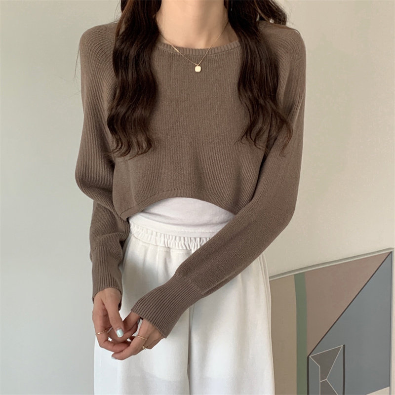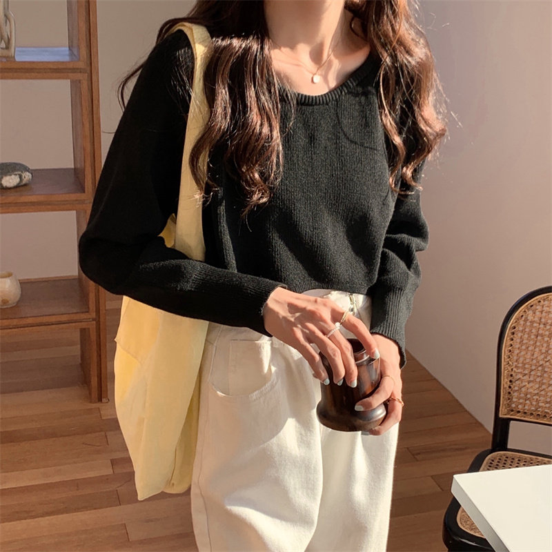 Демисезонный тонкий свитер, трикотажный короткий лонгслив, оверсайз, в западном стиле