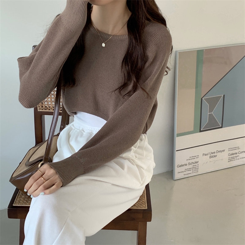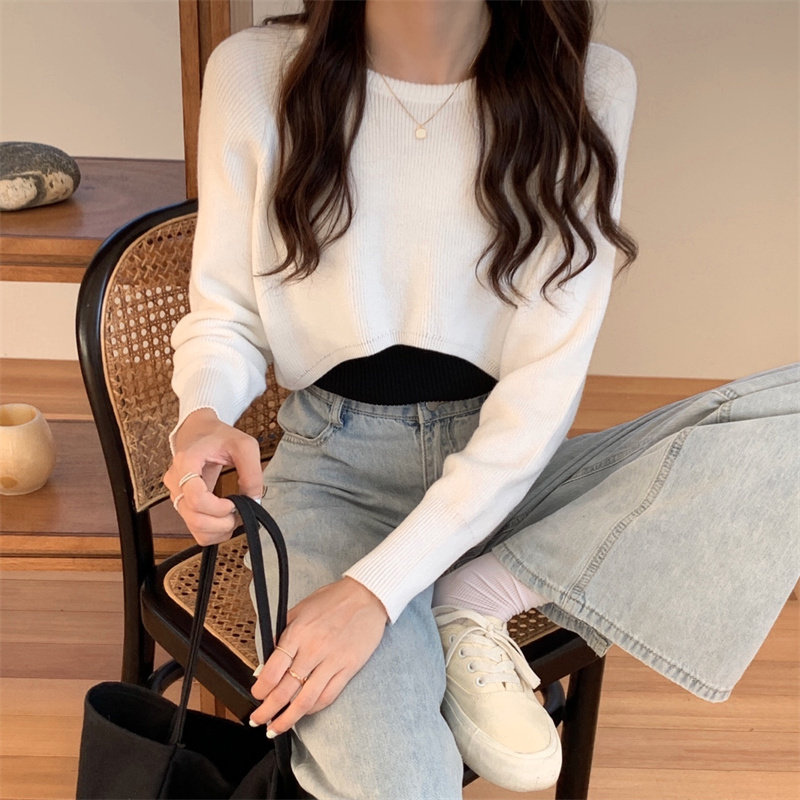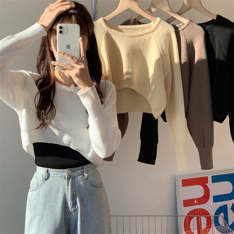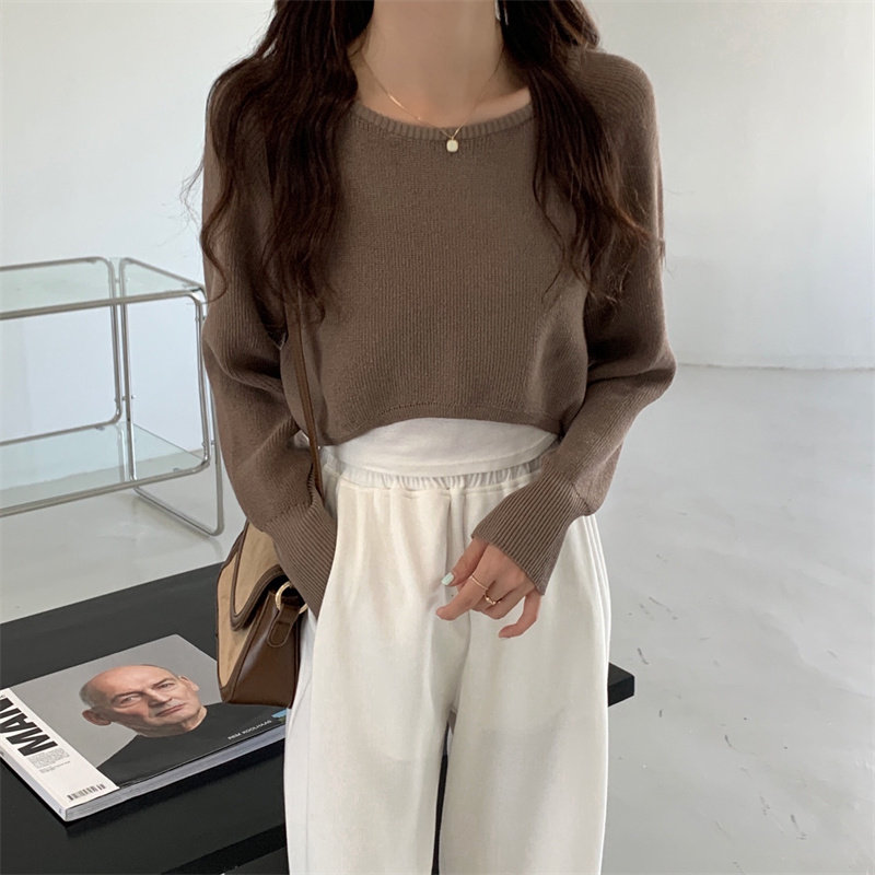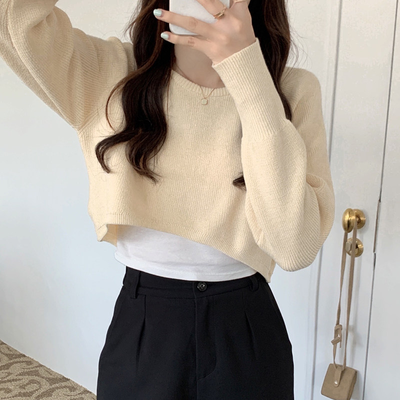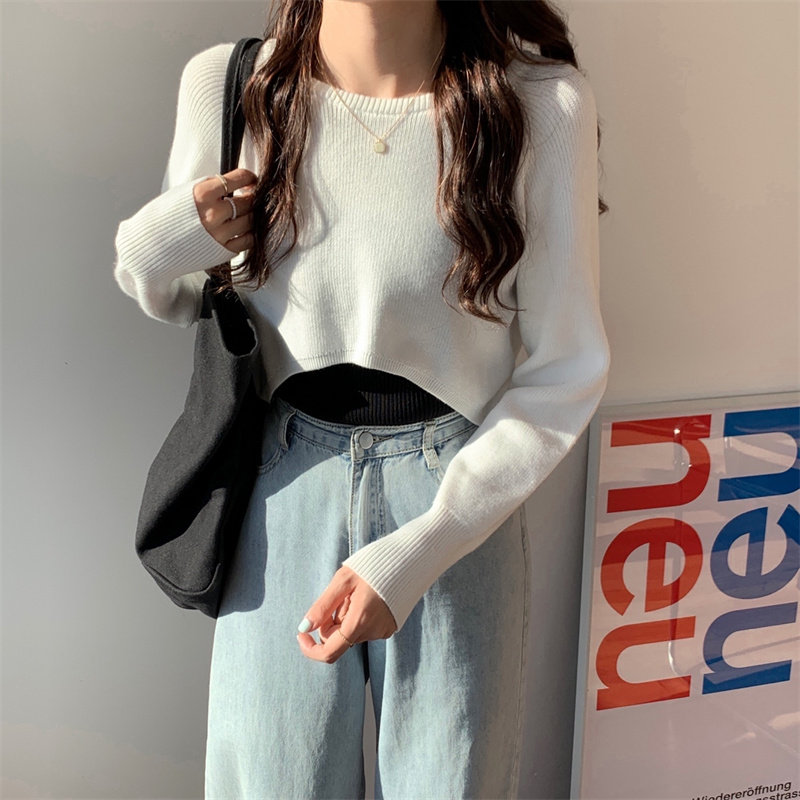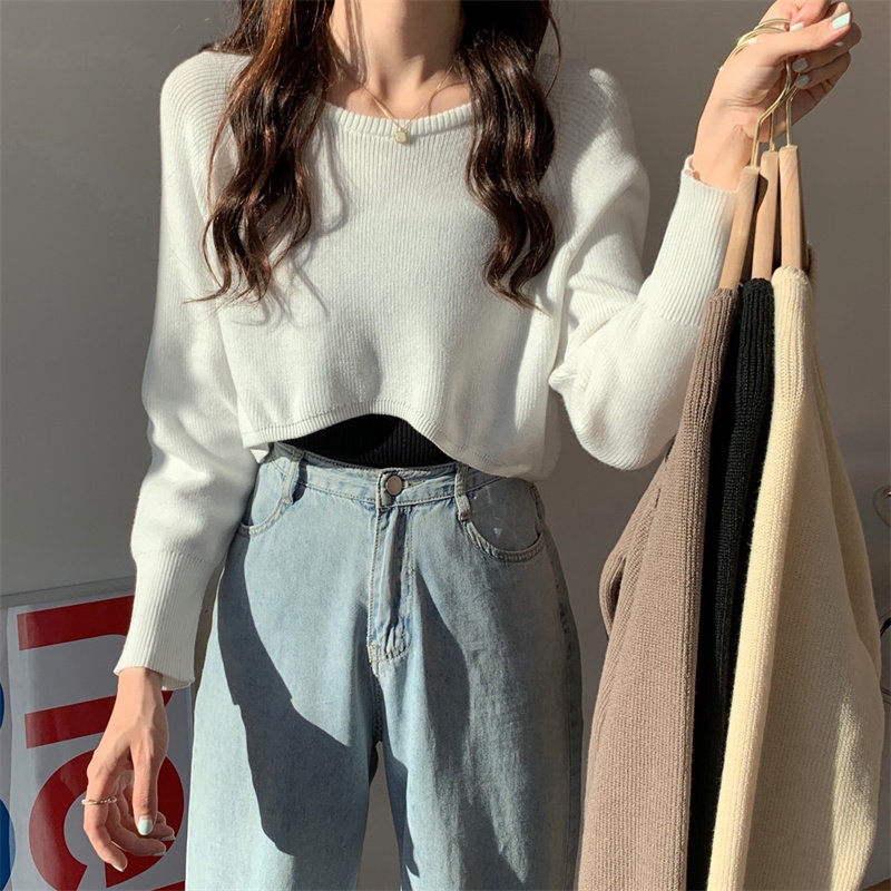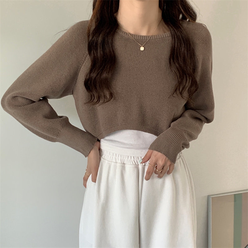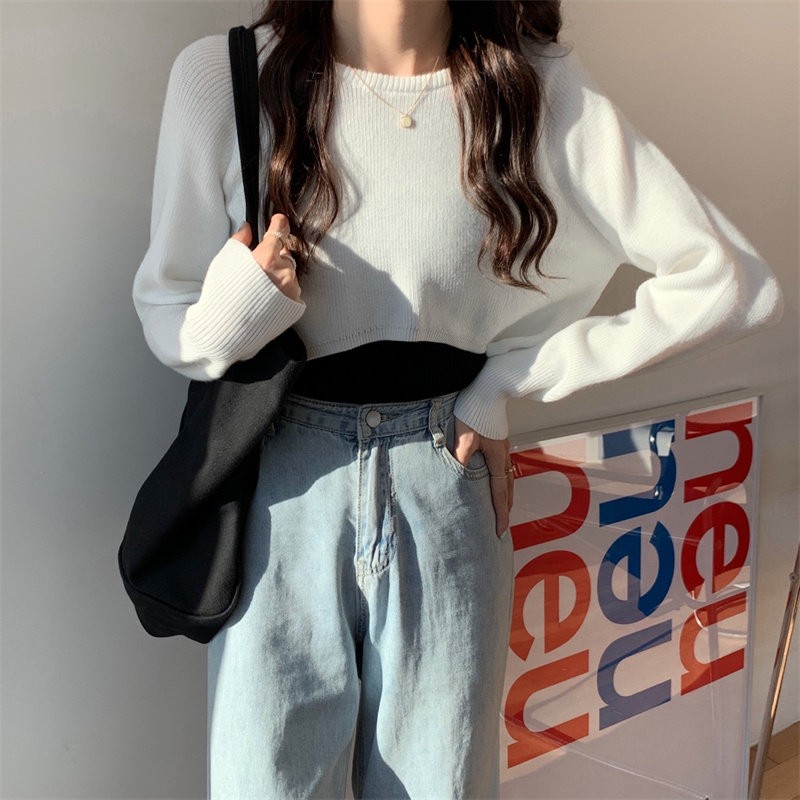 Демисезонный тонкий свитер, трикотажный короткий лонгслив, оверсайз, в западном стиле