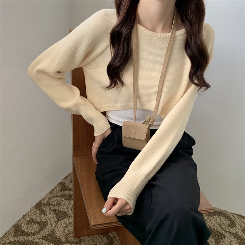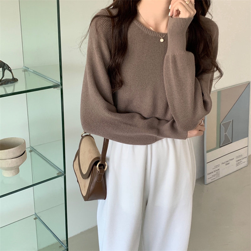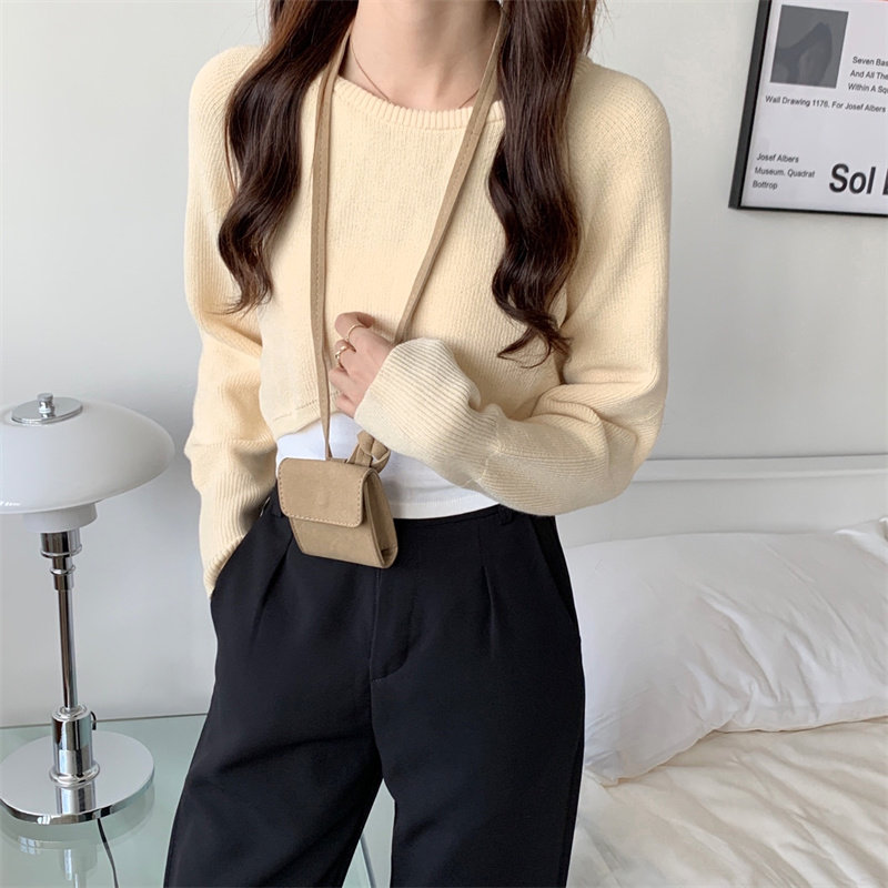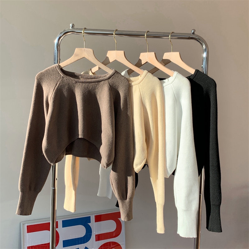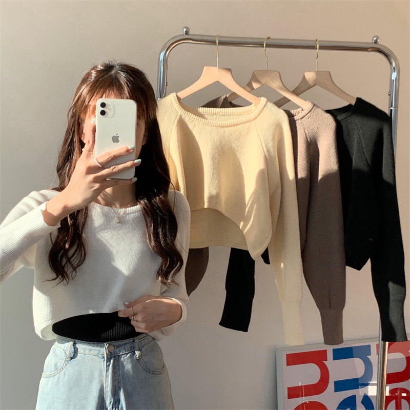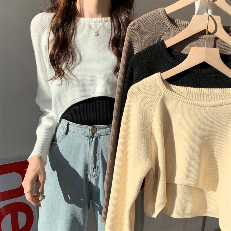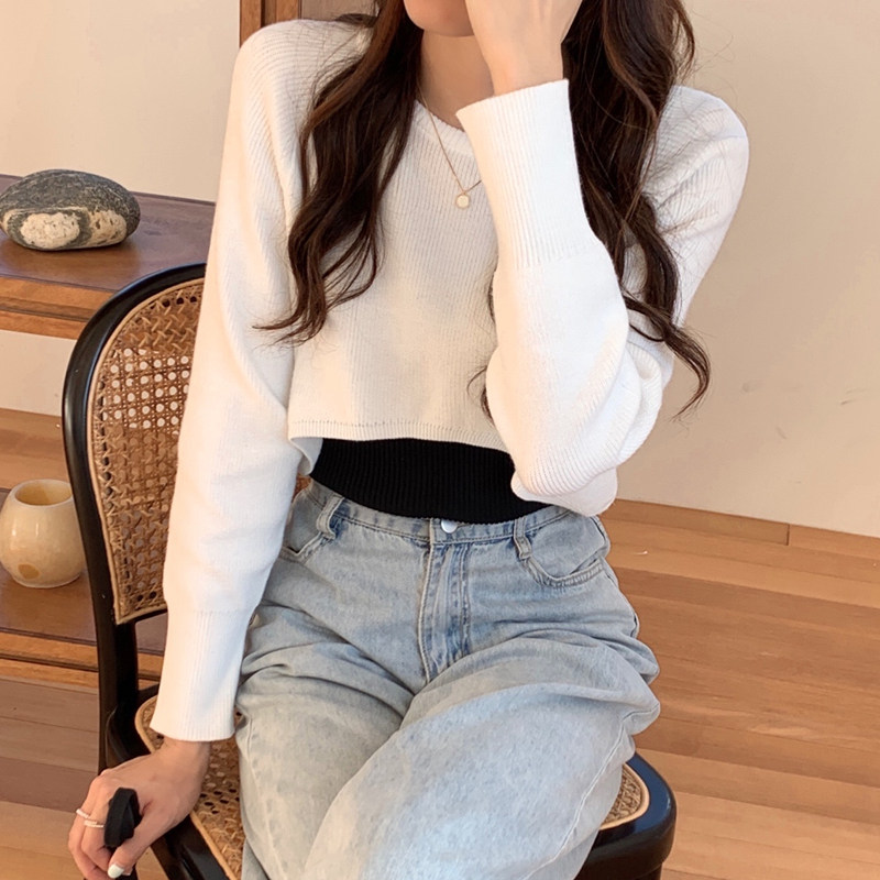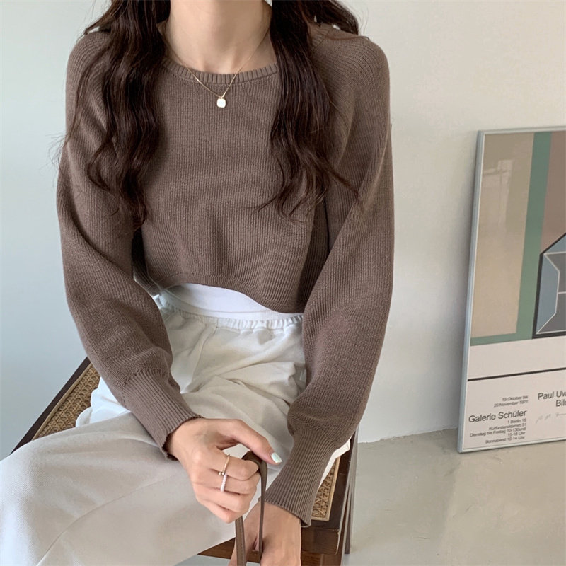 Демисезонный тонкий свитер, трикотажный короткий лонгслив, оверсайз, в западном стиле