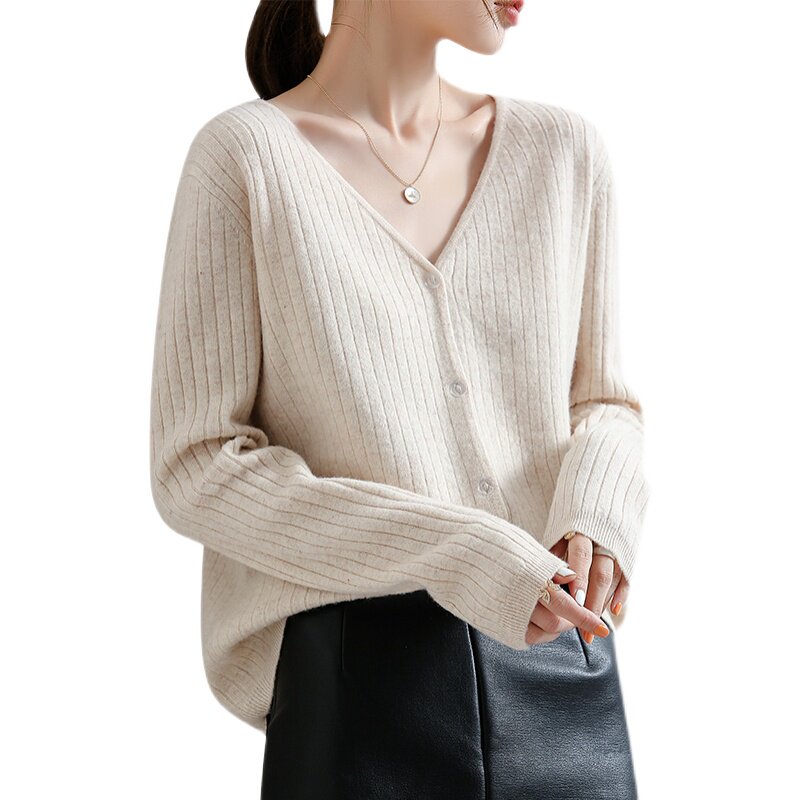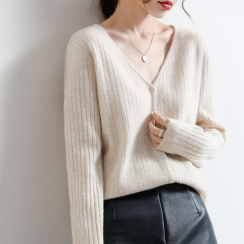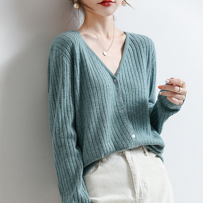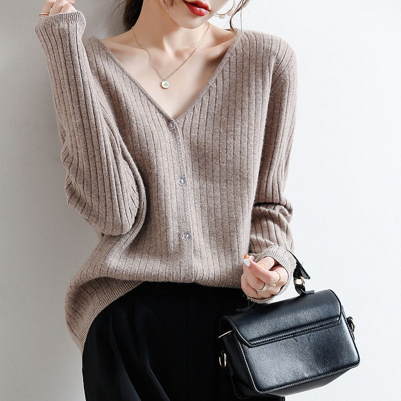 Шерстяной трикотажный свитер, осенний базовый приятный телу кардиган, в западном стиле