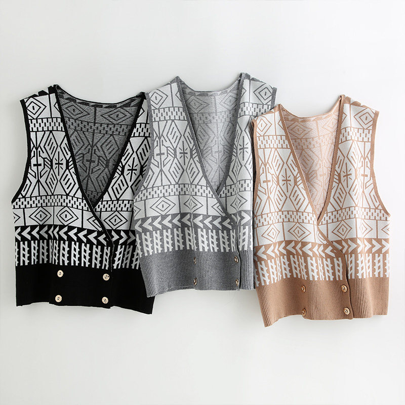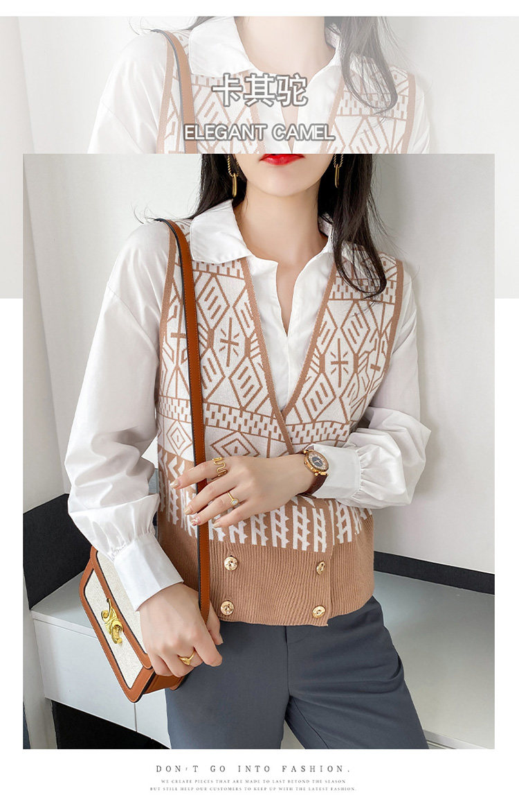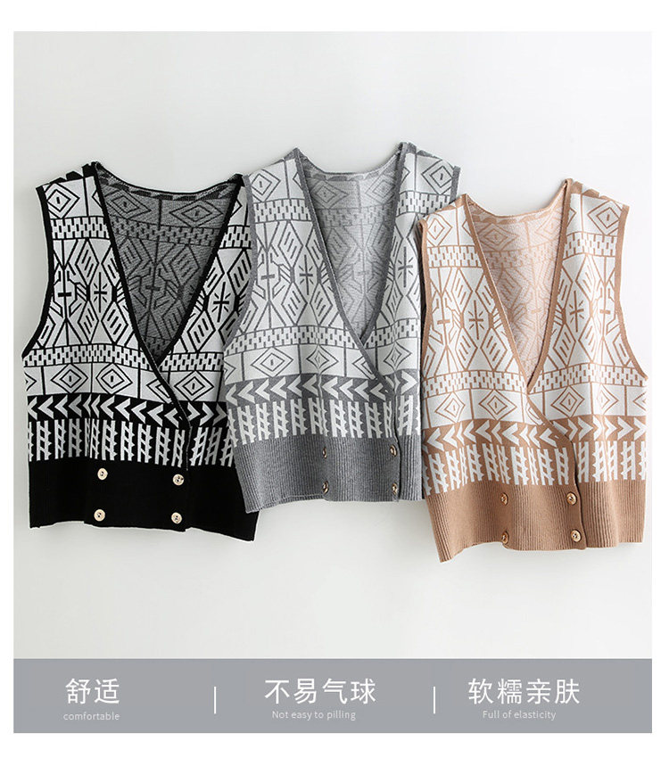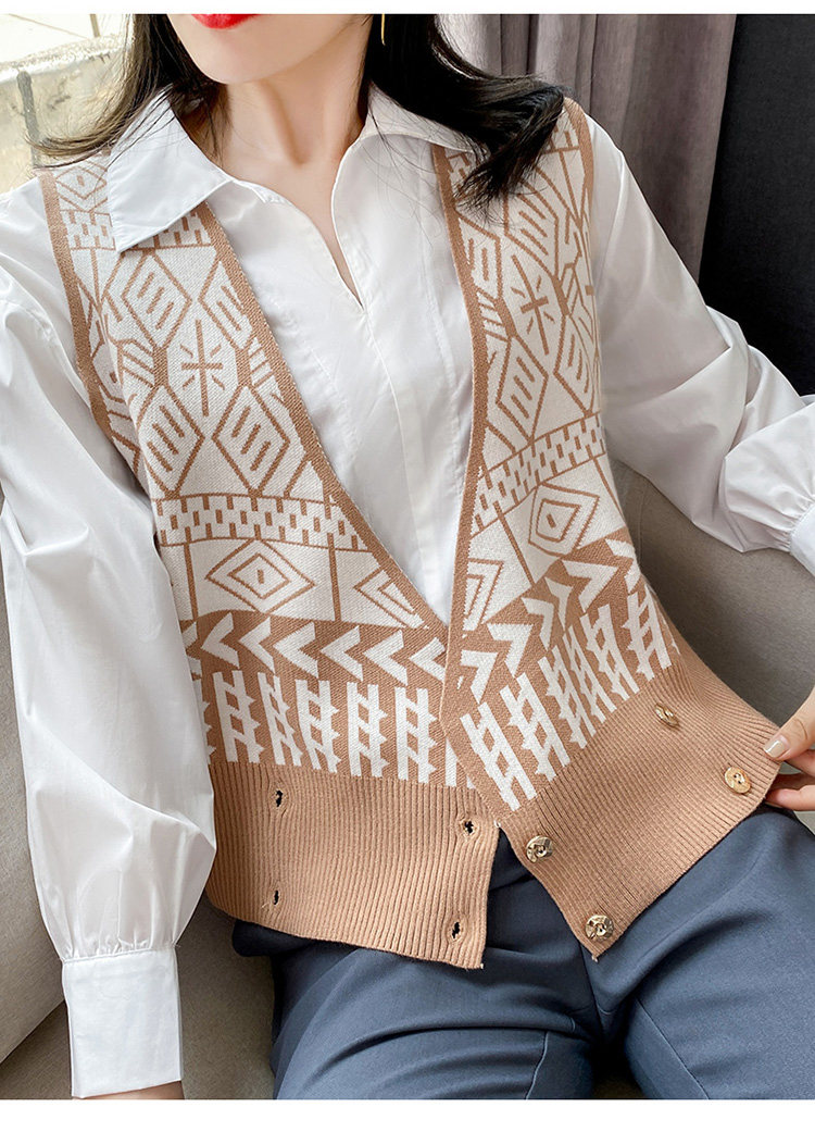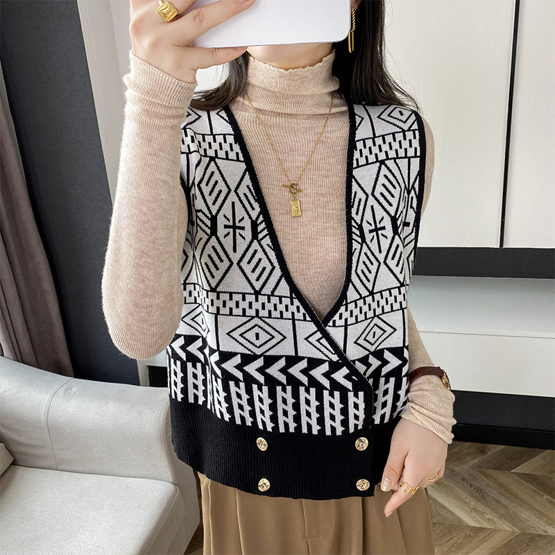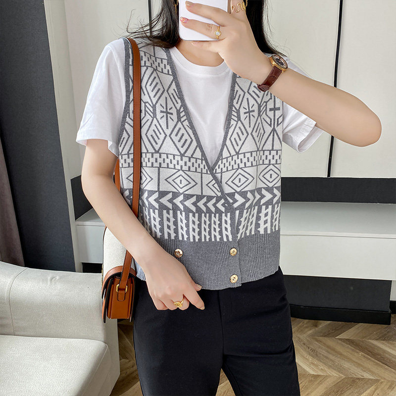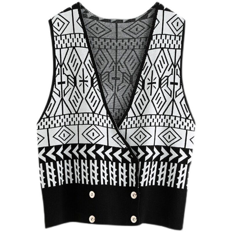 Осенний ретро жилет без рукавов, кардиган, трикотажная булавка, коллекция 2021, в корейском стиле, V-образный вырез