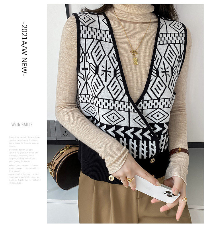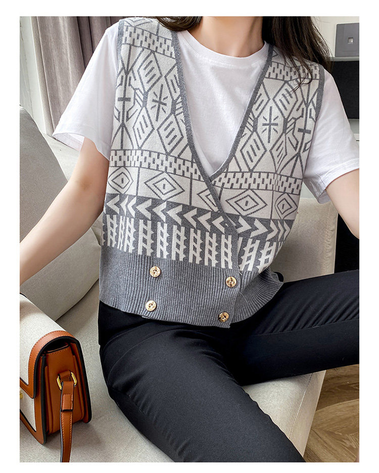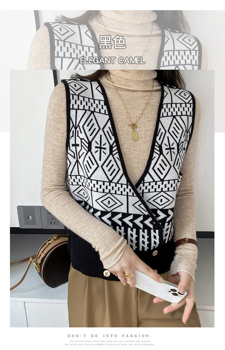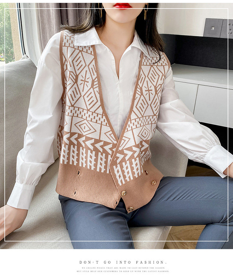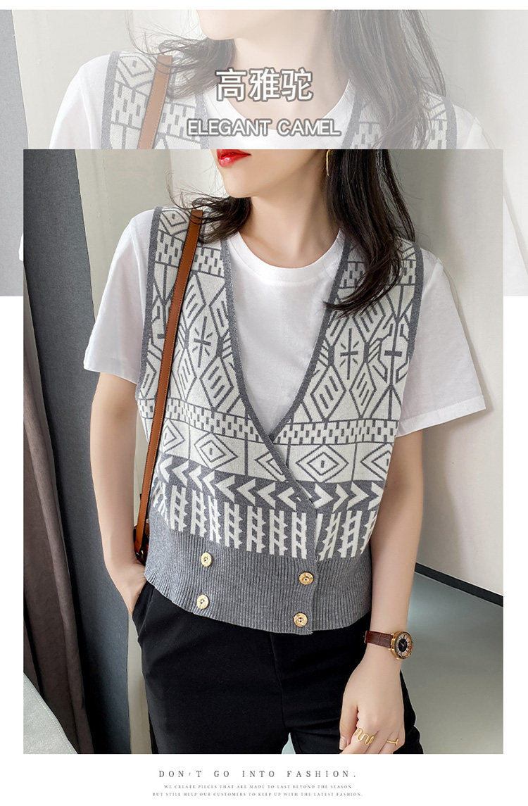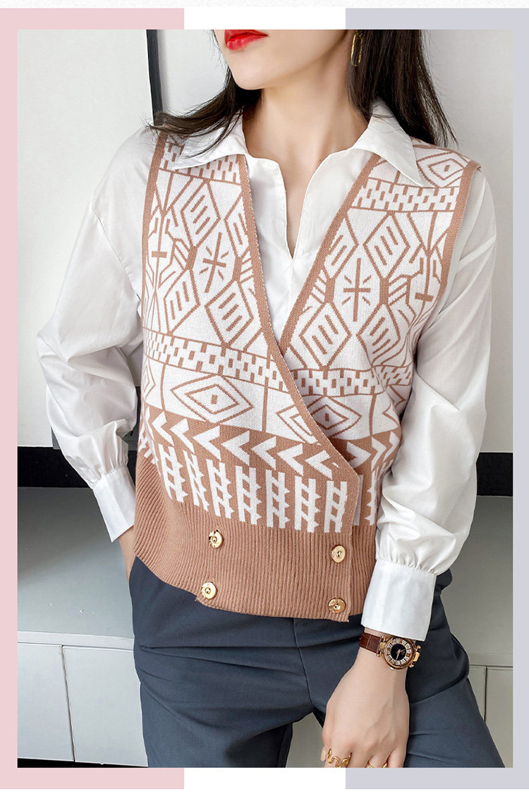Осенний ретро жилет без рукавов, кардиган, трикотажная булавка, коллекция 2021, в корейском стиле, V-образный вырез