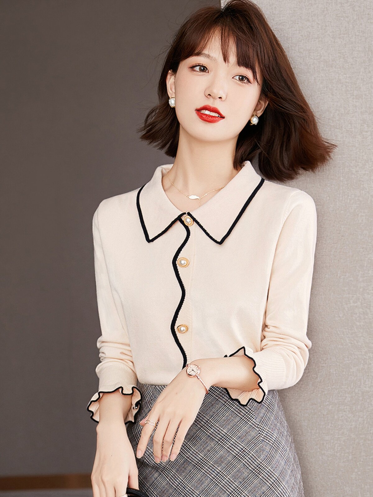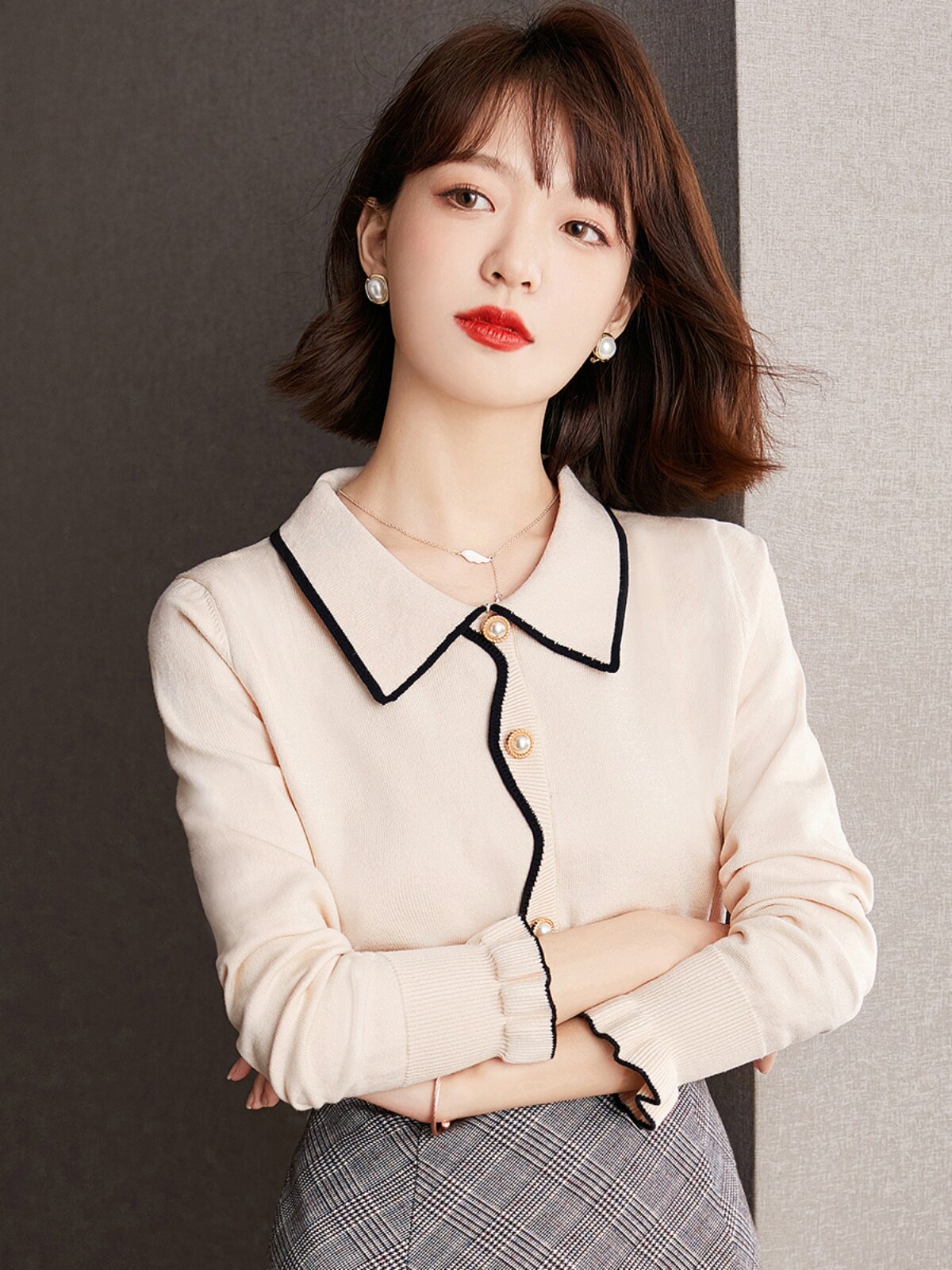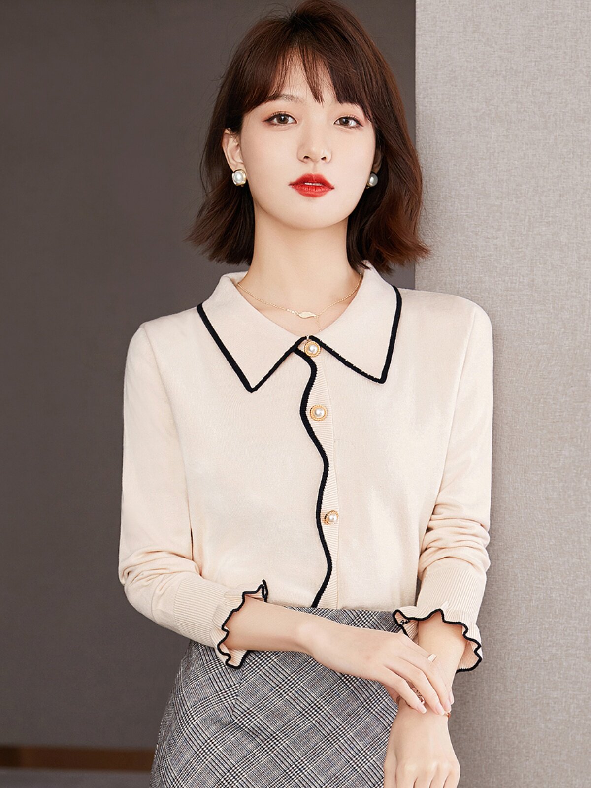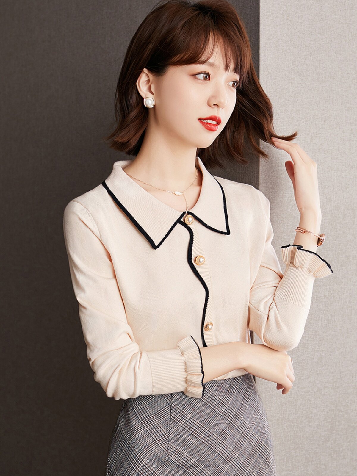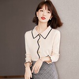 Осенний ретро трикотажный свитер, базовый приятный телу лонгслив, французский стиль, свободный крой, воротник поло