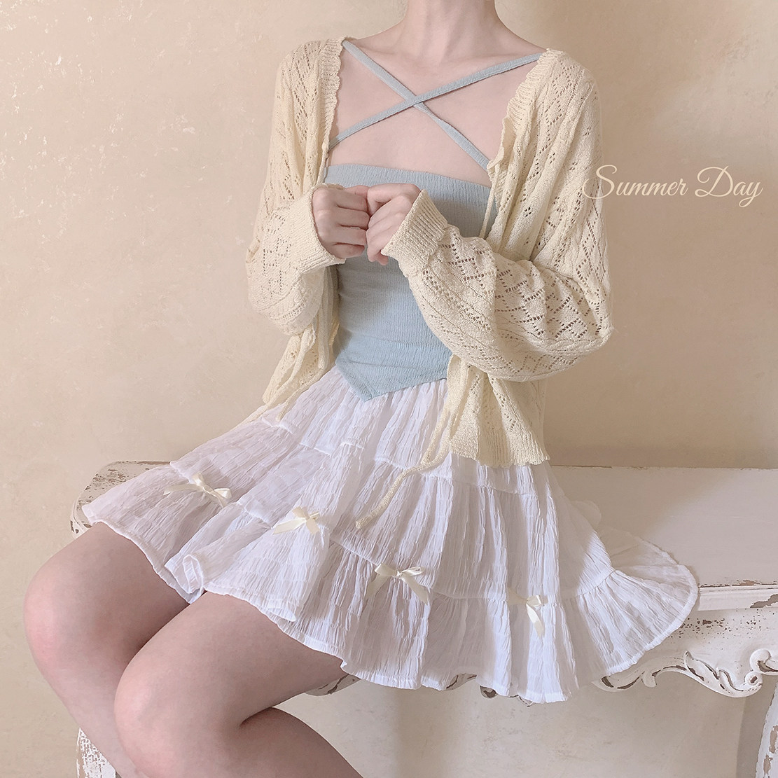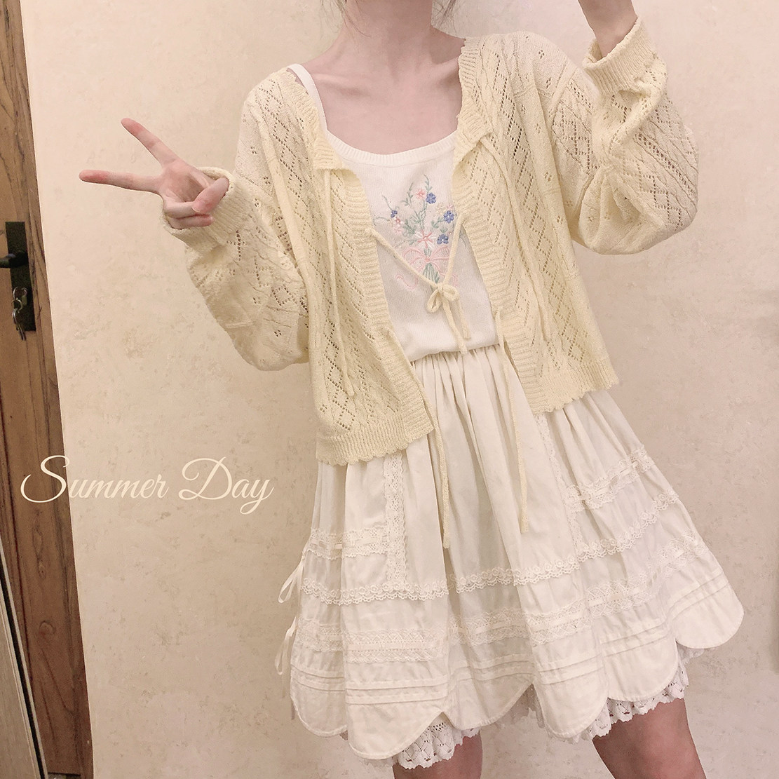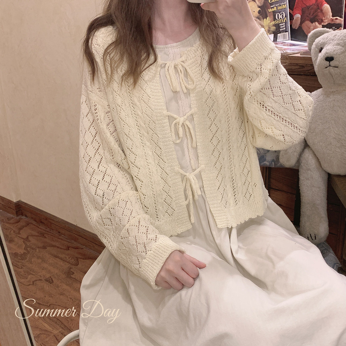 TT марля ретро -девчонка лесная система Половое молоко молоко желтое вязаное кардиган k