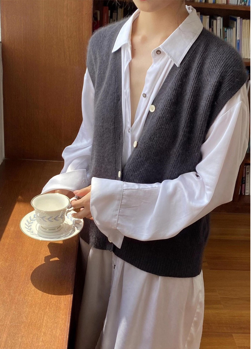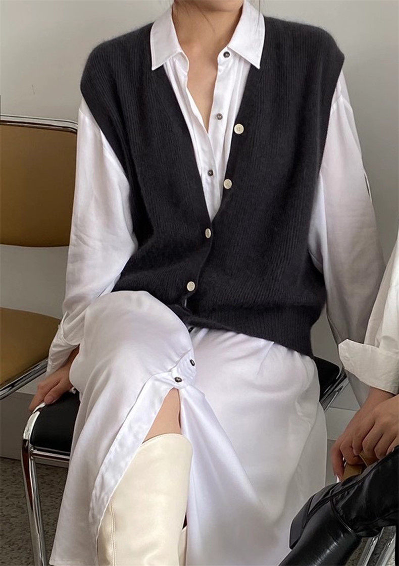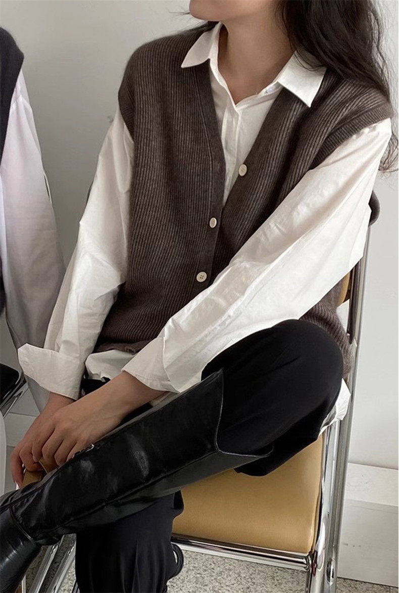 Кашемировый жилет, кардиган, рубашка, шерстяная трикотажная майка топ, в корейском стиле, V-образный вырез