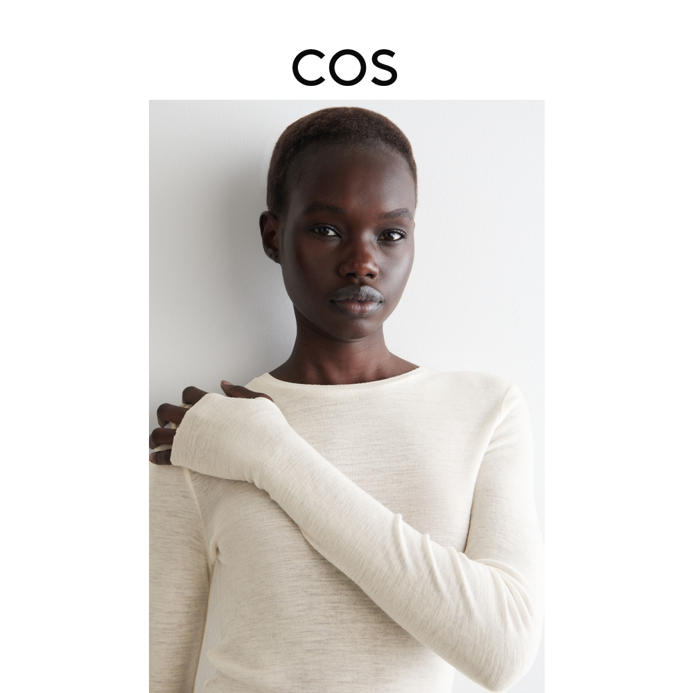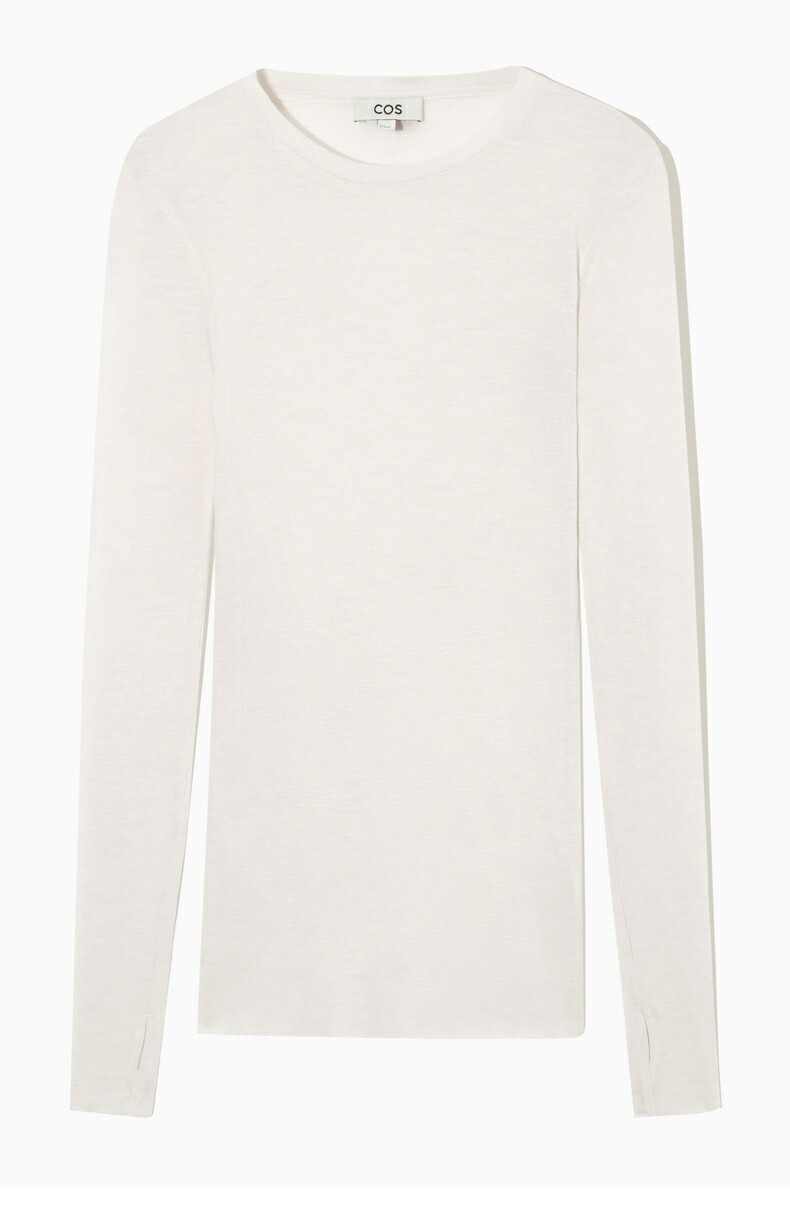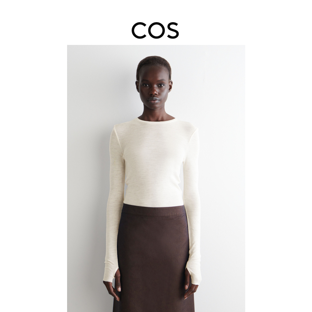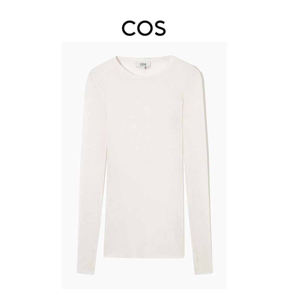COS Шерстяной приятный телу белый лонгслив, облегающий крой