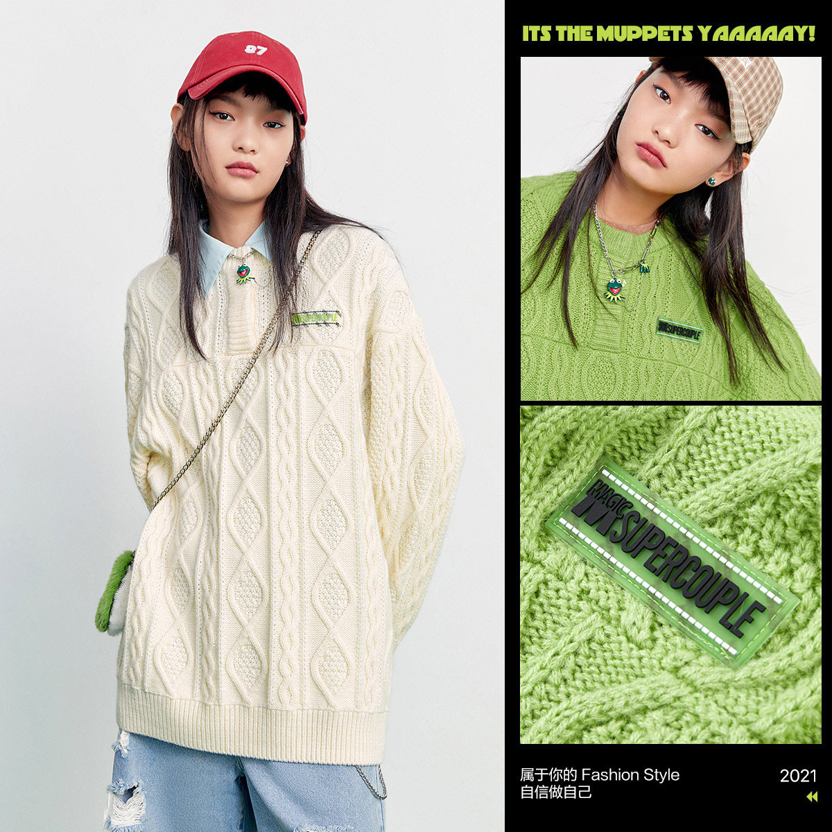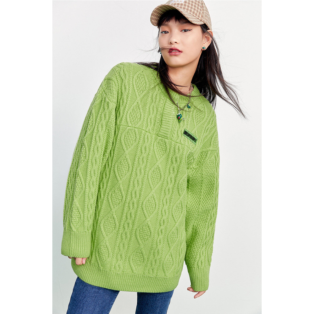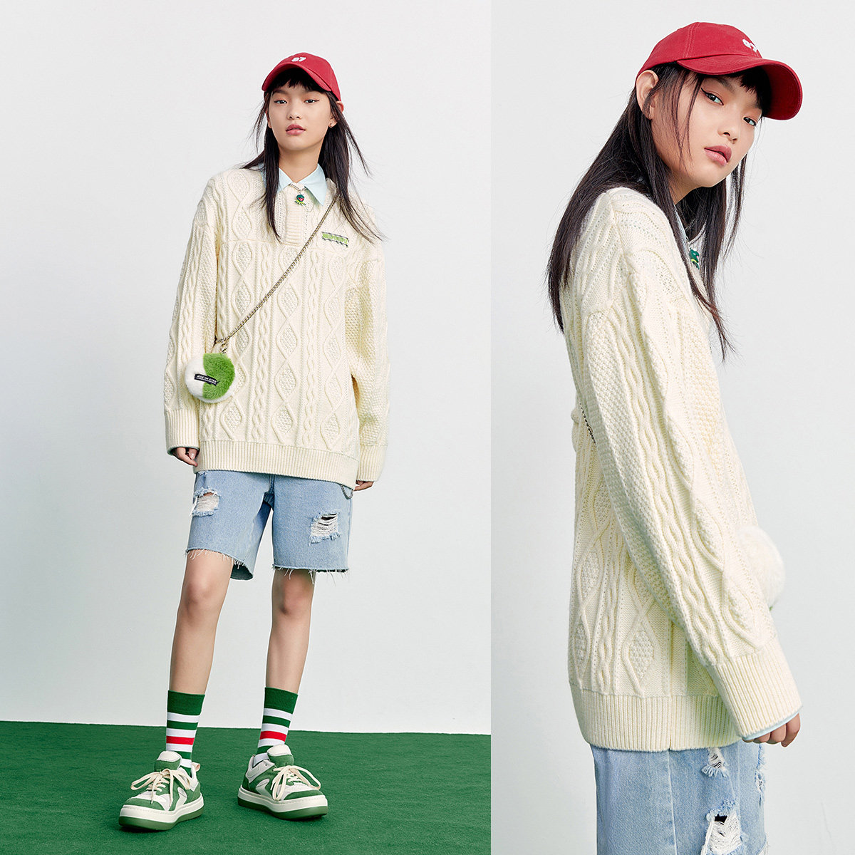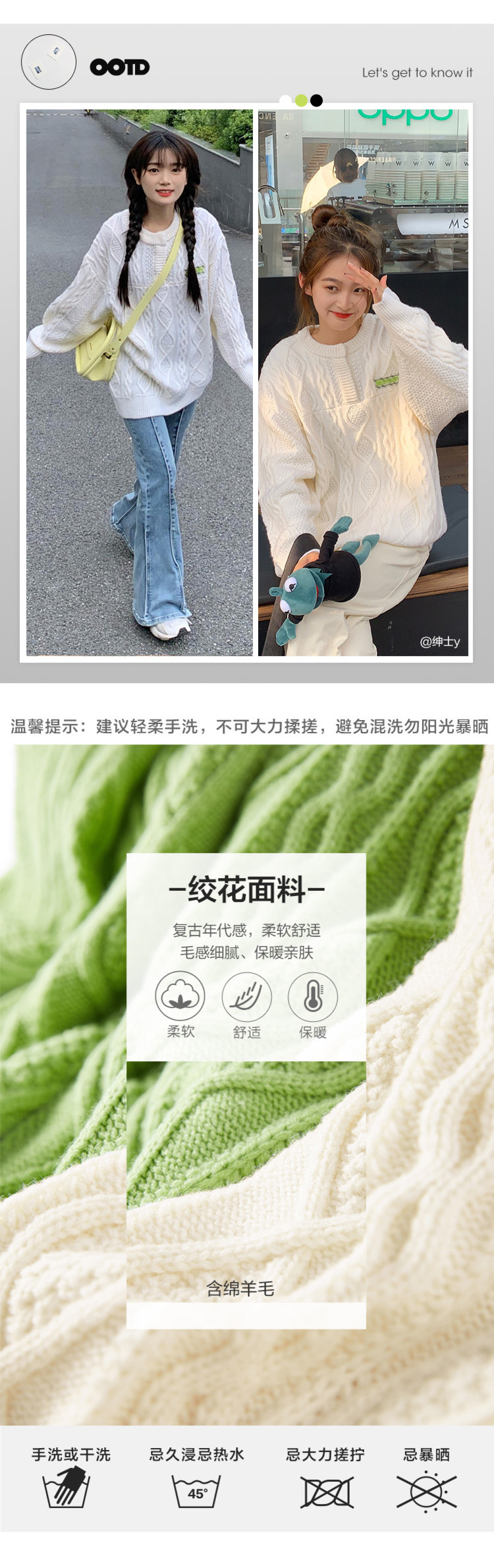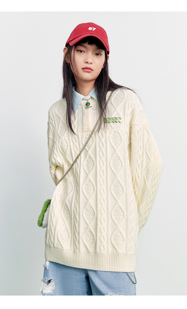 Белый весенний ретро трикотажный свитер, коллекция 2022, оверсайз