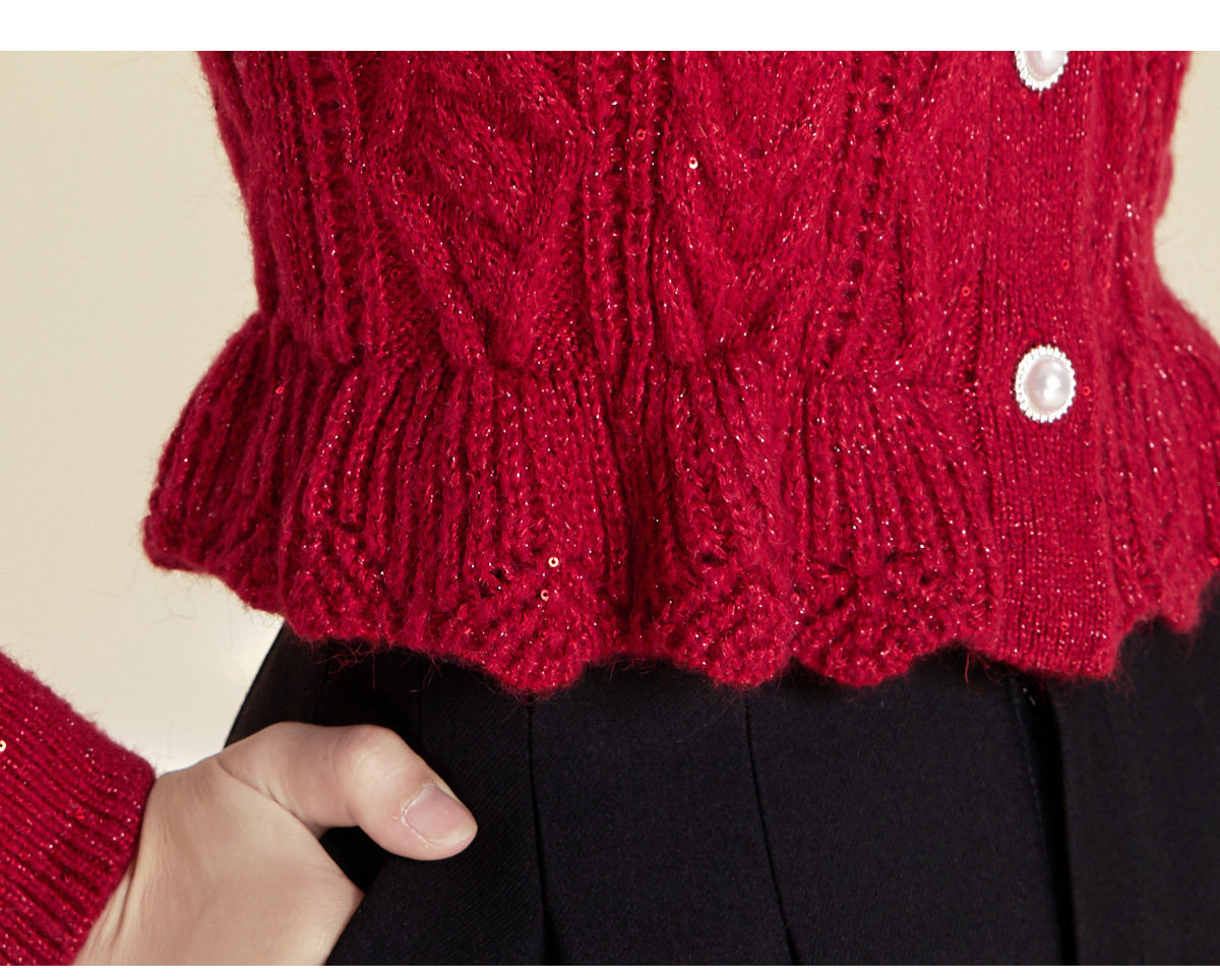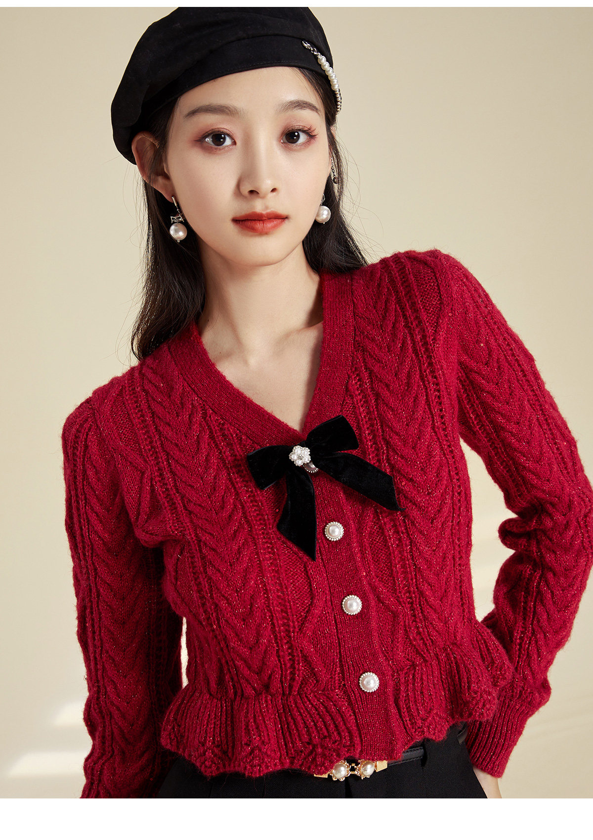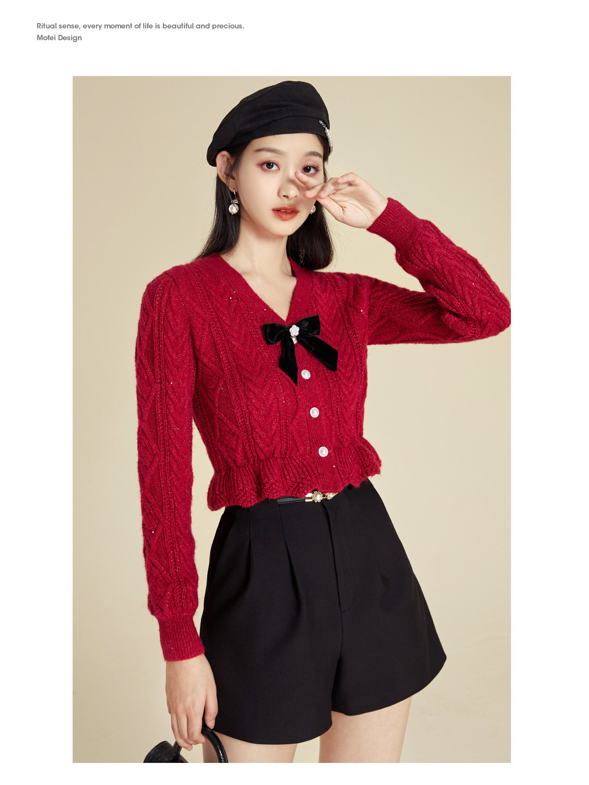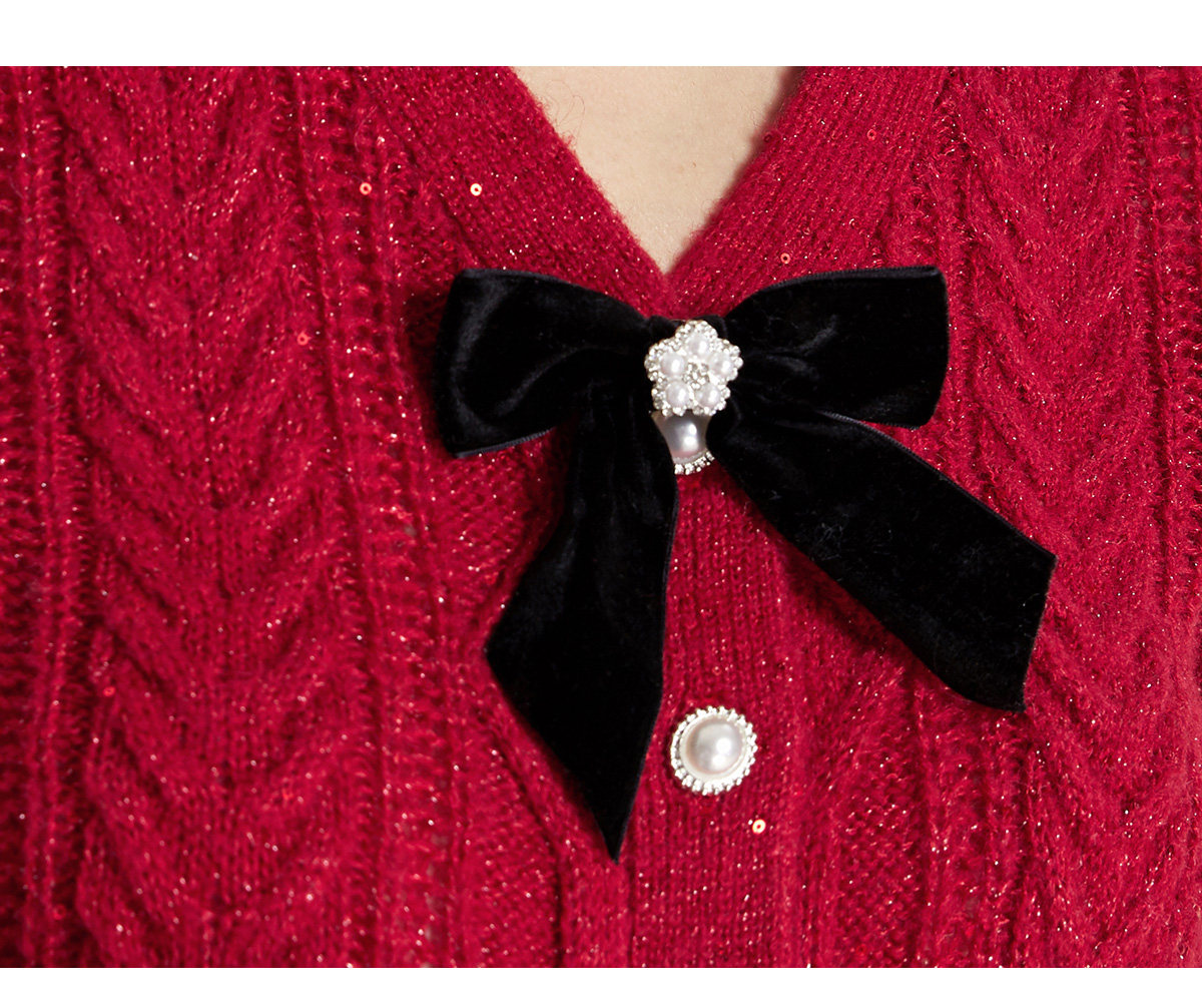 Марлевый демисезонный короткий кардиган с бантиком, красный свитер, V-образный вырез, облегающий крой