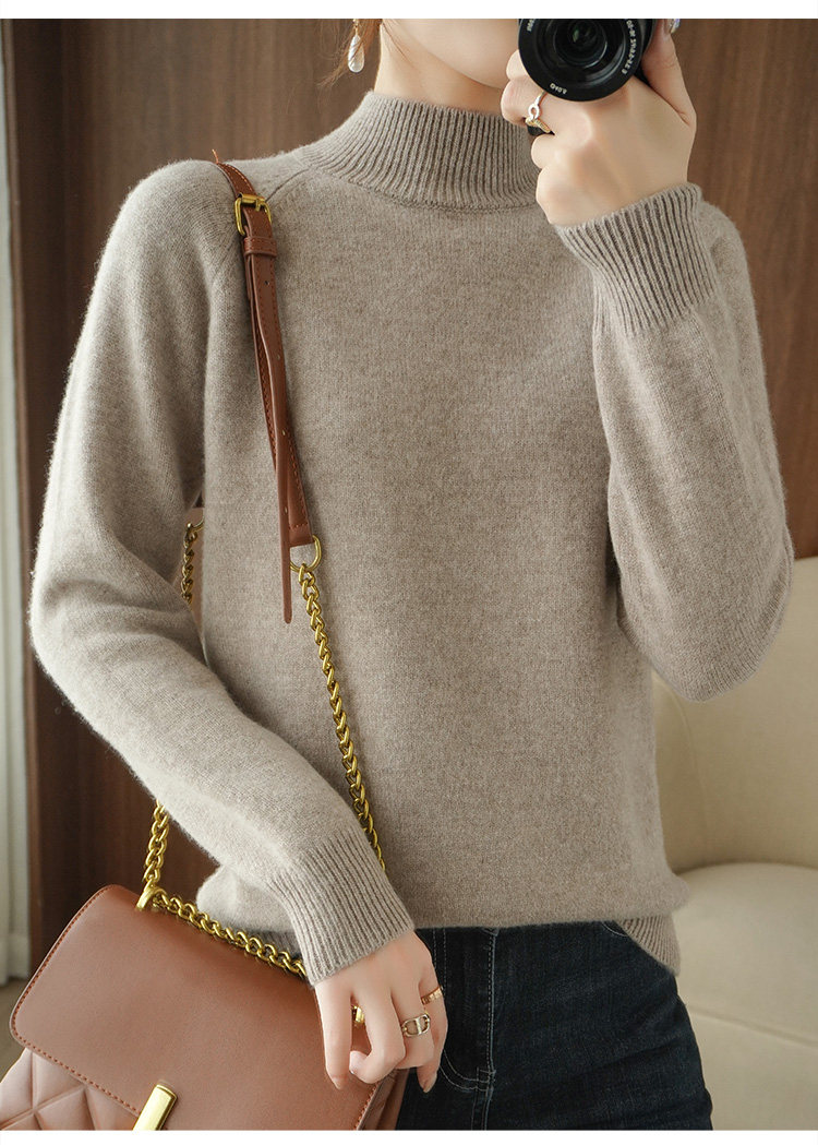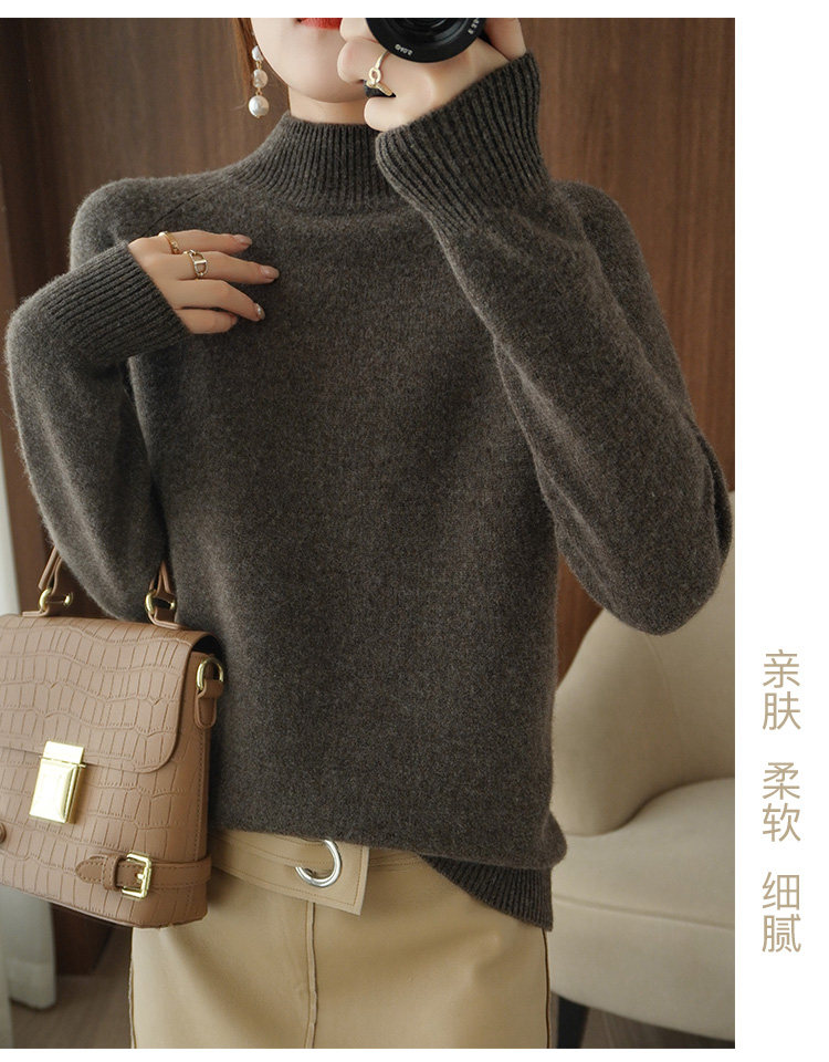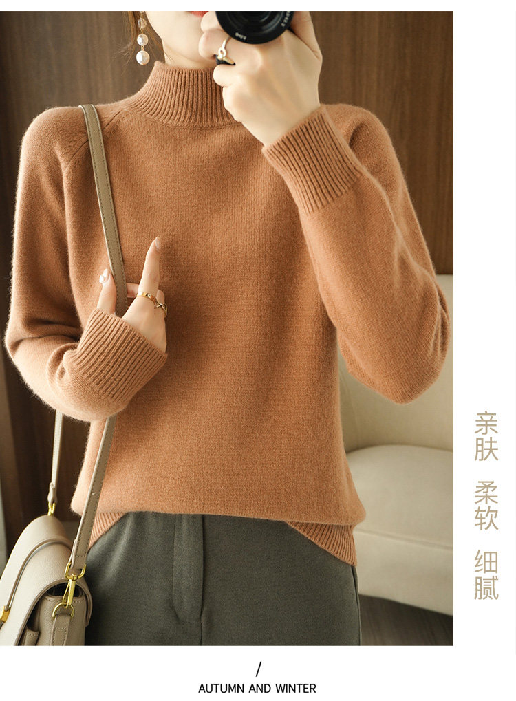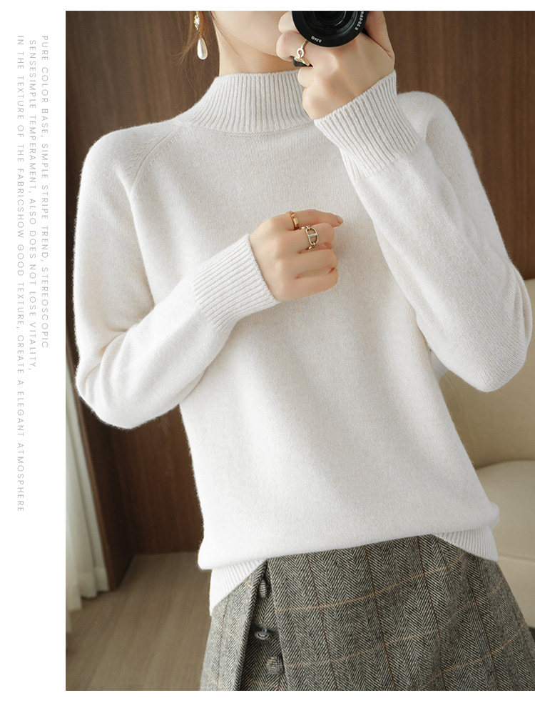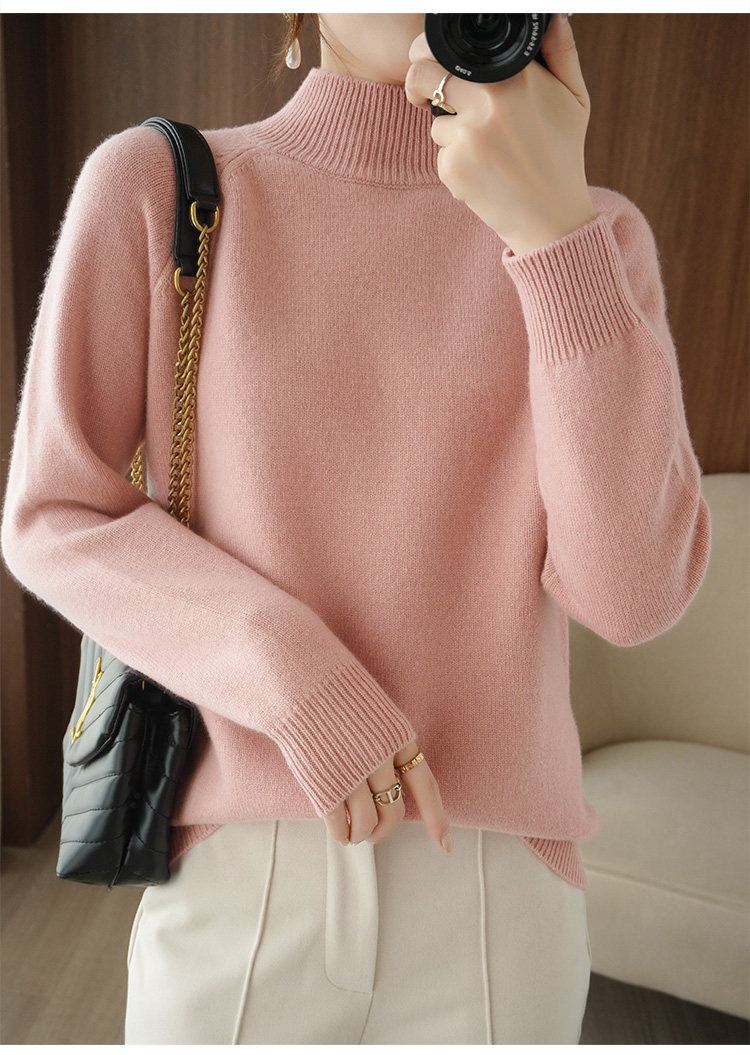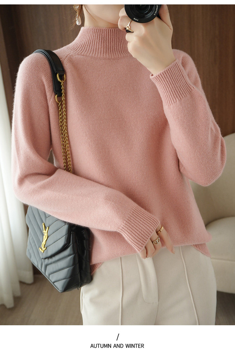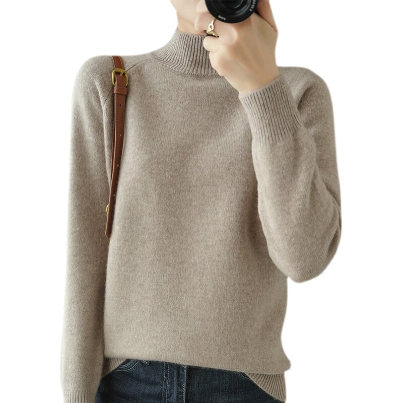 Шерстяной демисезонный модный трикотажный кашемировый свитер, высокий воротник, в корейском стиле, облегающий крой