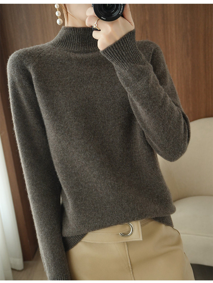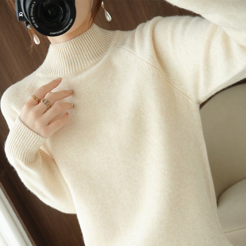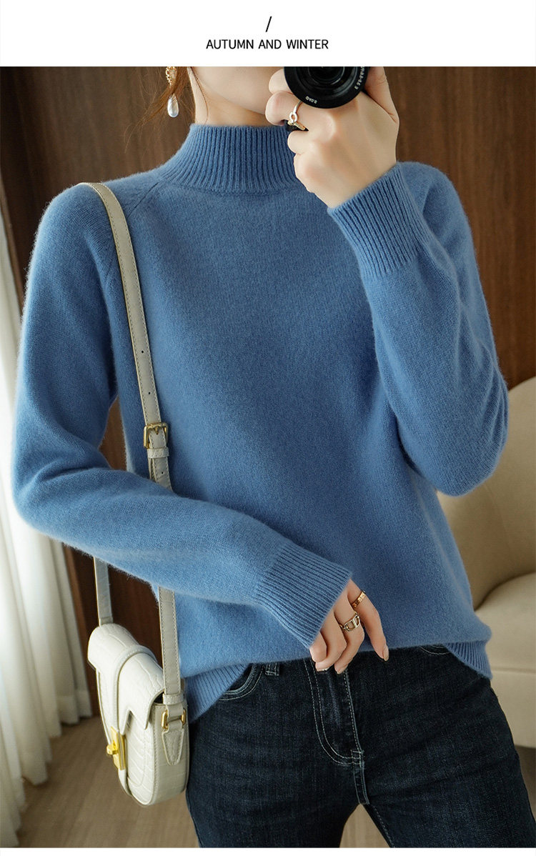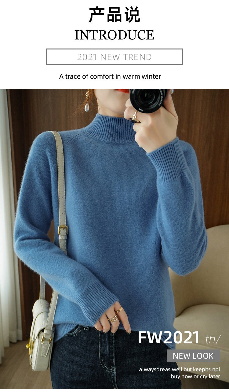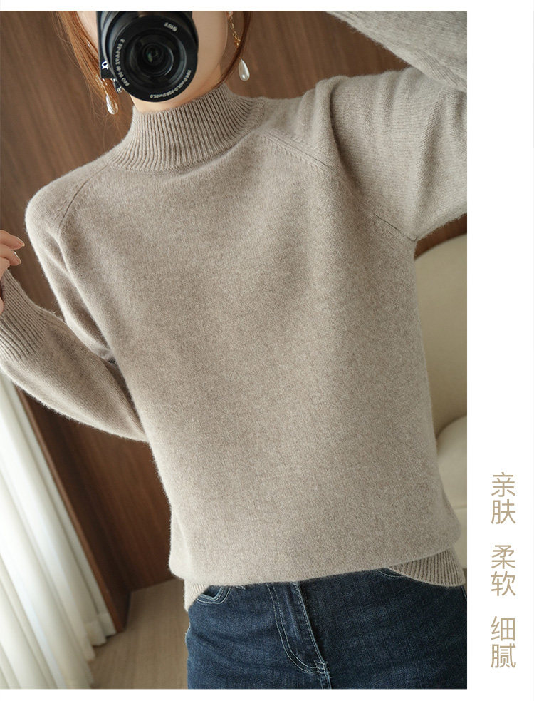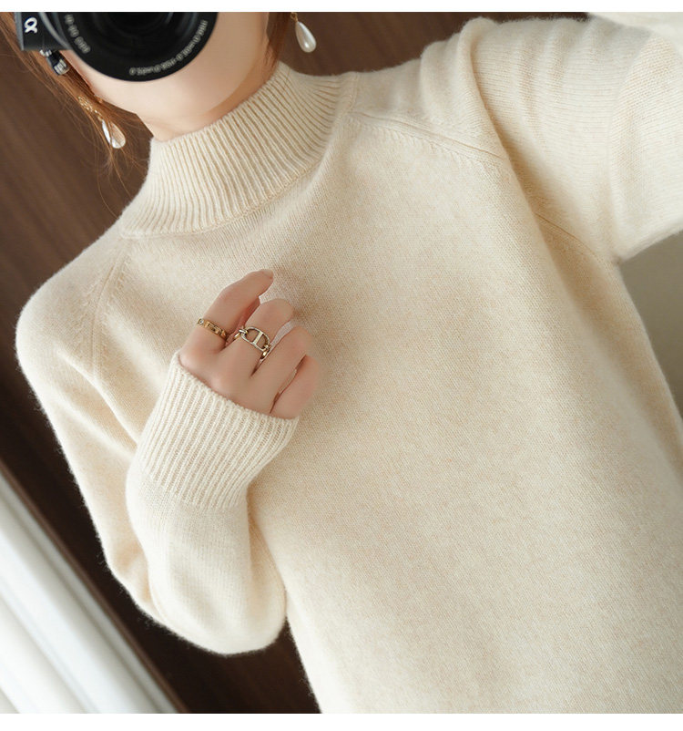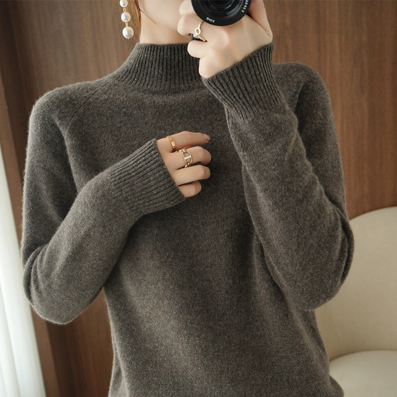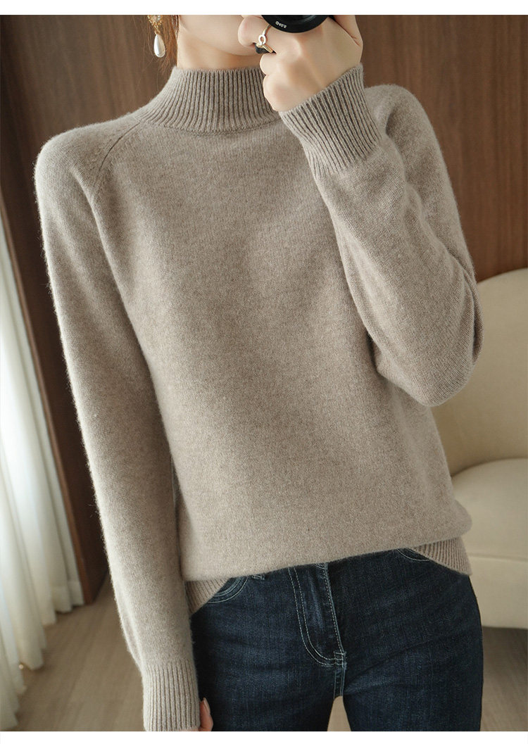Шерстяной демисезонный модный трикотажный кашемировый свитер, высокий воротник, в корейском стиле, облегающий крой
