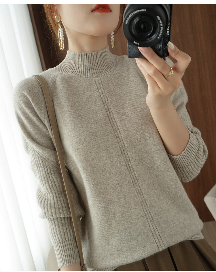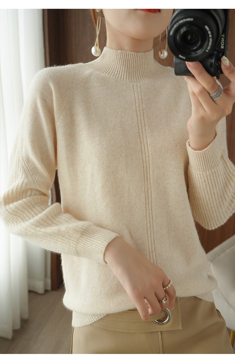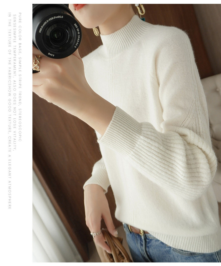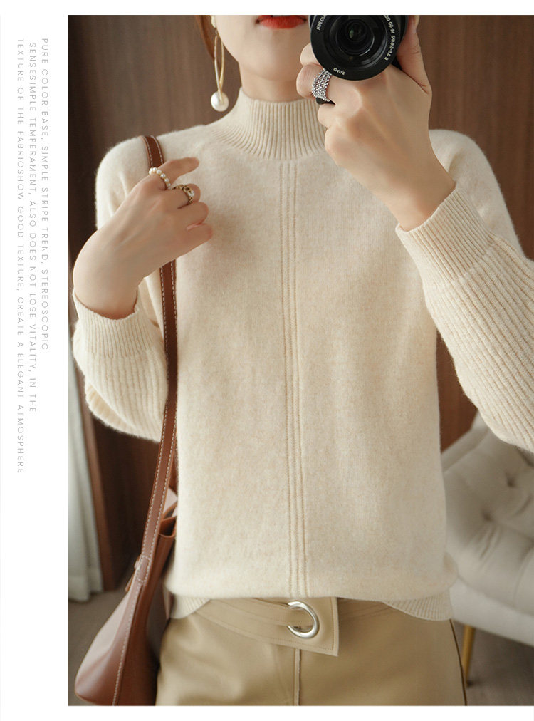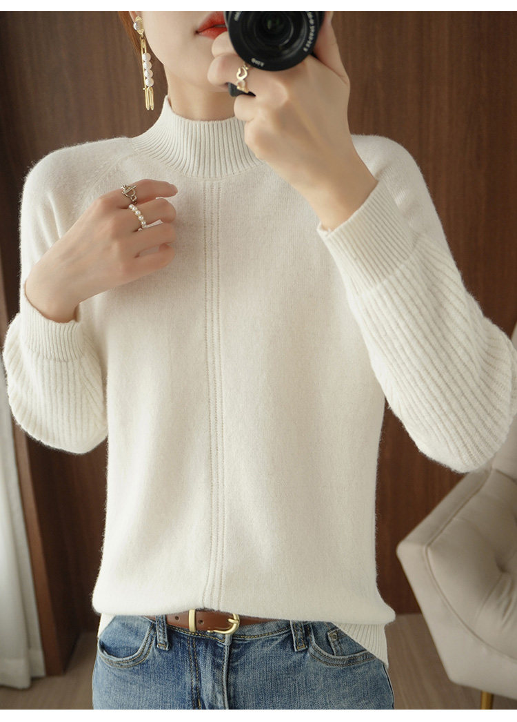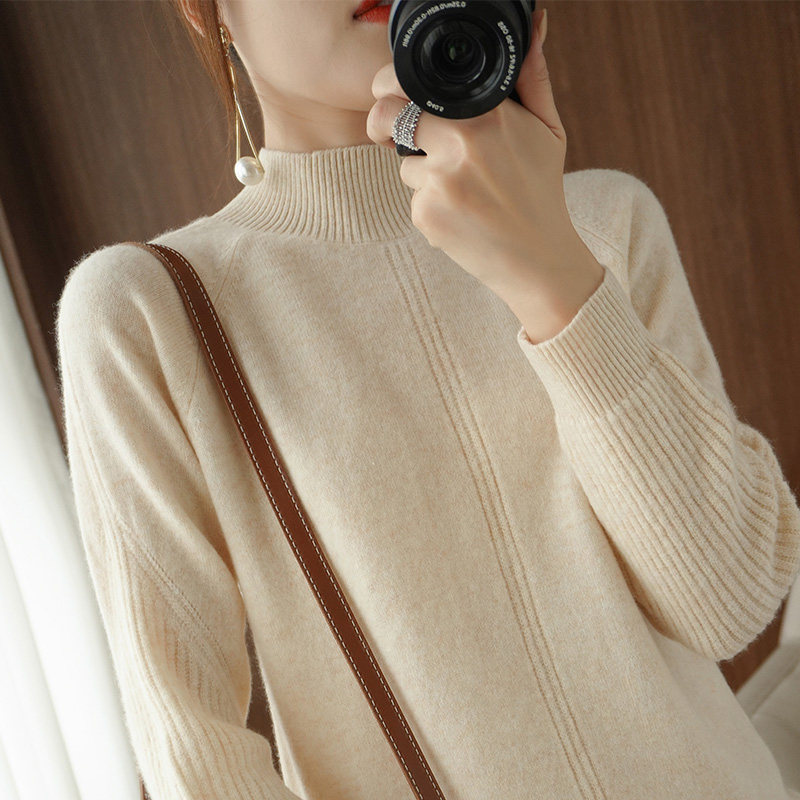 Демисезонный шерстяной свитер, лонгслив, базовые цветные трикотажные нарукавники, увеличенная толщина, высокий воротник, облегающий крой