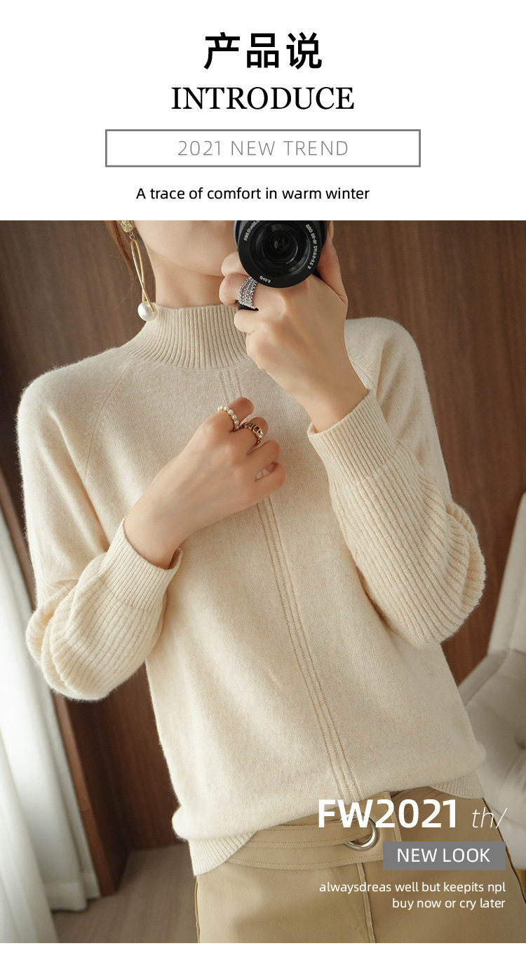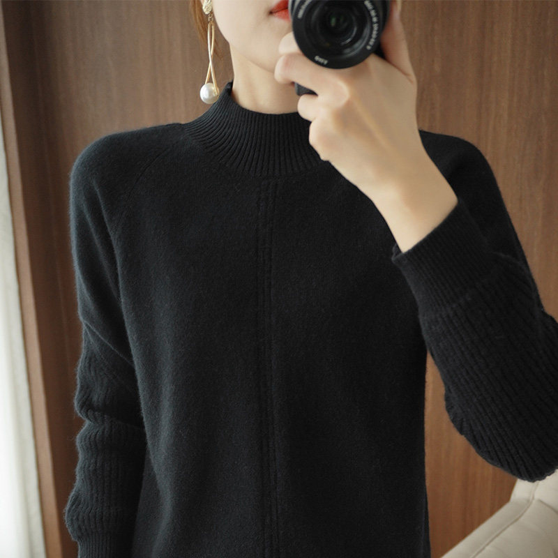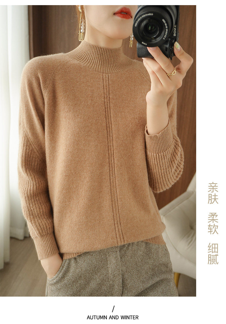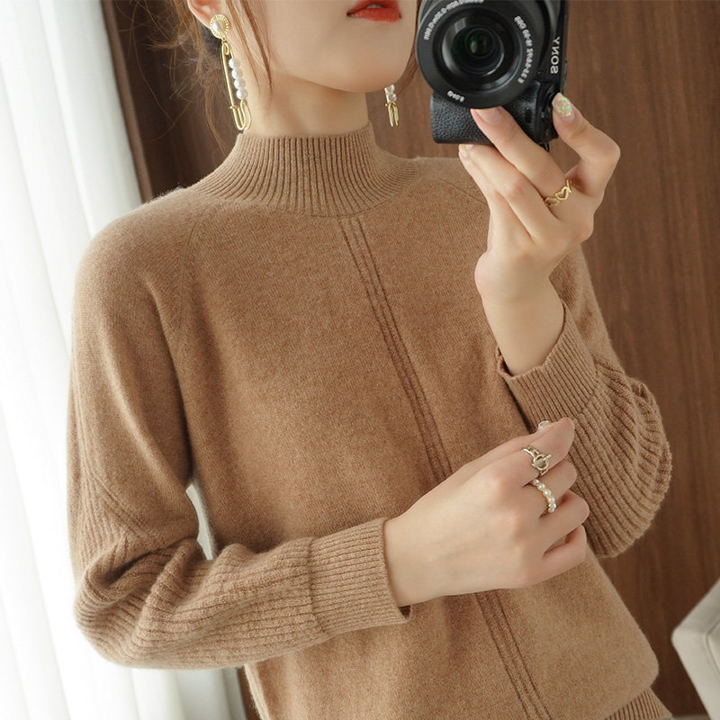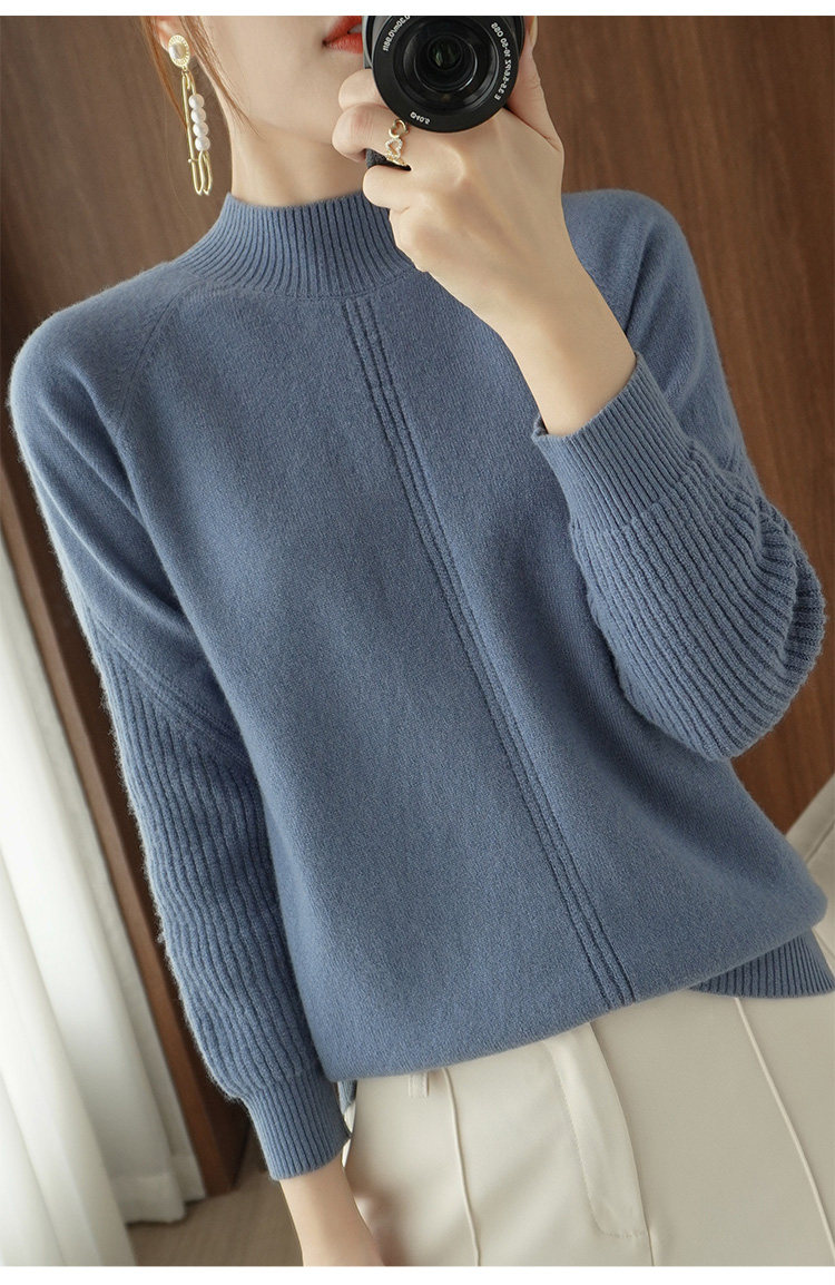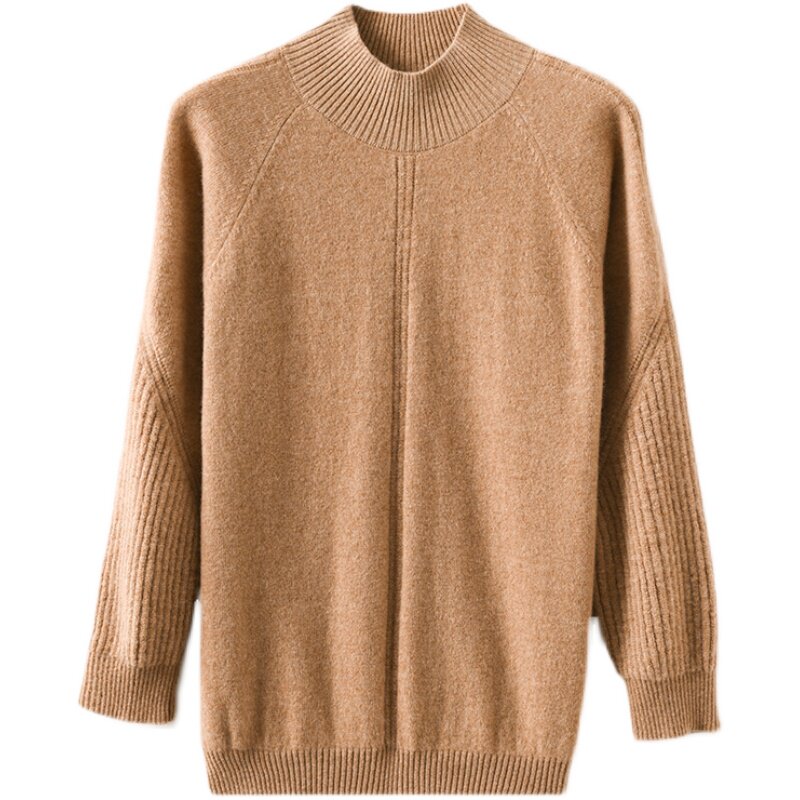 Демисезонный шерстяной свитер, лонгслив, базовые цветные трикотажные нарукавники, увеличенная толщина, высокий воротник, облегающий крой