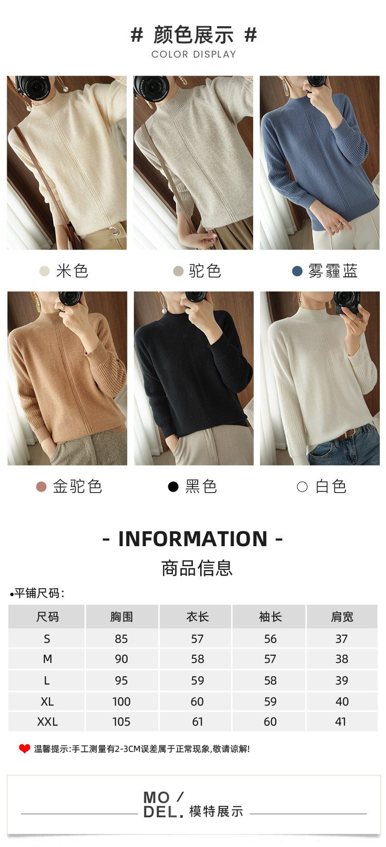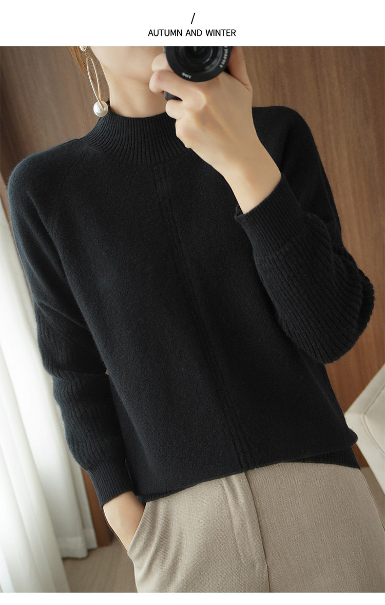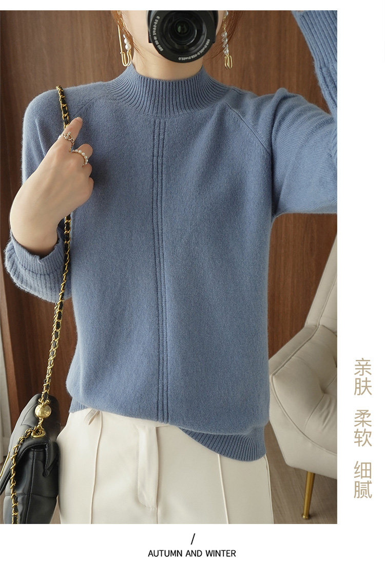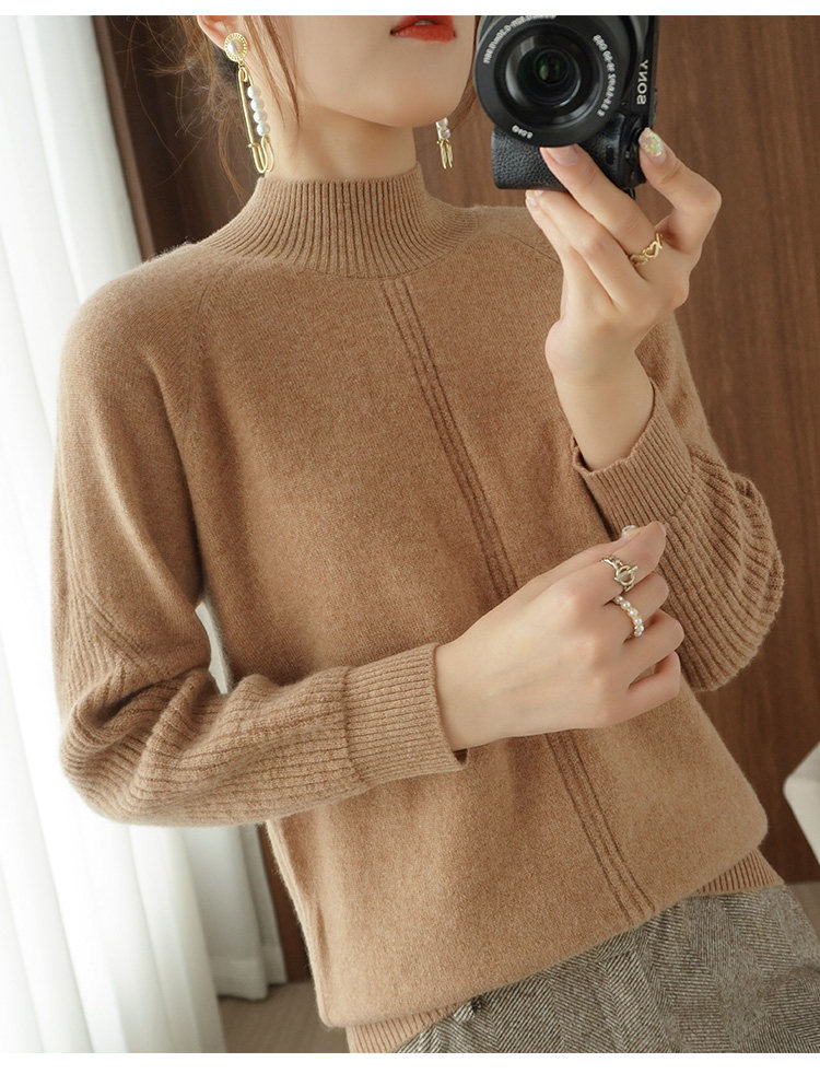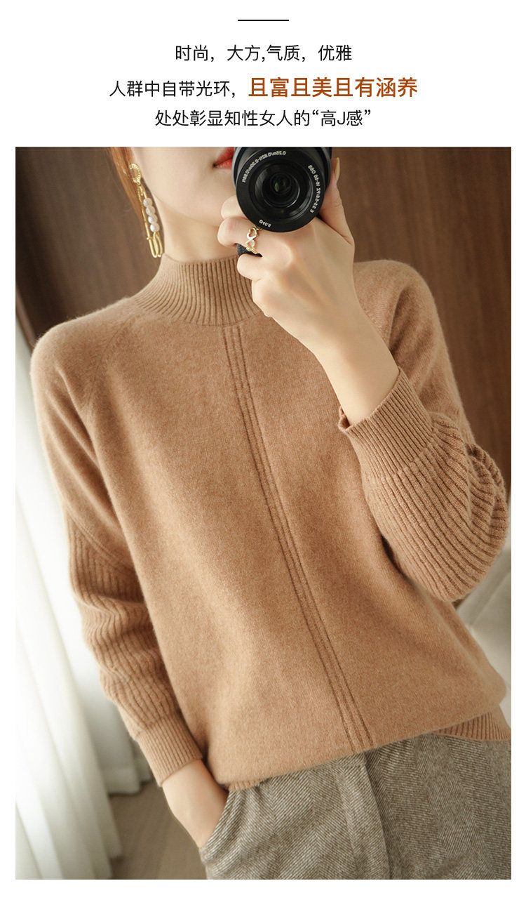Демисезонный шерстяной свитер, лонгслив, базовые цветные трикотажные нарукавники, увеличенная толщина, высокий воротник, облегающий крой