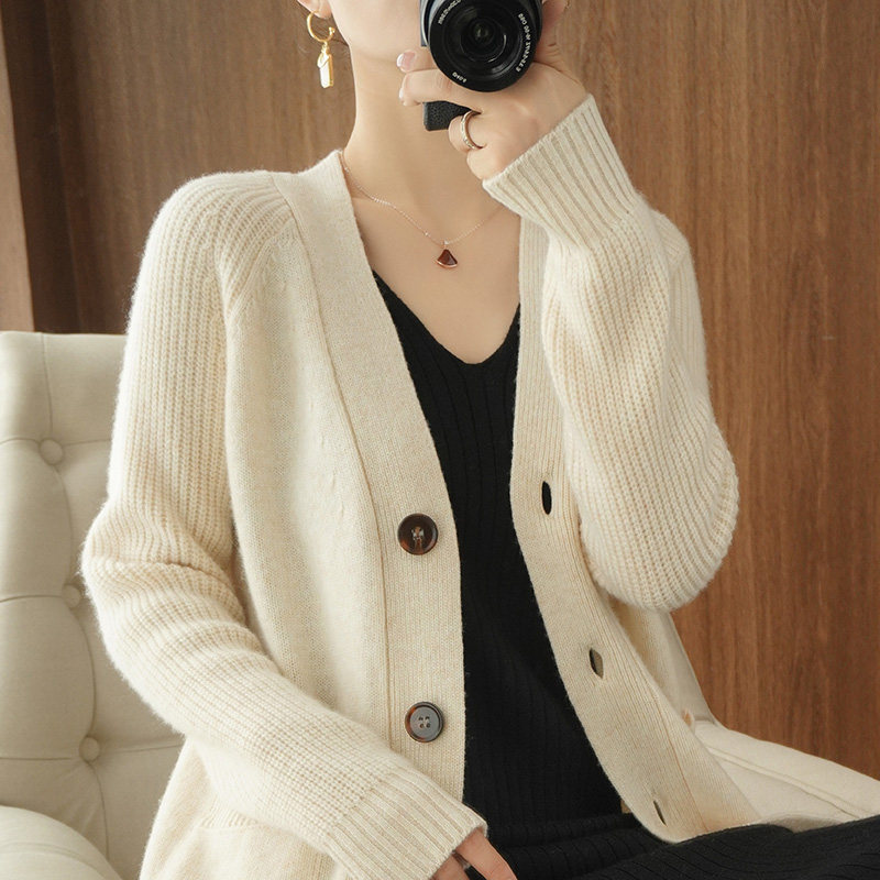 Кардиган, шерстяной демисезонный кашемировый однотонный трикотажный свитер, V-образный вырез