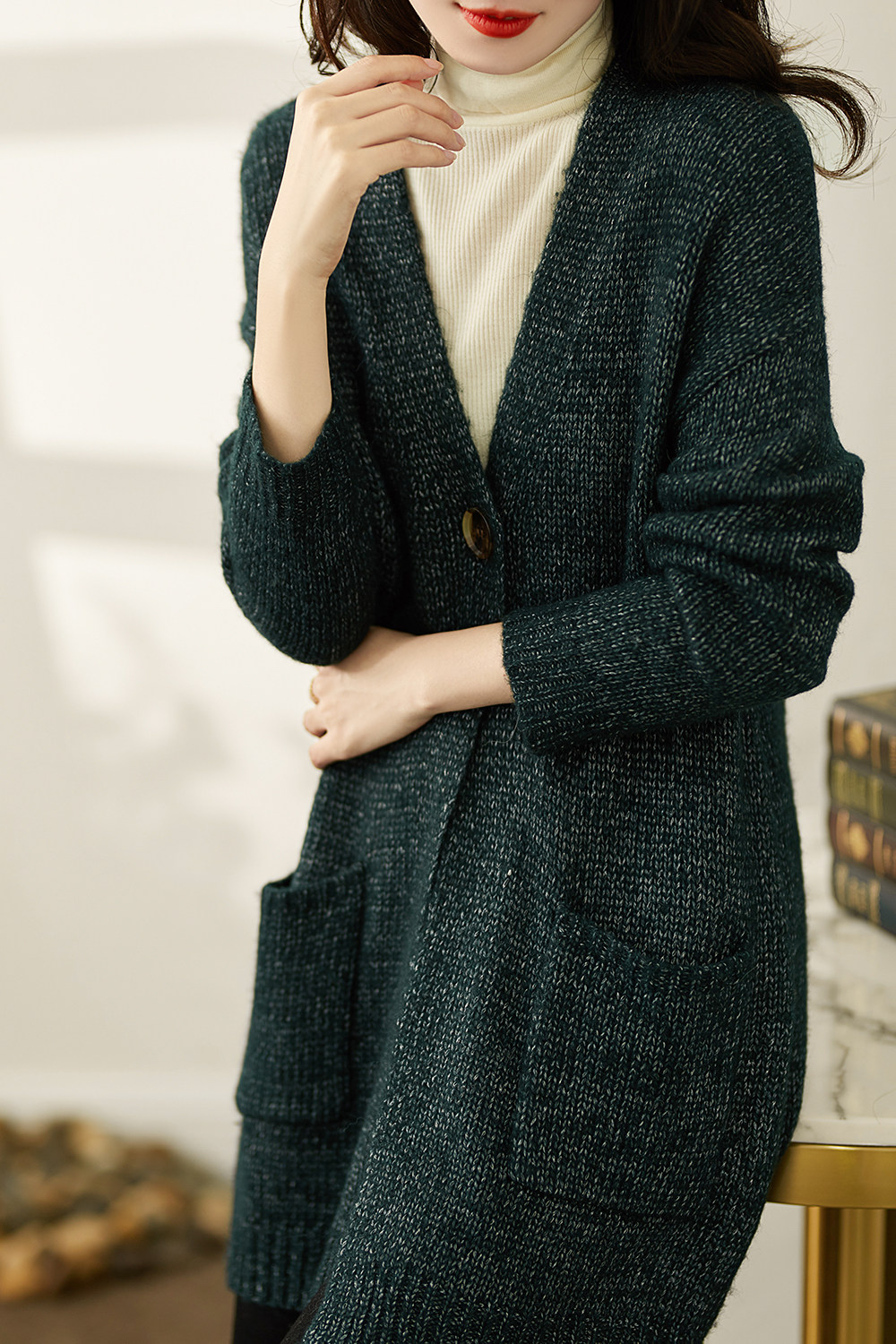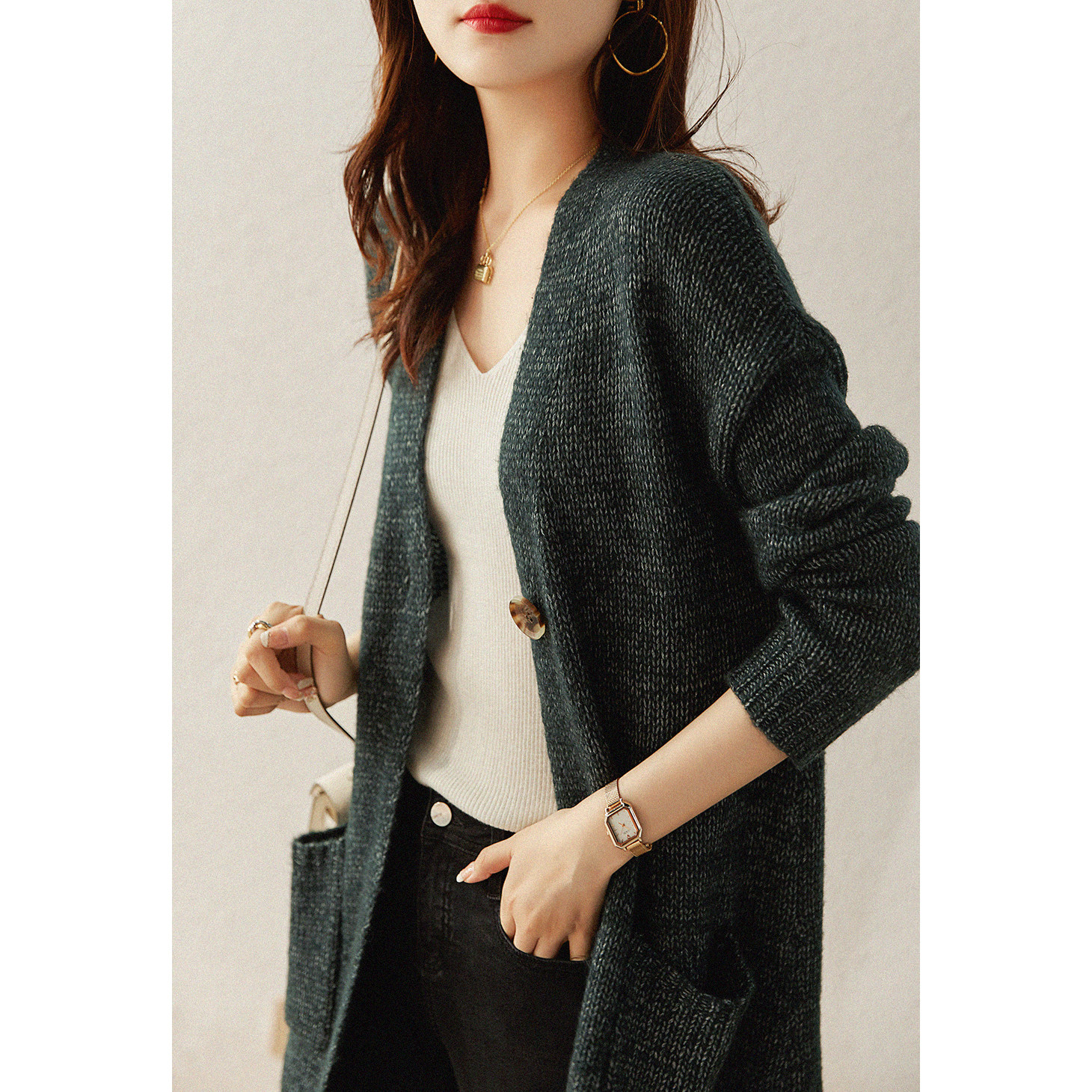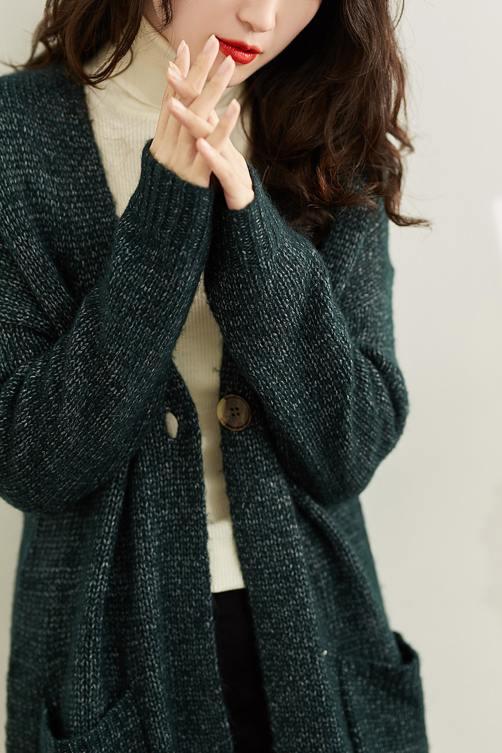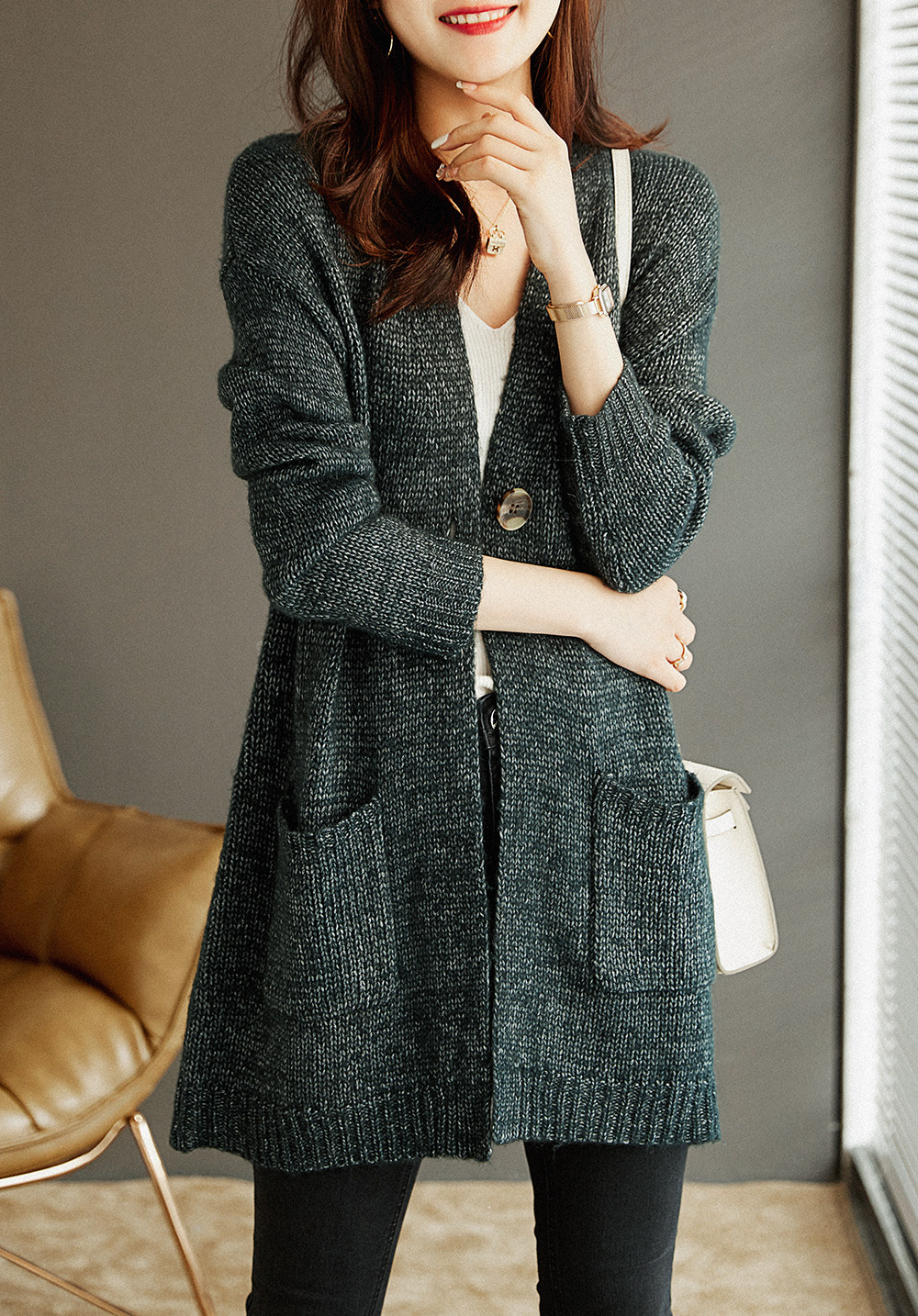 い Сплошная иглы теплый белый характер v -neck плащ вязаная кардиганская куртка mlzy26472