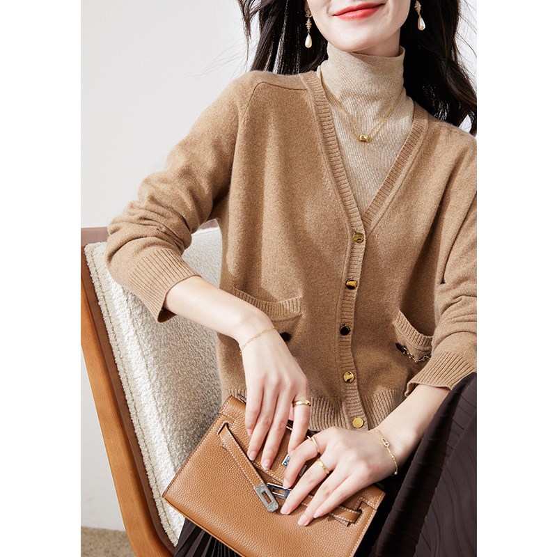 Качественный, мягкий и непринужденный кашемировый, ленивый, интеллектуальный и модный вязаный кардиган от Mijia с украшением в виде цепочки.