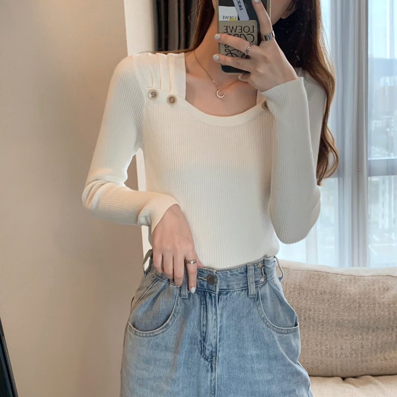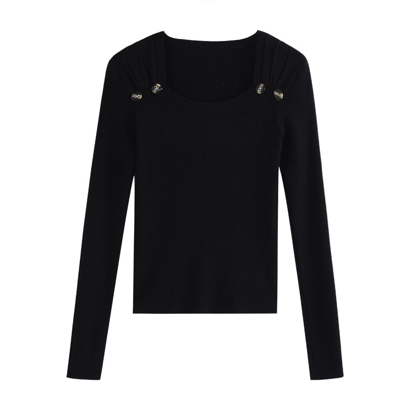 Трикотажный демисезонный приталенный тонкий лонгслив, свитер, квадратный вырез