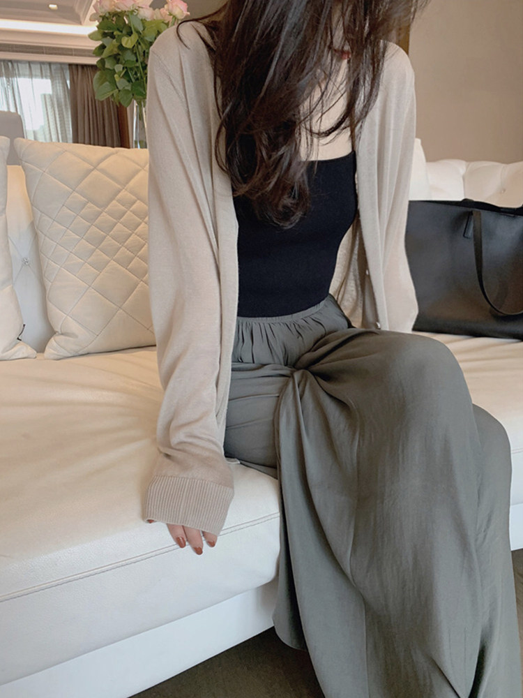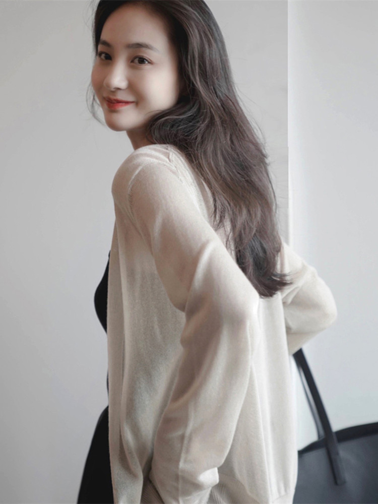 Накидка, летний тонкий трикотажный лонгслив, свитер, французский стиль, защита от солнца, свободный крой