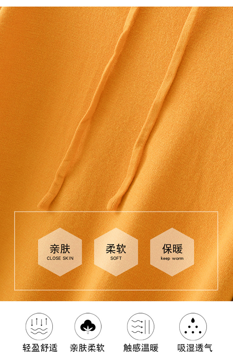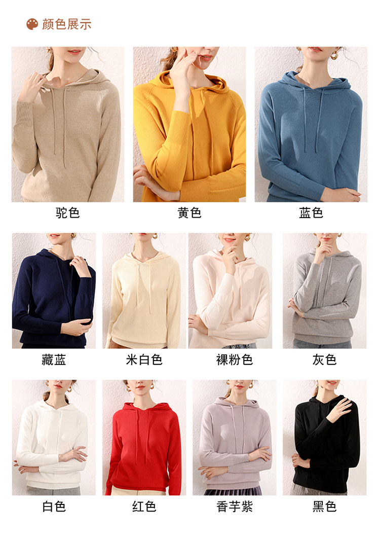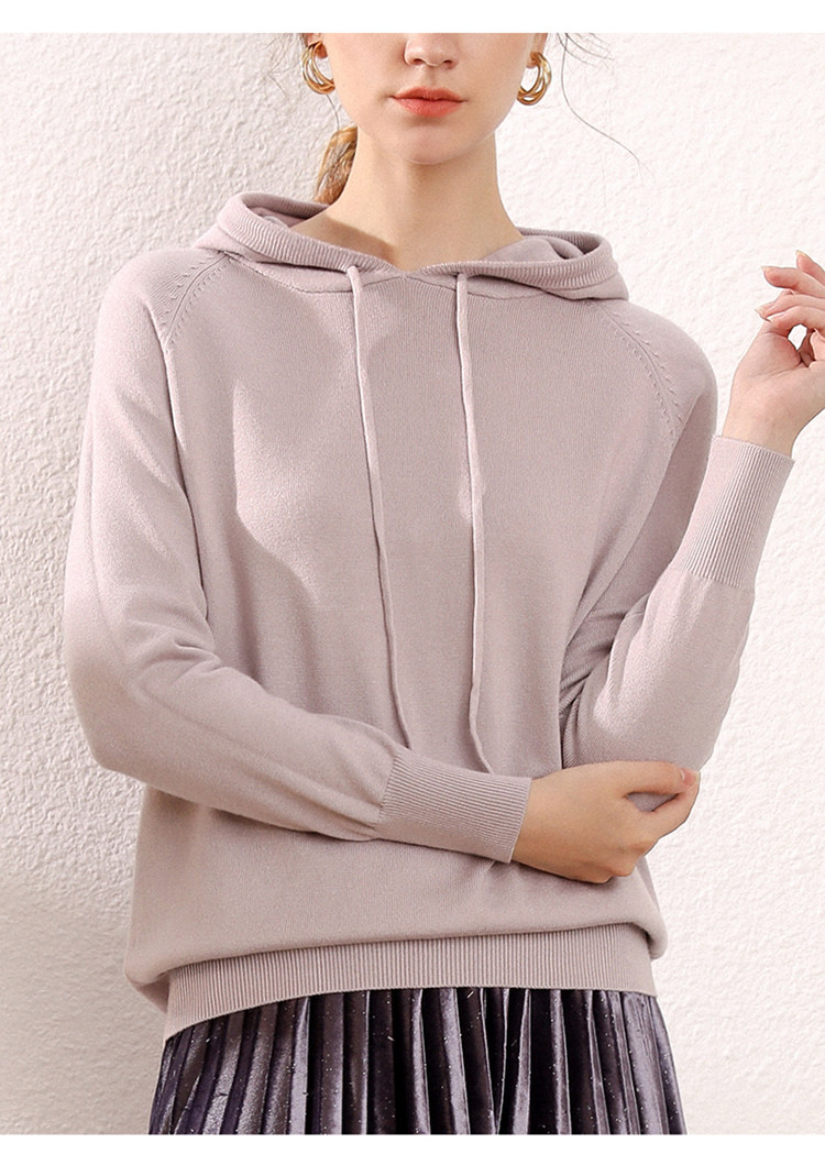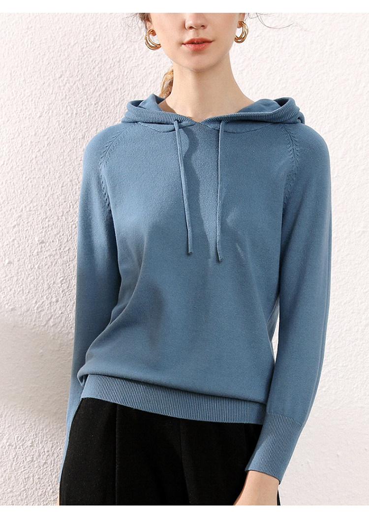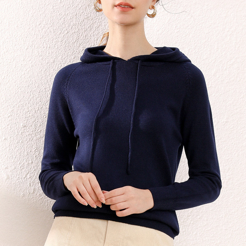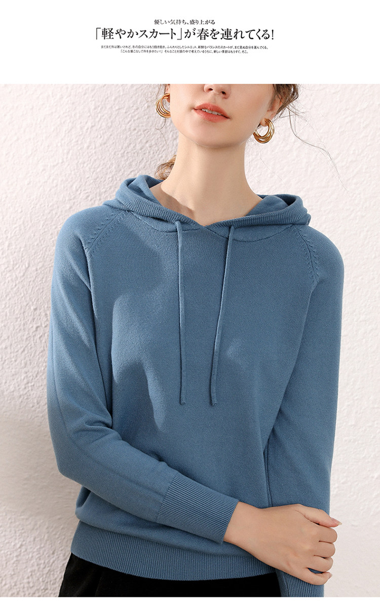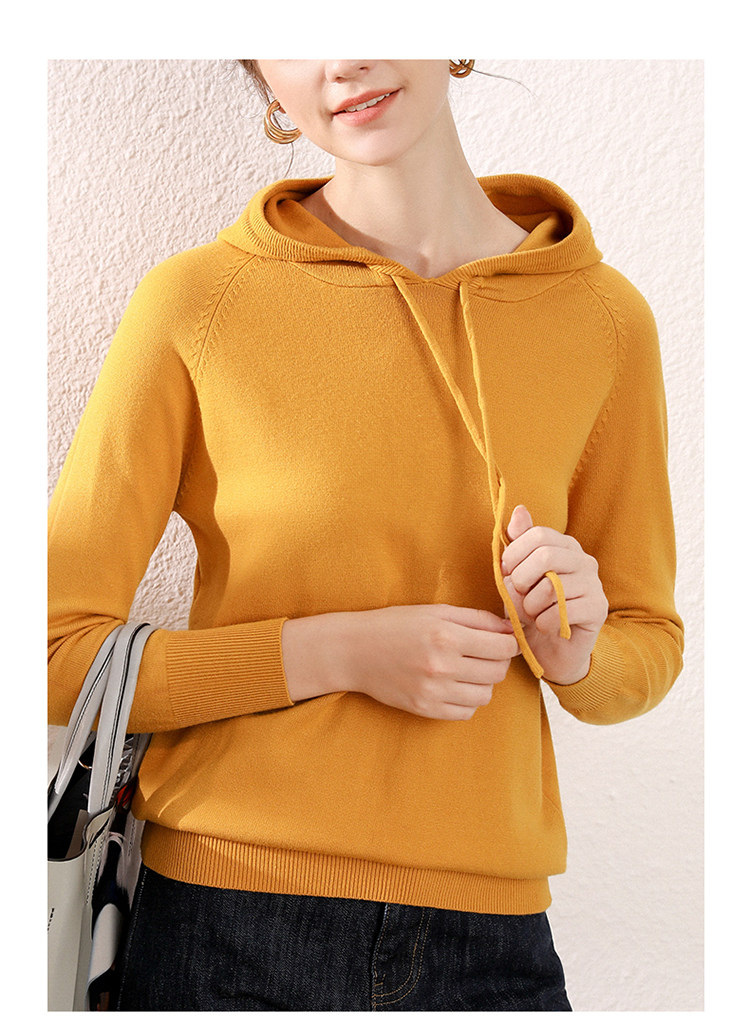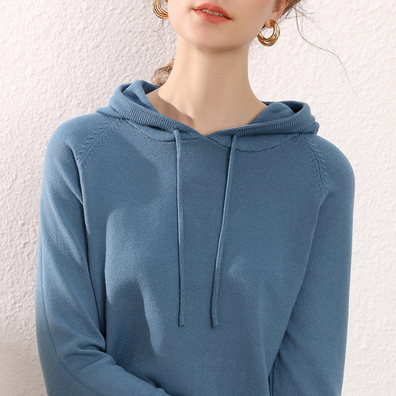 Кашемировая толстовка с капюшоном, трикотажный шерстяной базовый приятный телу свитер, свободный крой