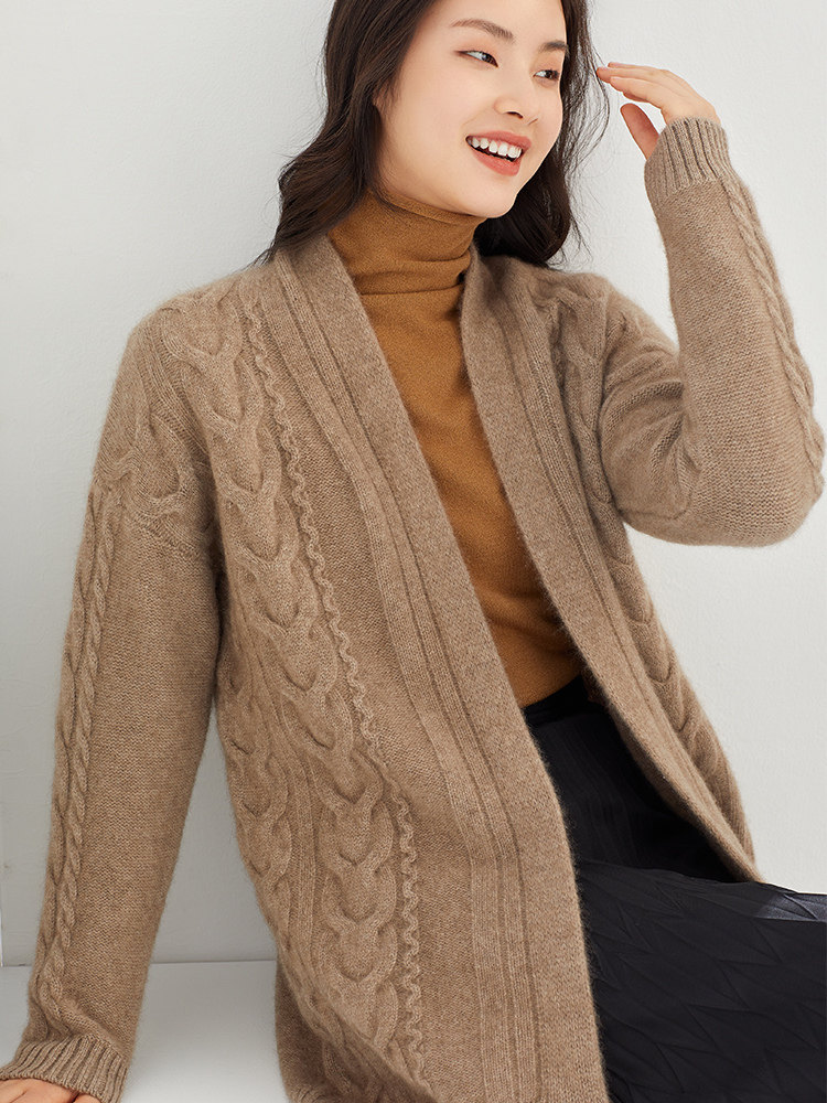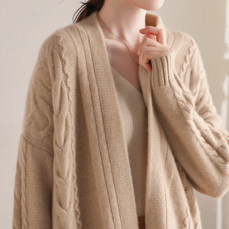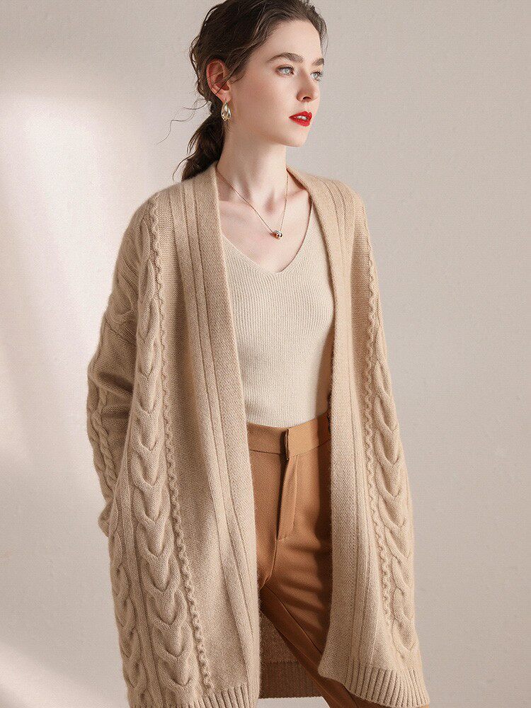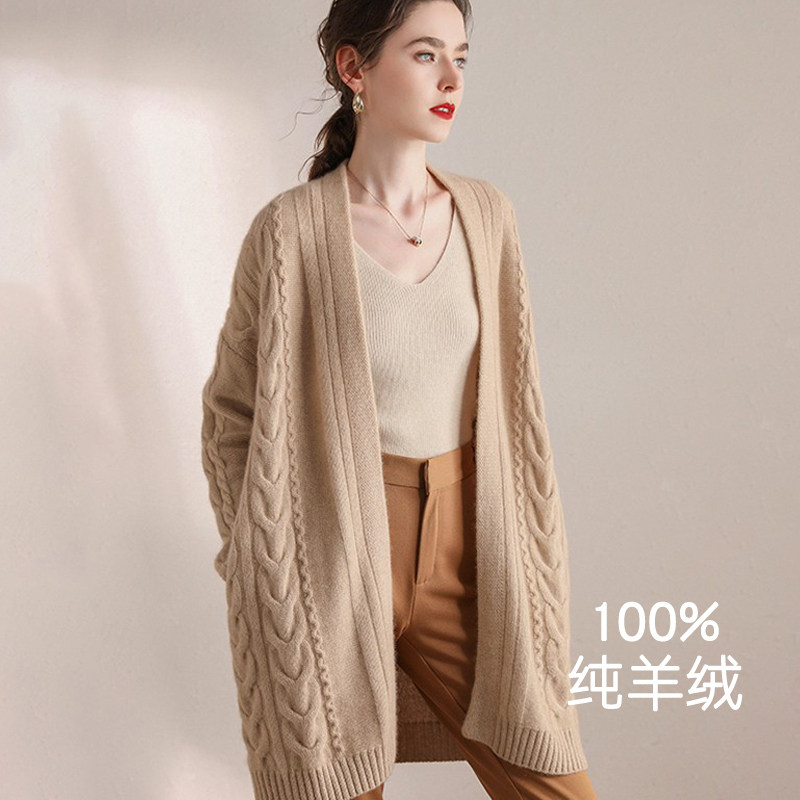 Кашемировый длинный кардиган, свитер, элитная куртка, увеличенная толщина, средней длины