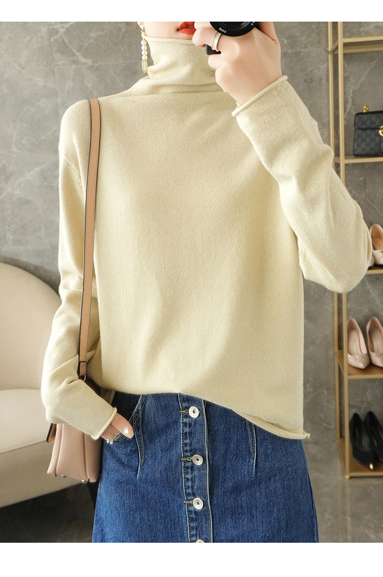 Базовый приятный телу шерстяной свитер, трикотажный лонгслив, высокий воротник, в западном стиле