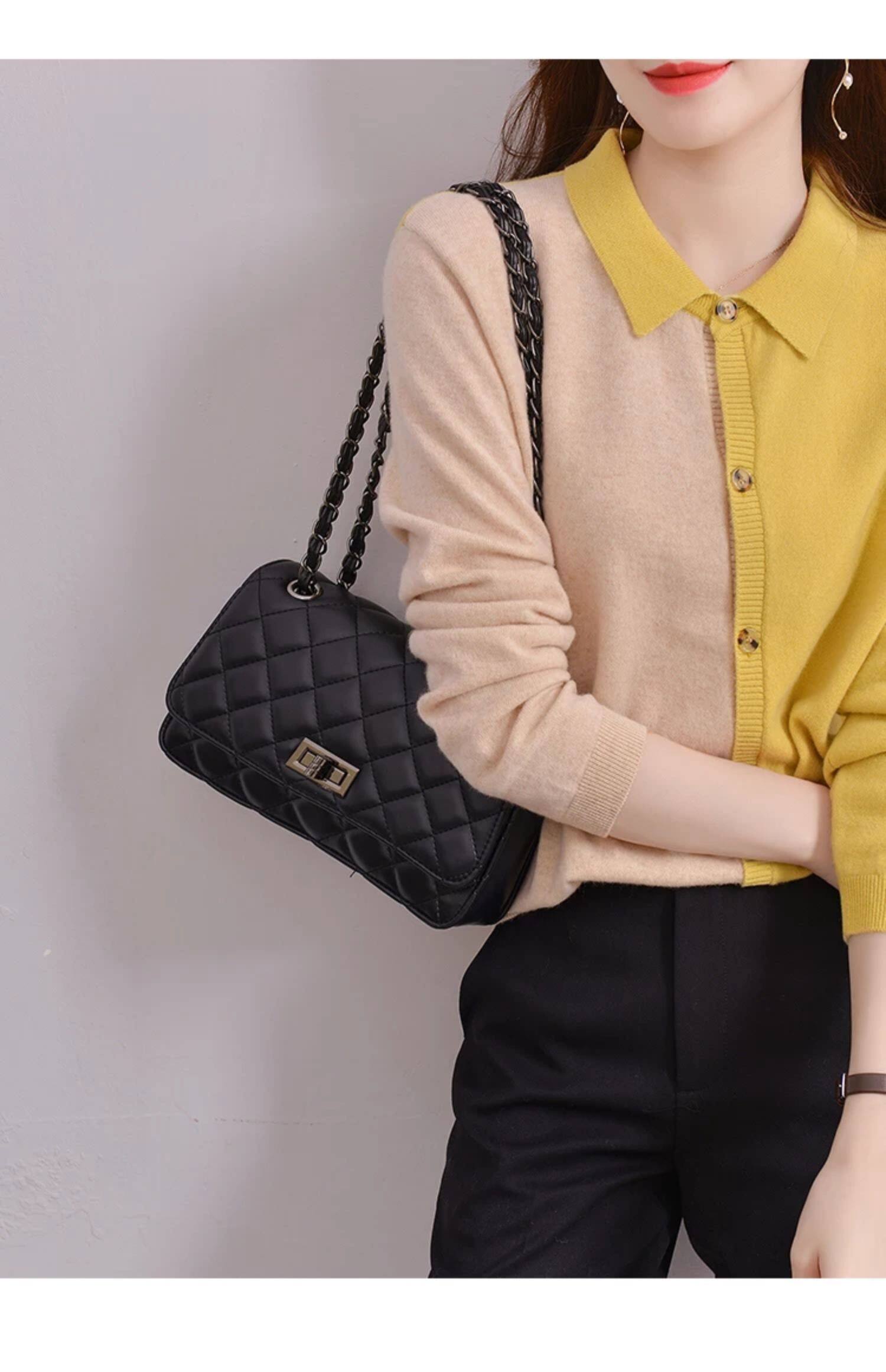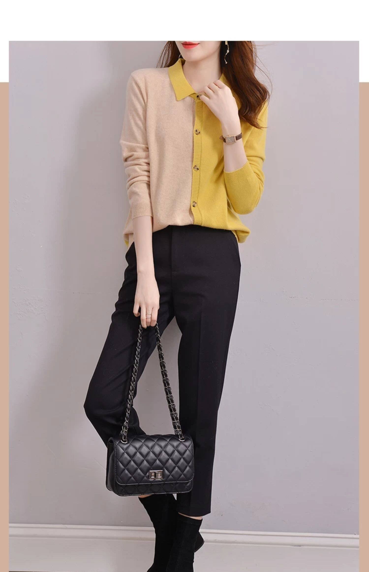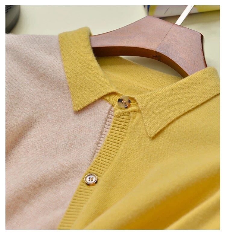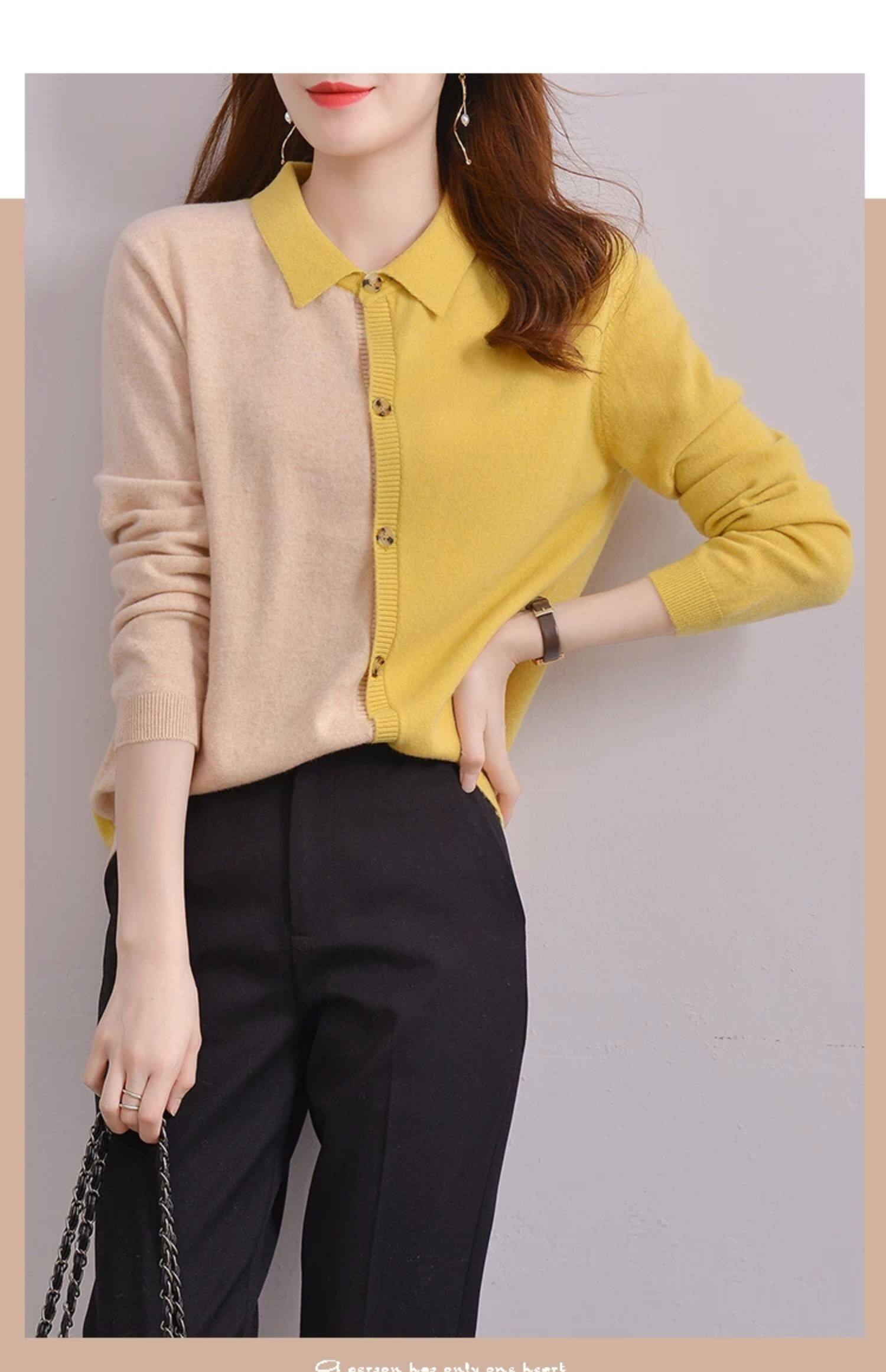 Шерстяной осенний кардиган, базовый лонгслив, свитер, воротник поло, европейский стиль, оверсайз