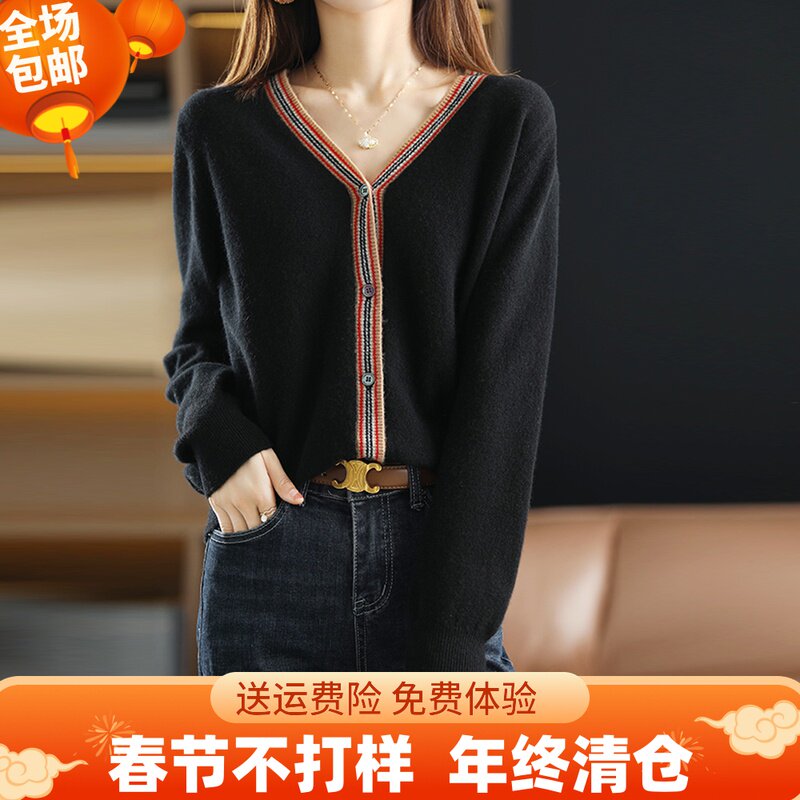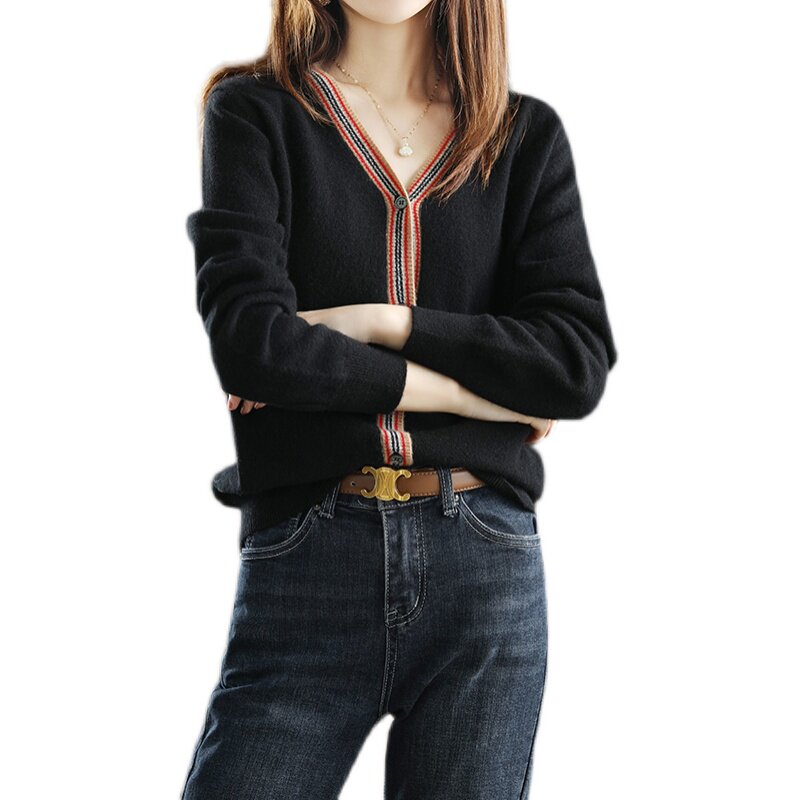 Демисезонный ретро шерстяной кардиган, комфортный базовый приятный телу лонгслив, коллекция 2021, V-образный вырез, свободный крой, большой размер