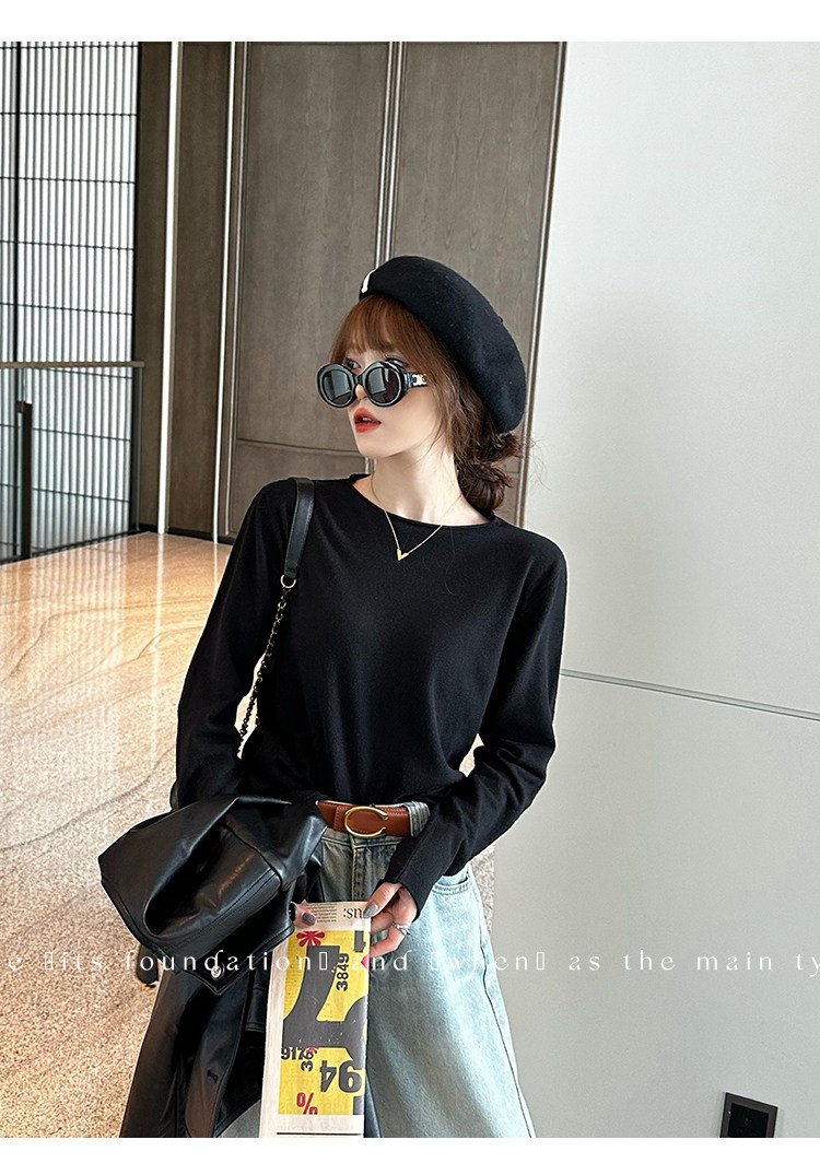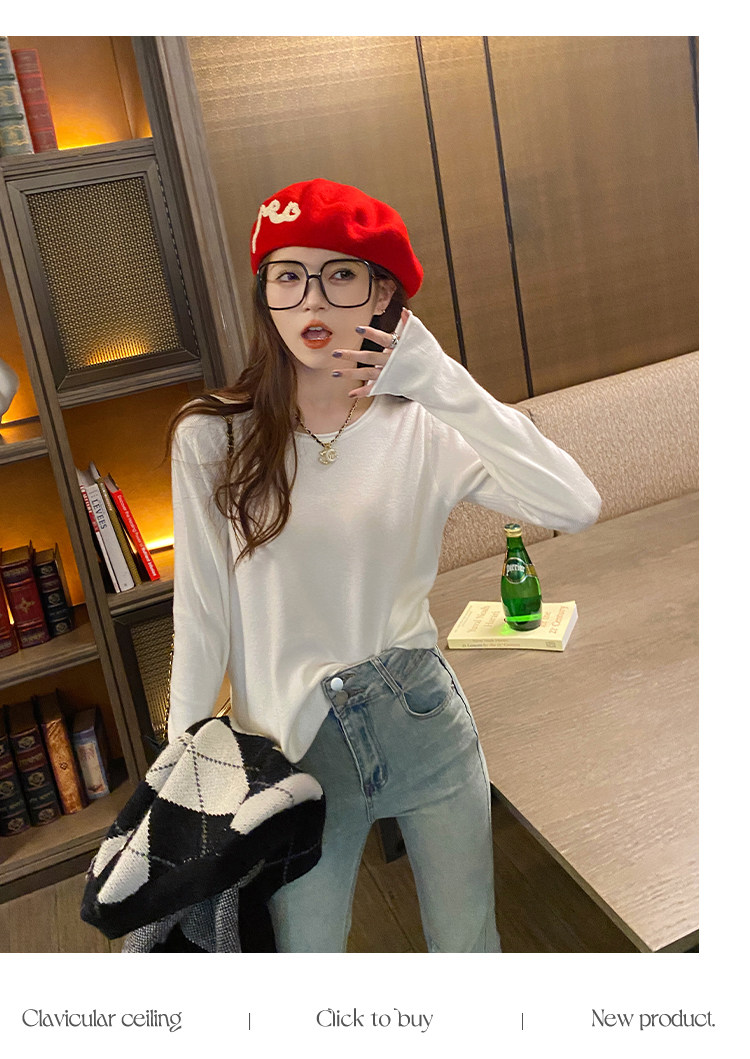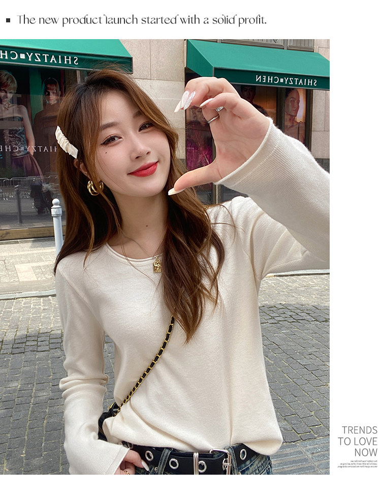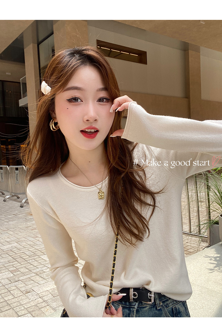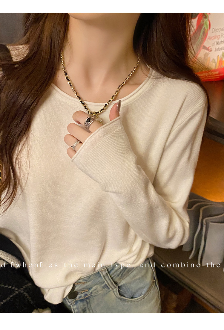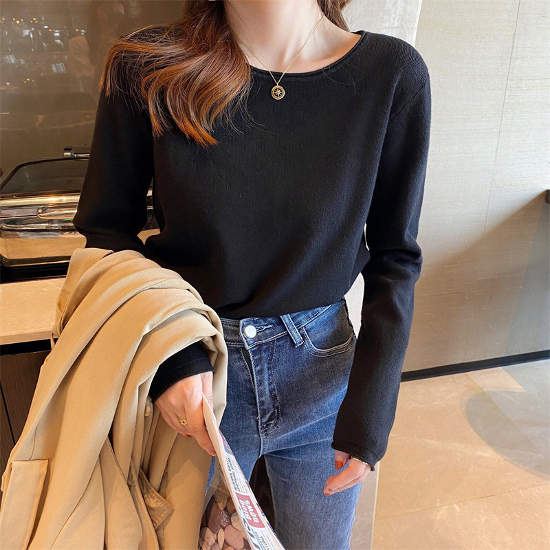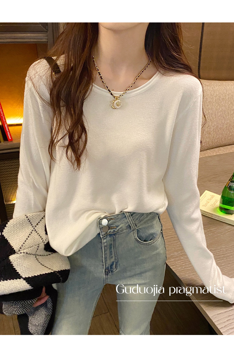 Белый базовый приятный телу осенний лонгслив с круглым воротником, демисезонное термобелье, трикотажный свитер, в стиле Шанель