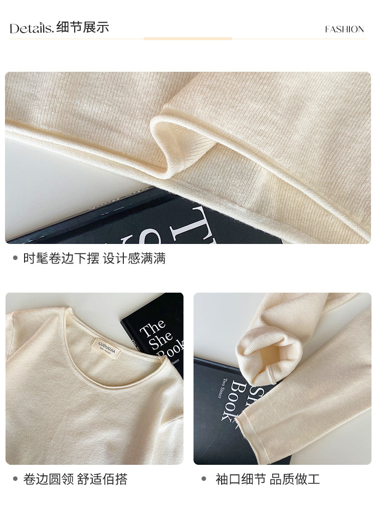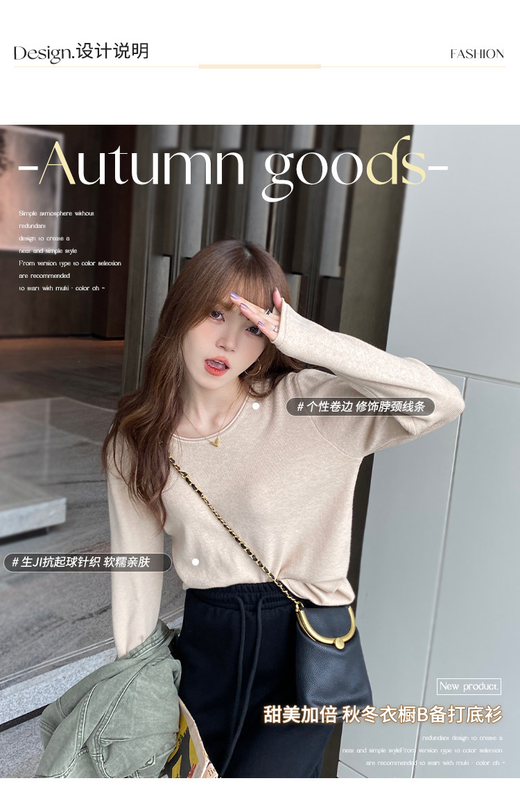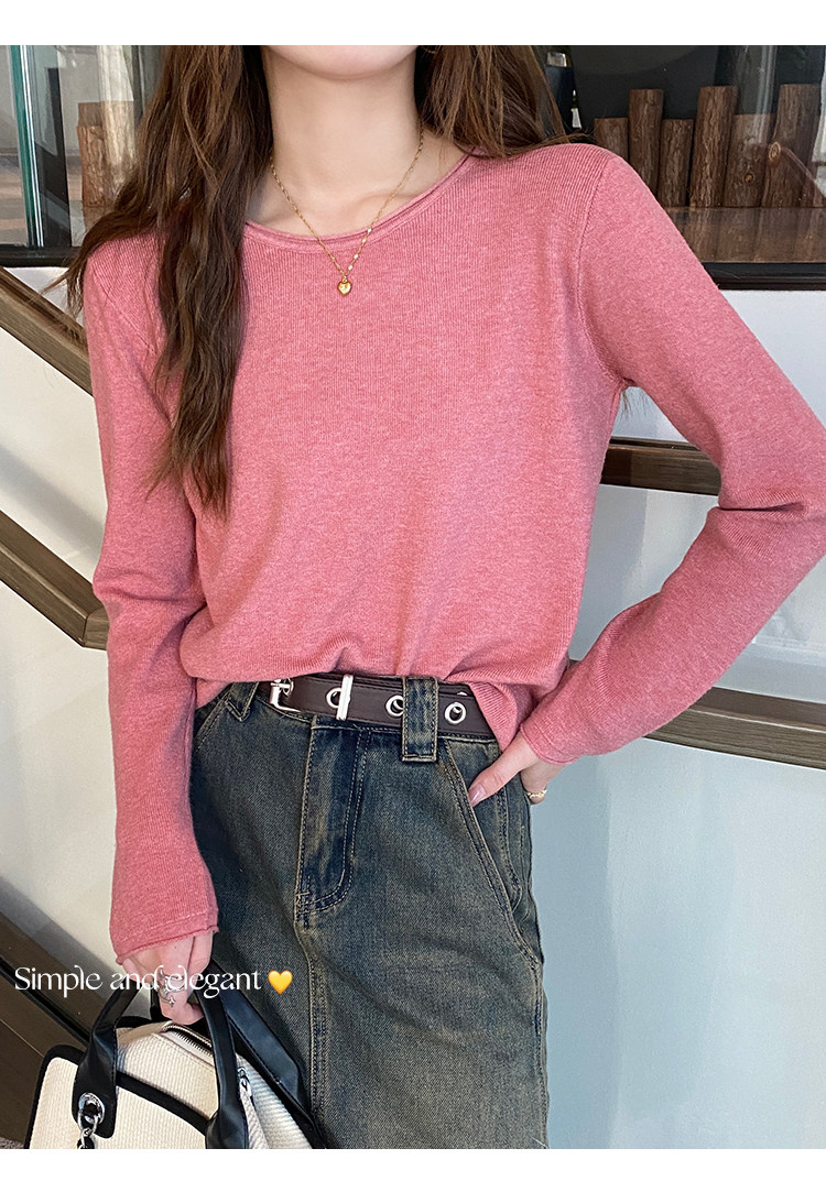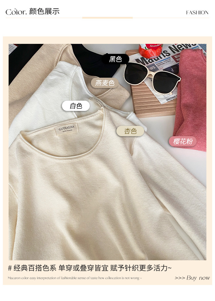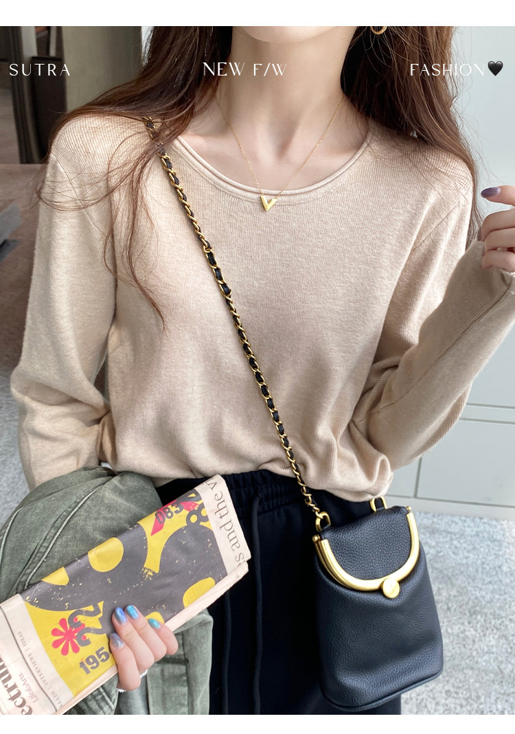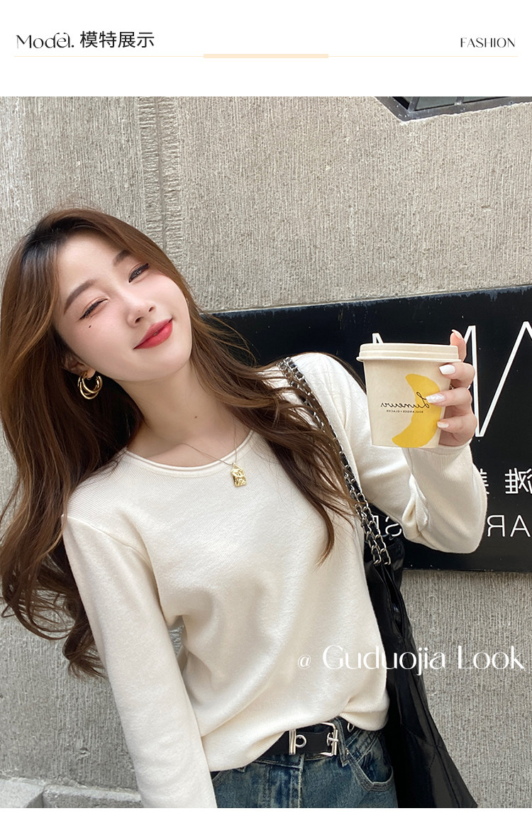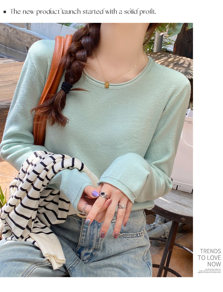 Белый базовый приятный телу осенний лонгслив с круглым воротником, демисезонное термобелье, трикотажный свитер, в стиле Шанель