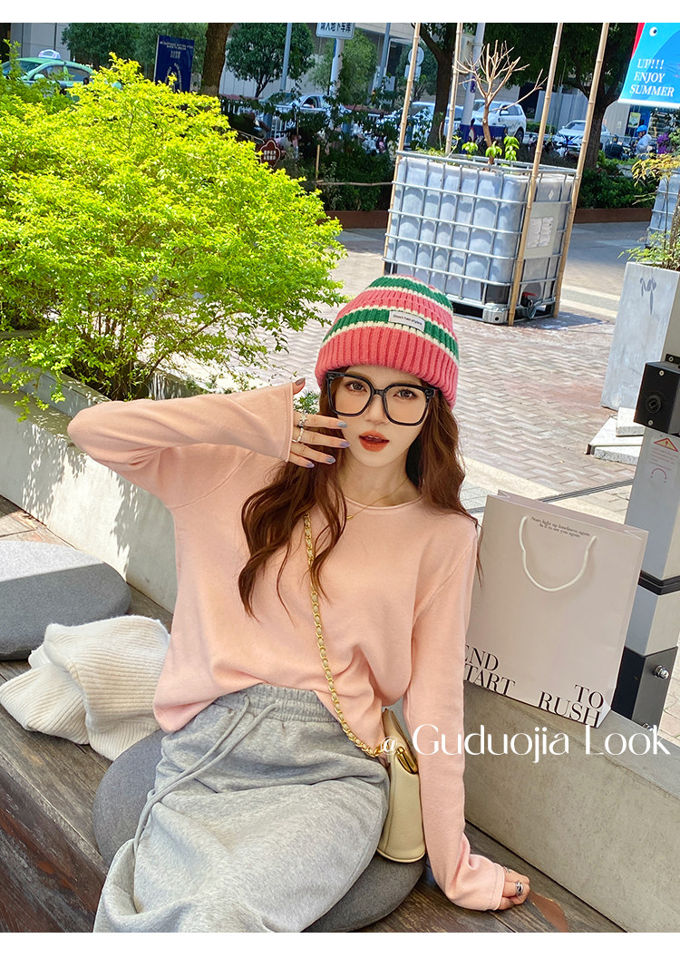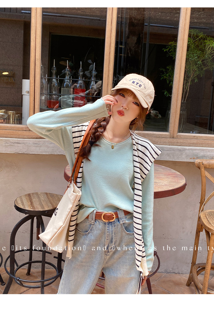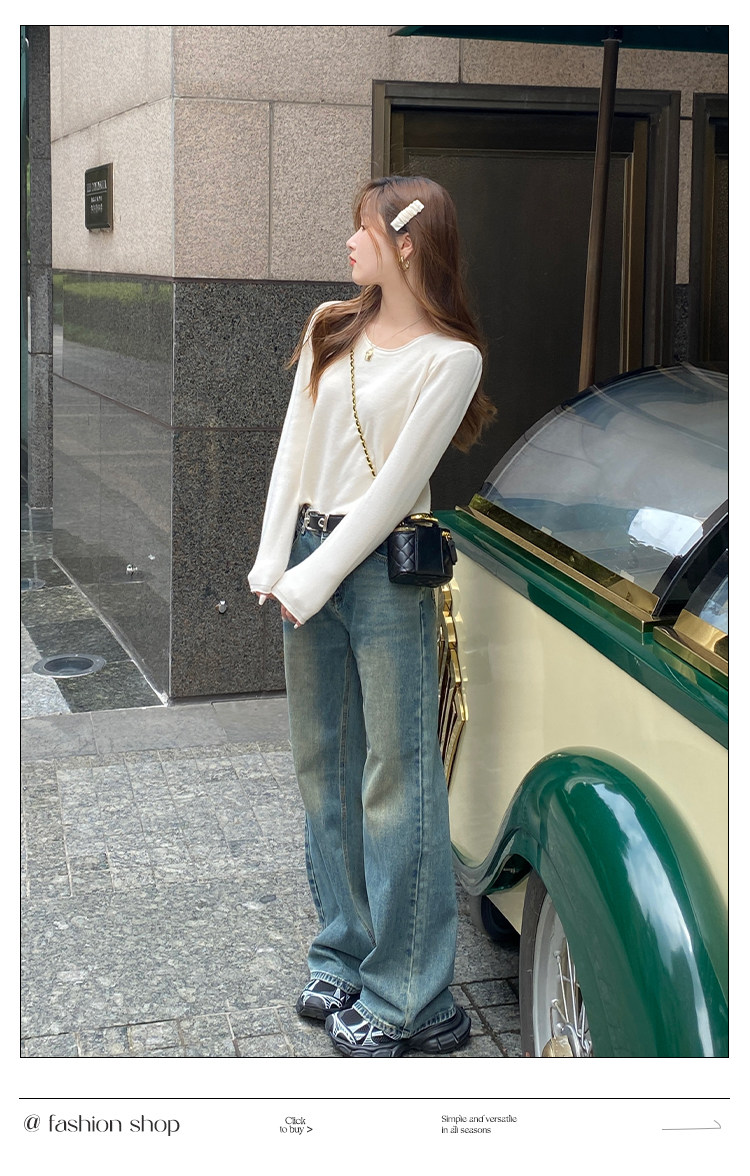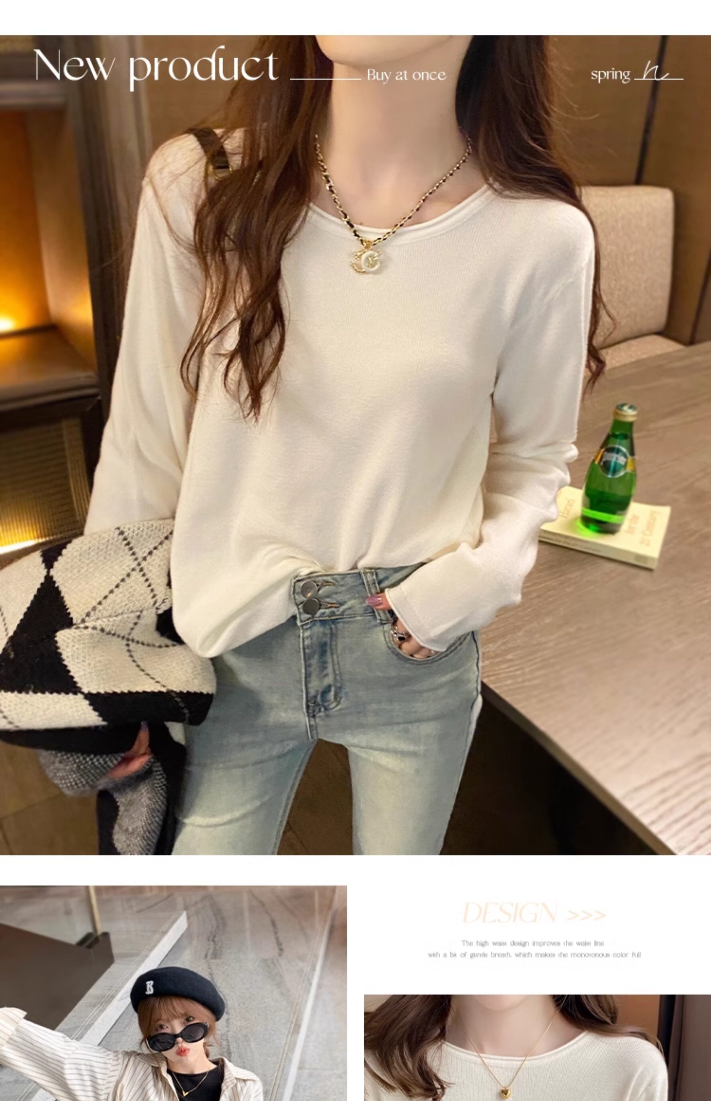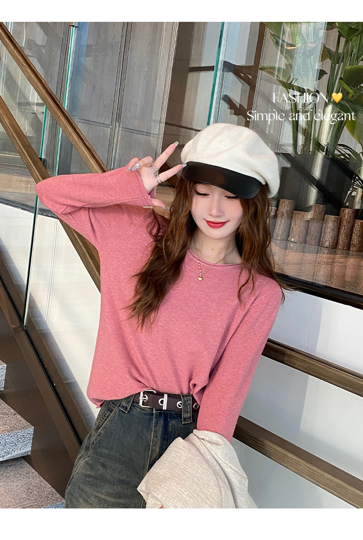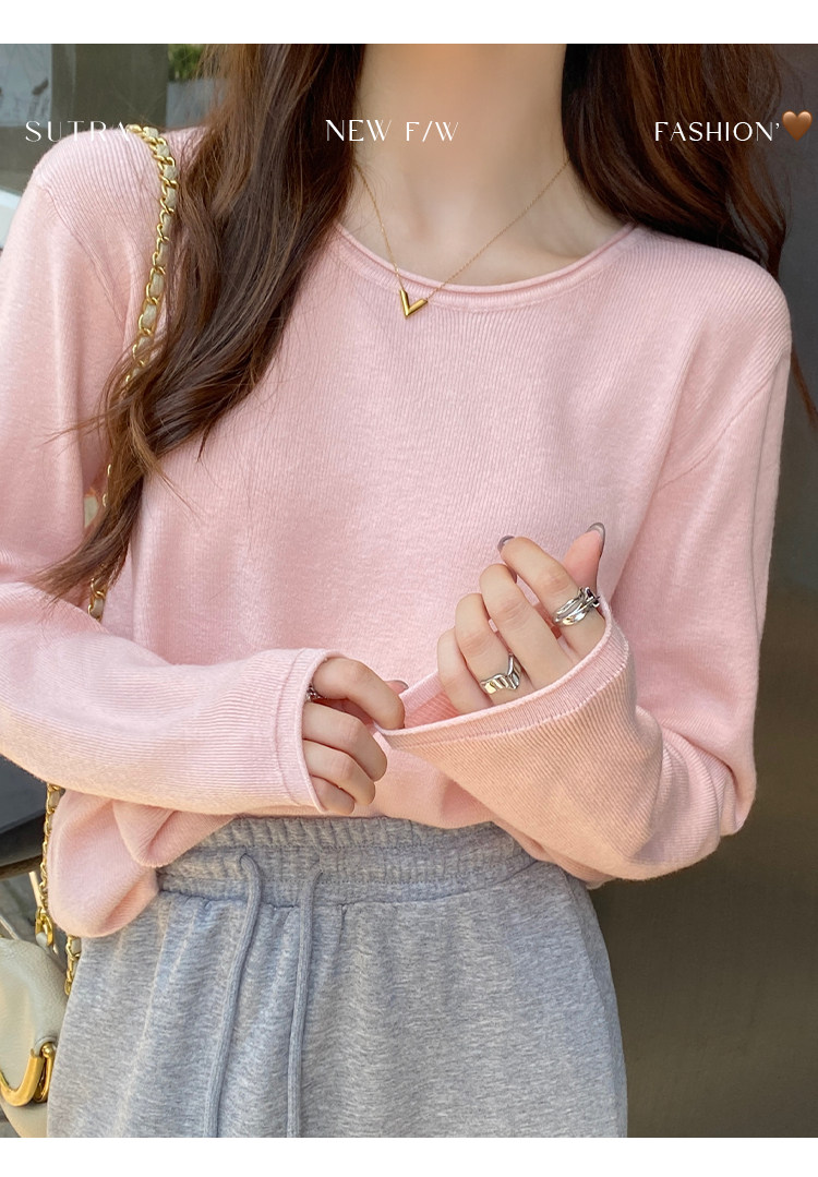Белый базовый приятный телу осенний лонгслив с круглым воротником, демисезонное термобелье, трикотажный свитер, в стиле Шанель