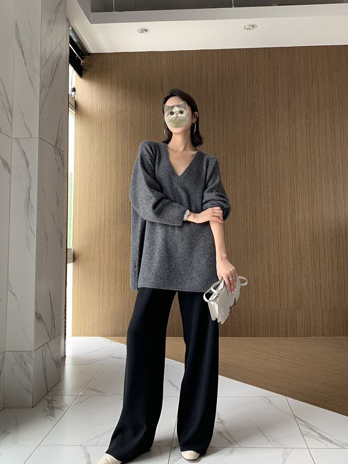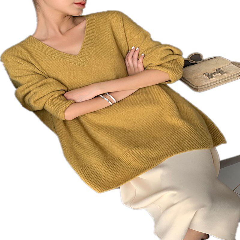 Шерстяной свитер, трикотажный лонгслив, рубашка, V-образный вырез, свободный крой, в западном стиле