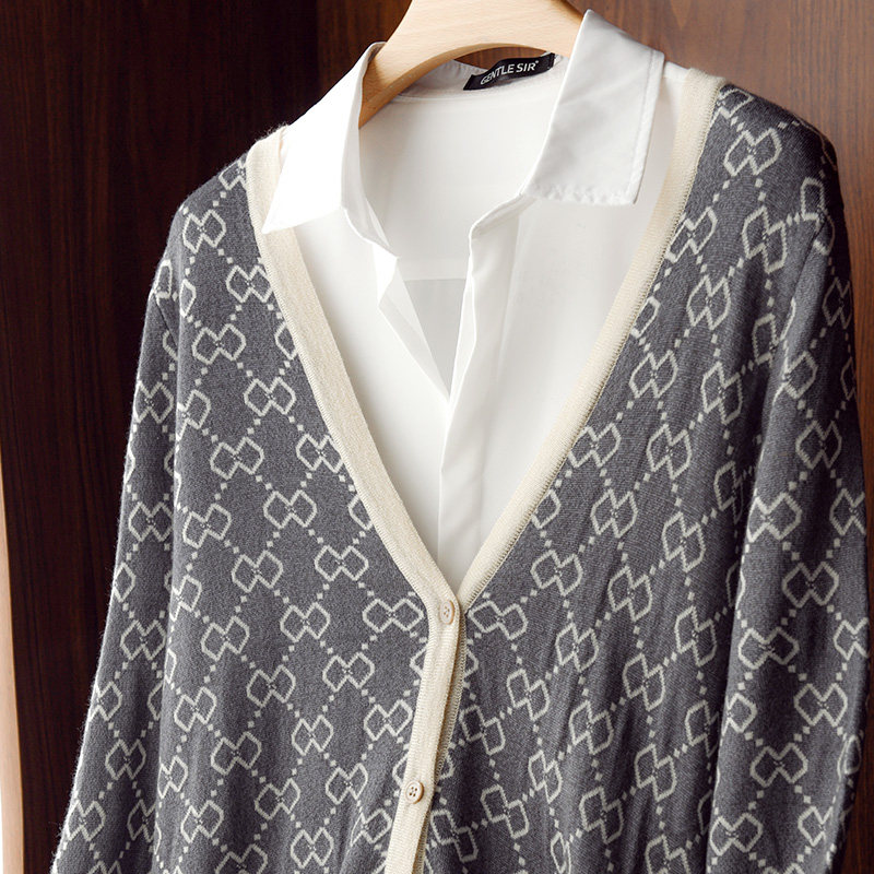 Осенний тонкий кардиган, шерстяной лонгслив, куртка, V-образный вырез, оверсайз