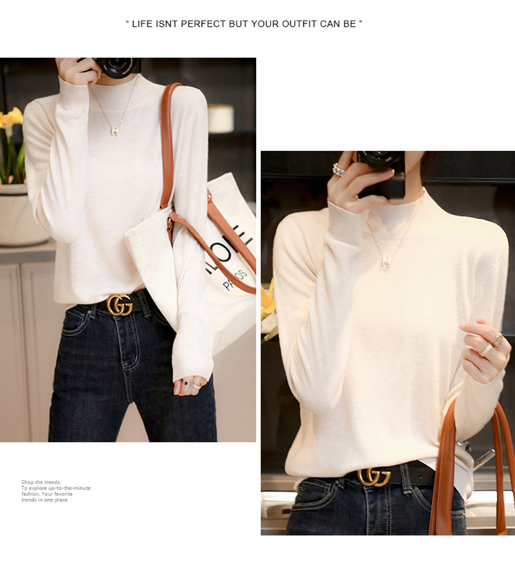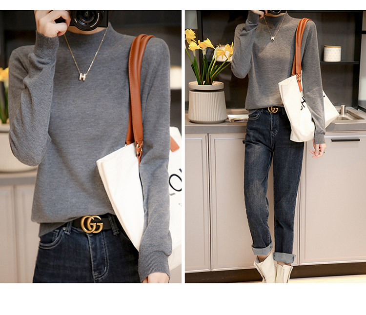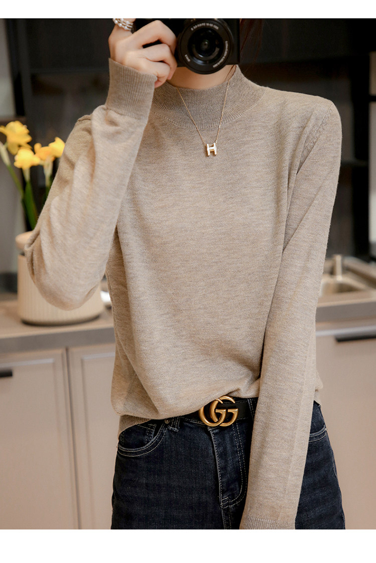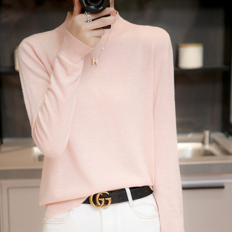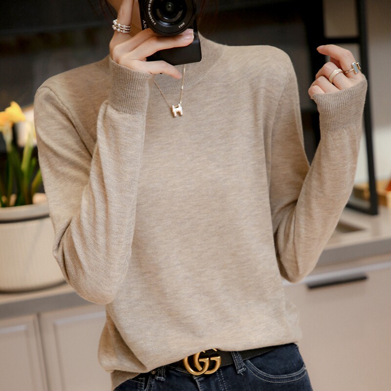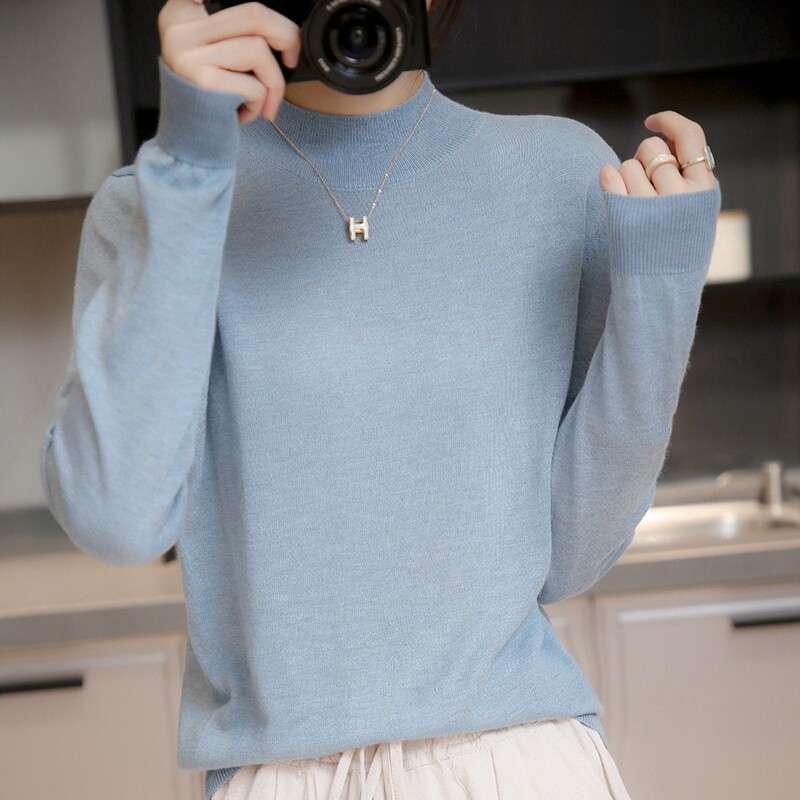 Базовый приятный телу тонкий трикотажный лонгслив, осенний шерстяной свитер, высокий воротник, коллекция 2021