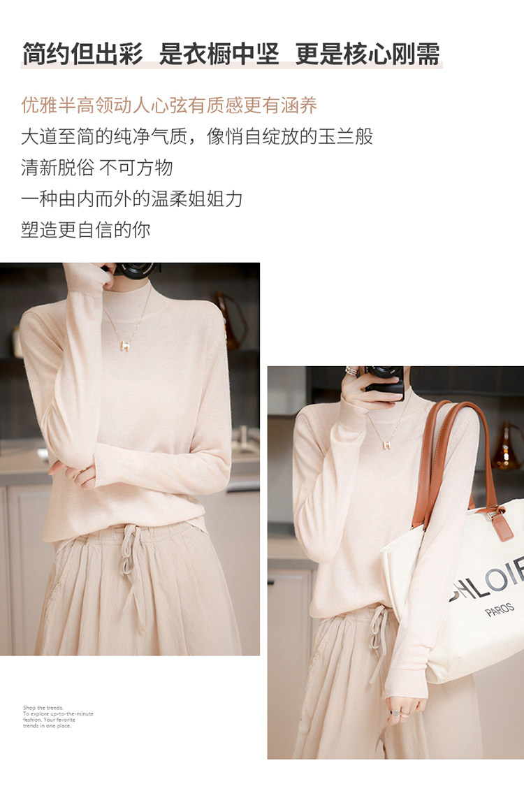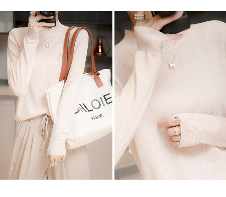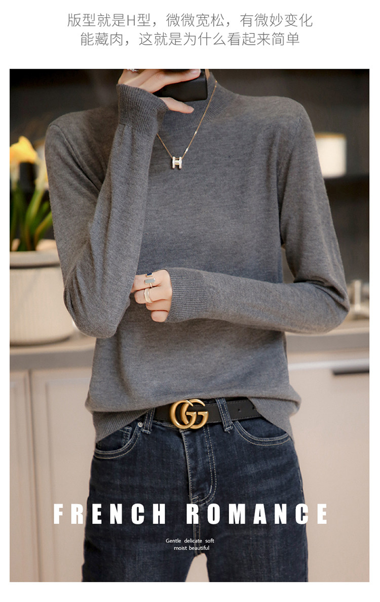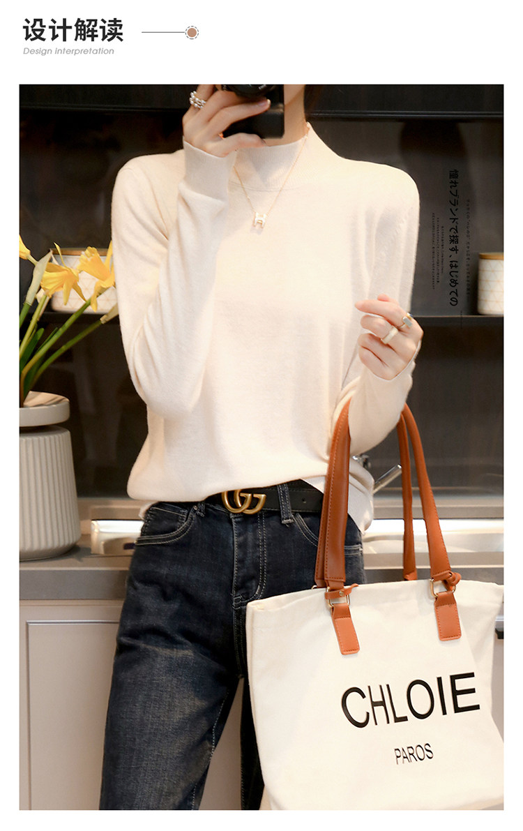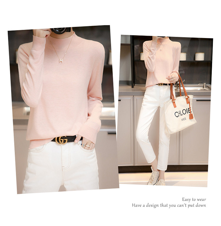 Базовый приятный телу тонкий трикотажный лонгслив, осенний шерстяной свитер, высокий воротник, коллекция 2021