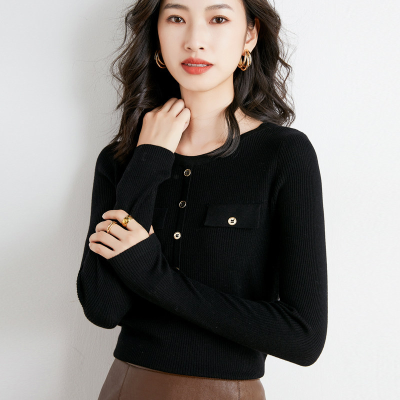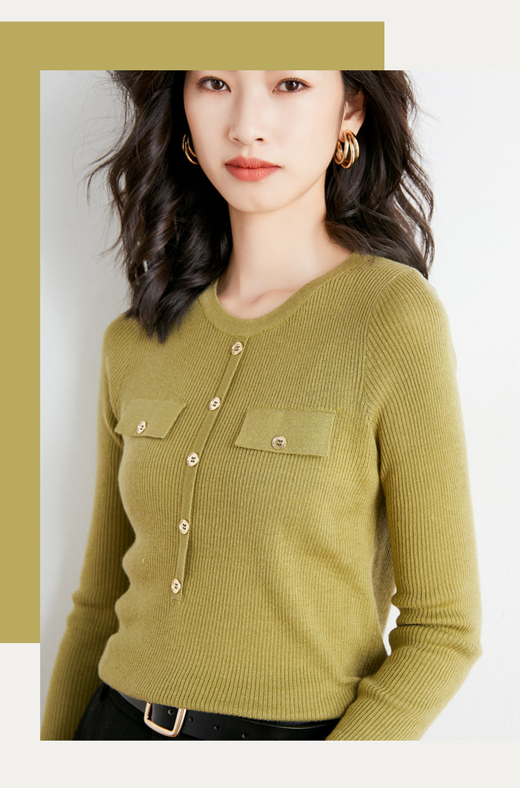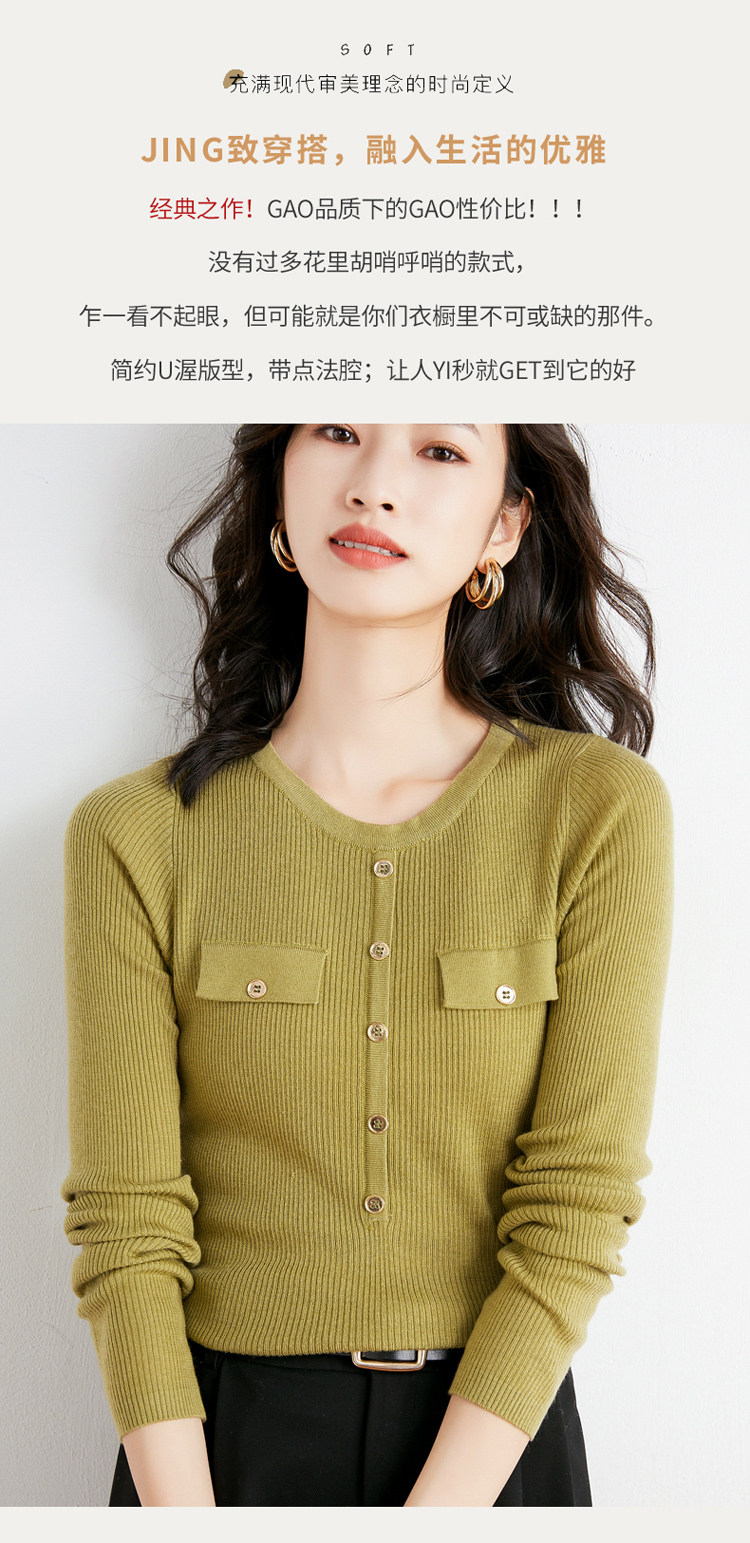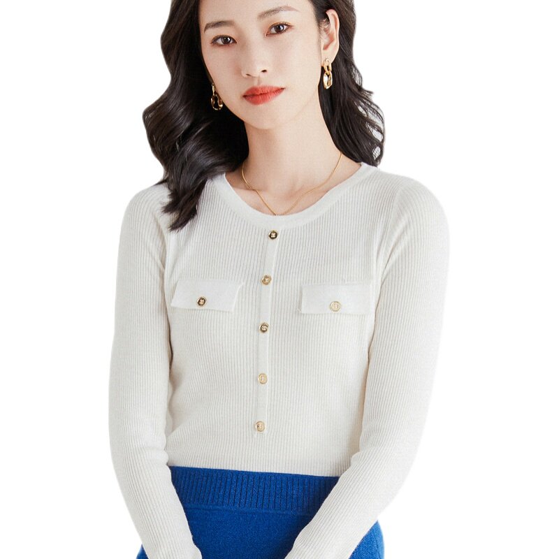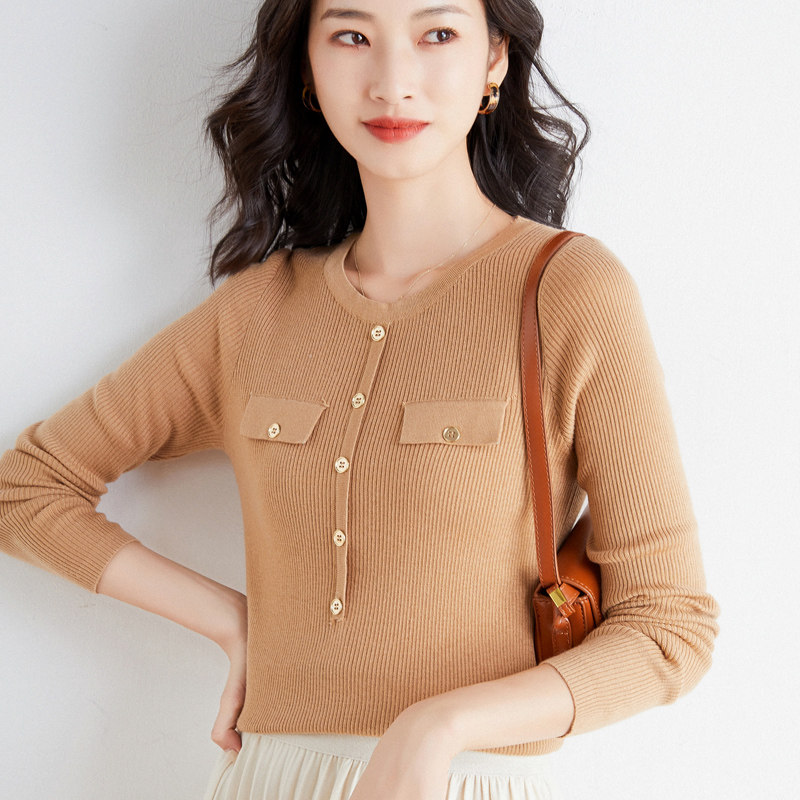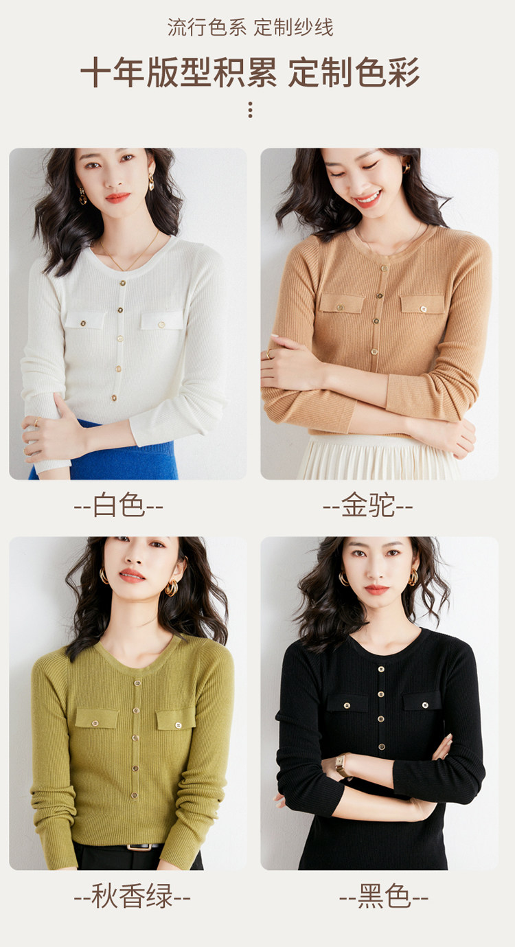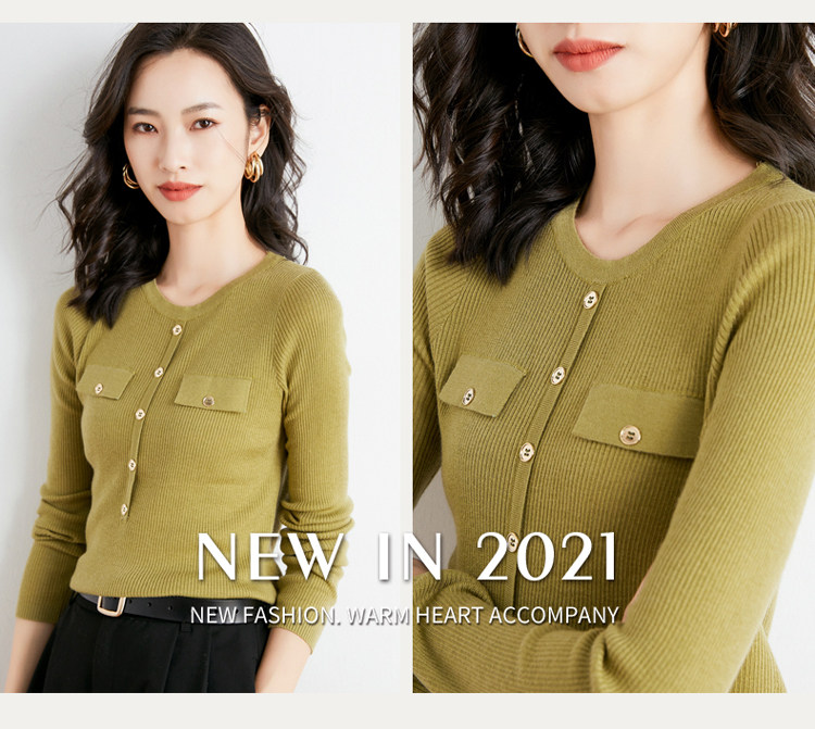 Шерстяной осенний лонгслив с круглым воротником, базовый свитер, куртка, коллекция 2021