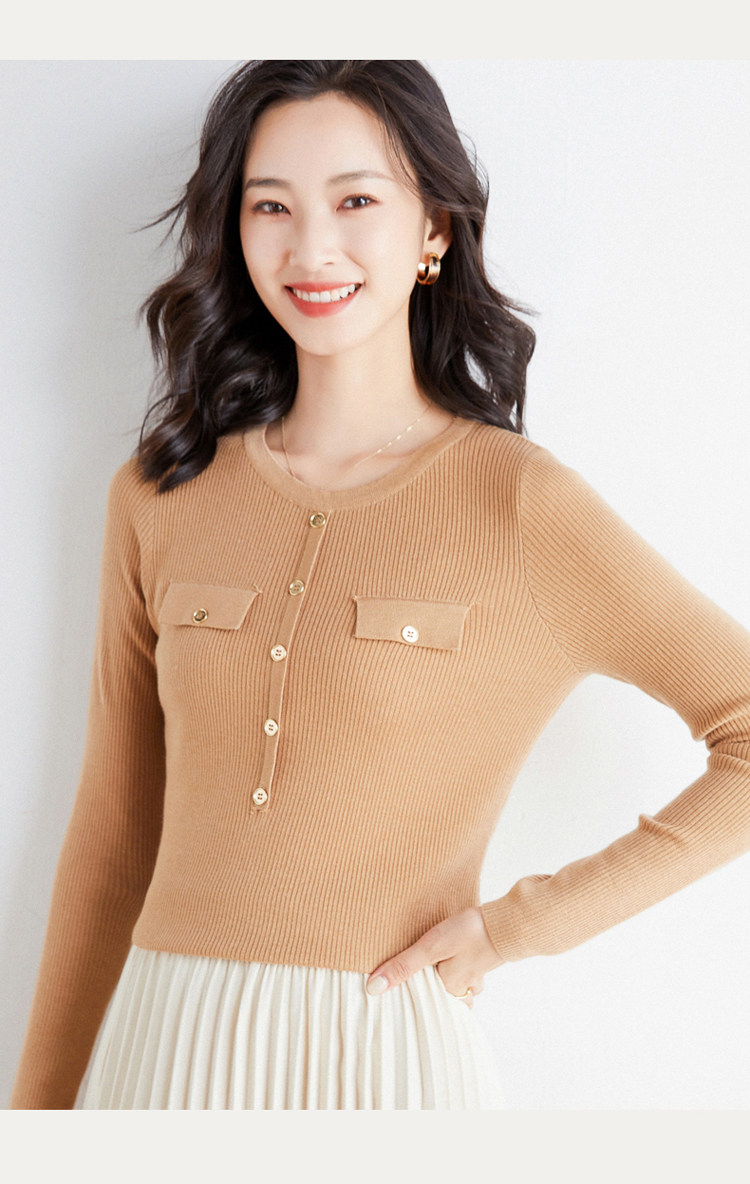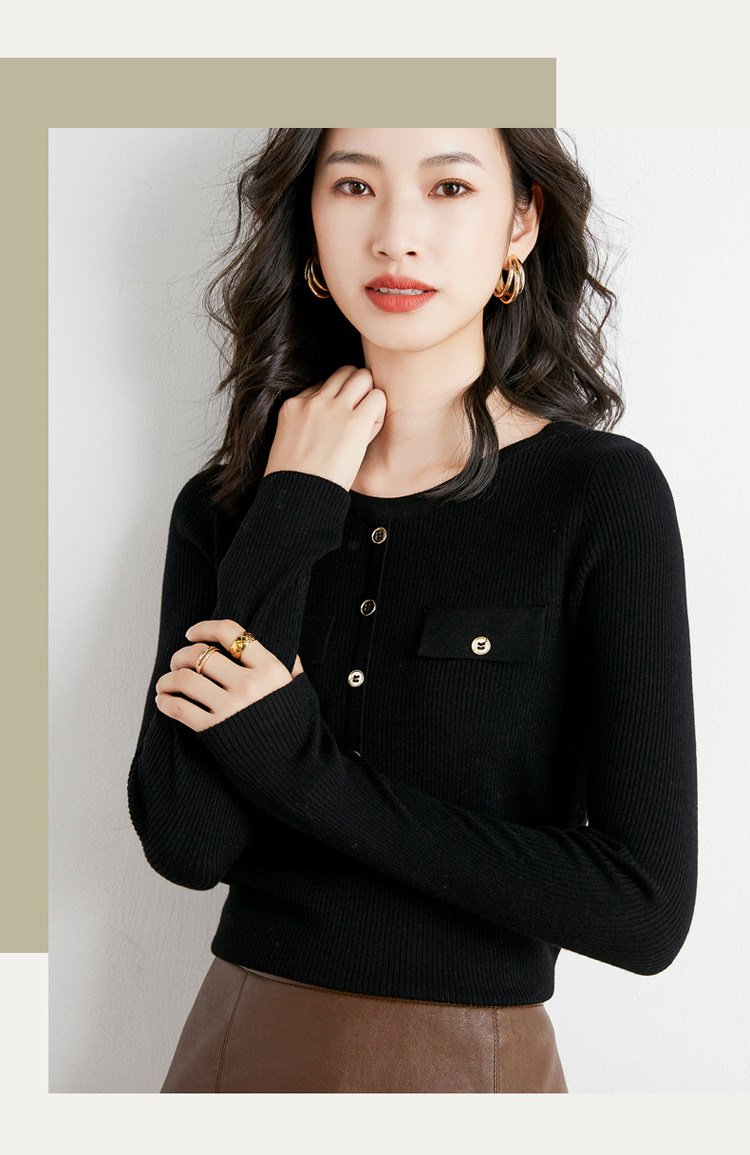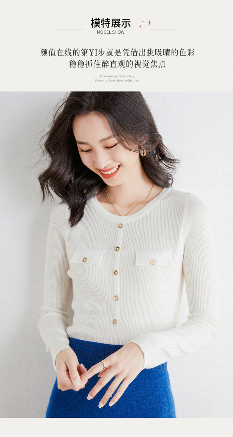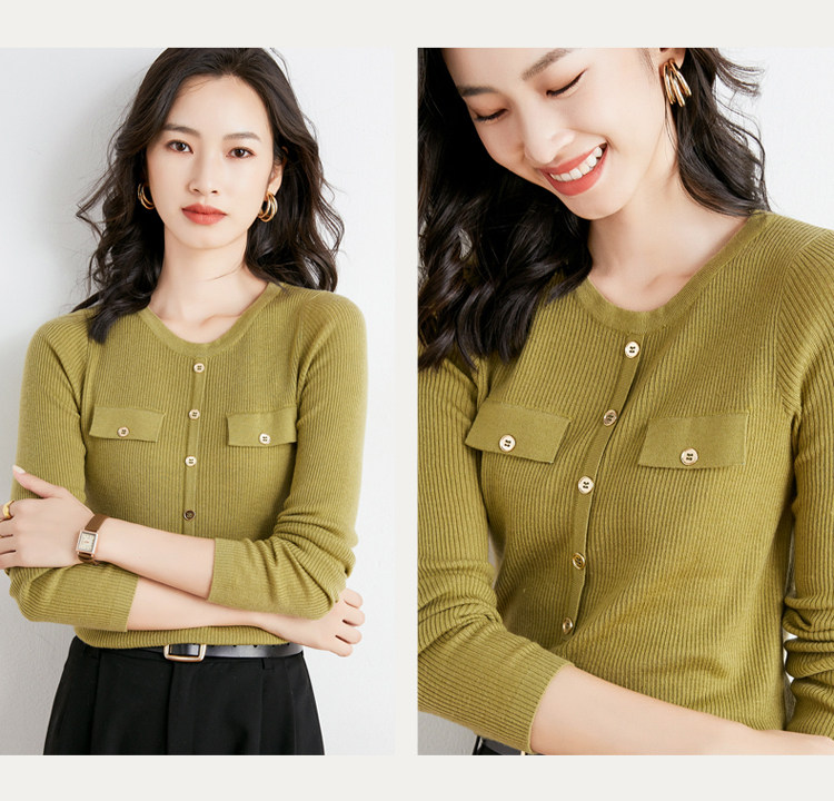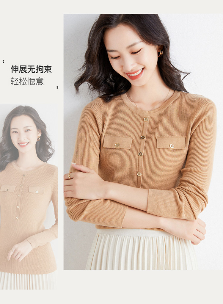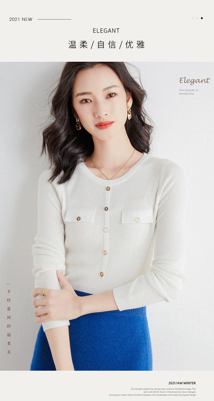 Шерстяной осенний лонгслив с круглым воротником, базовый свитер, куртка, коллекция 2021