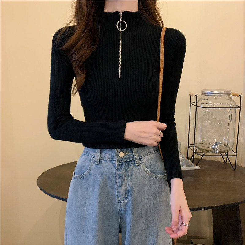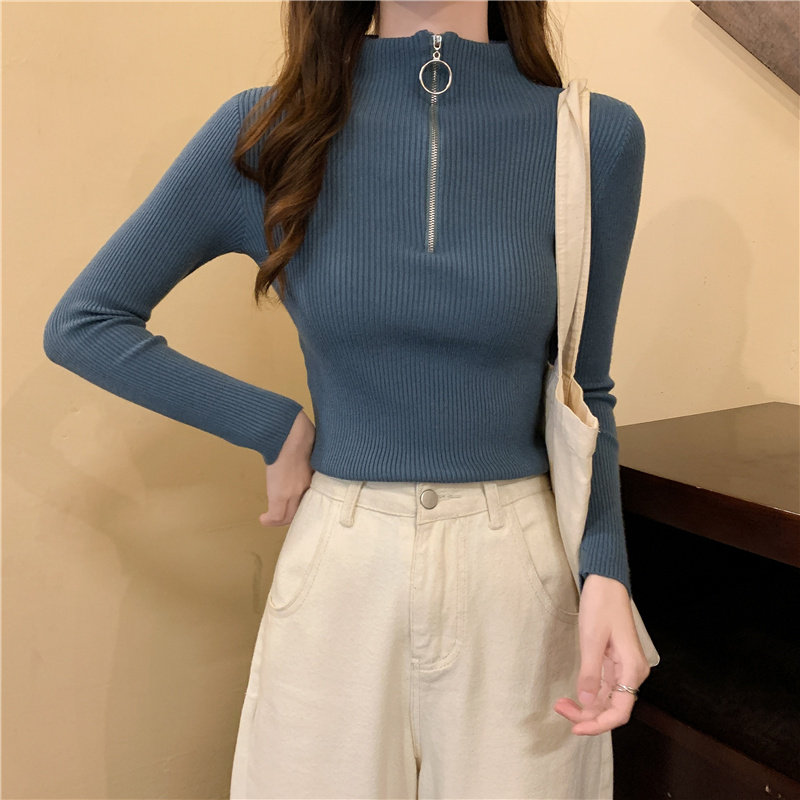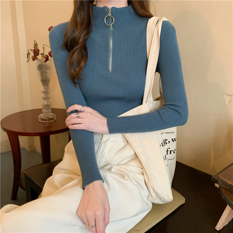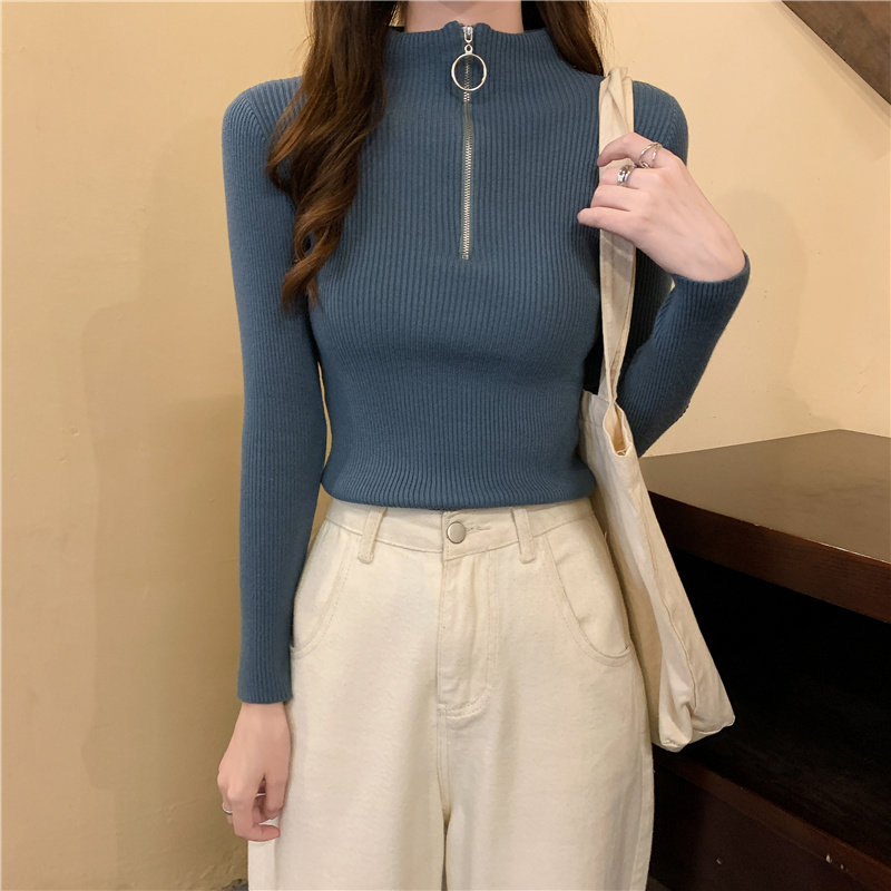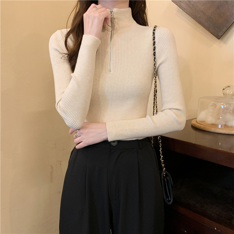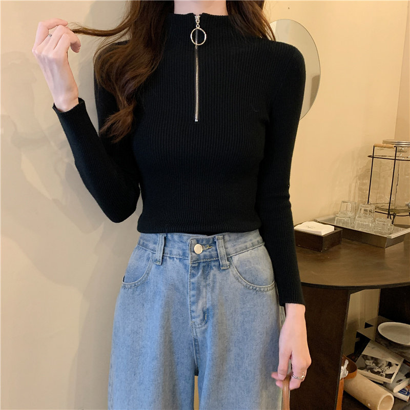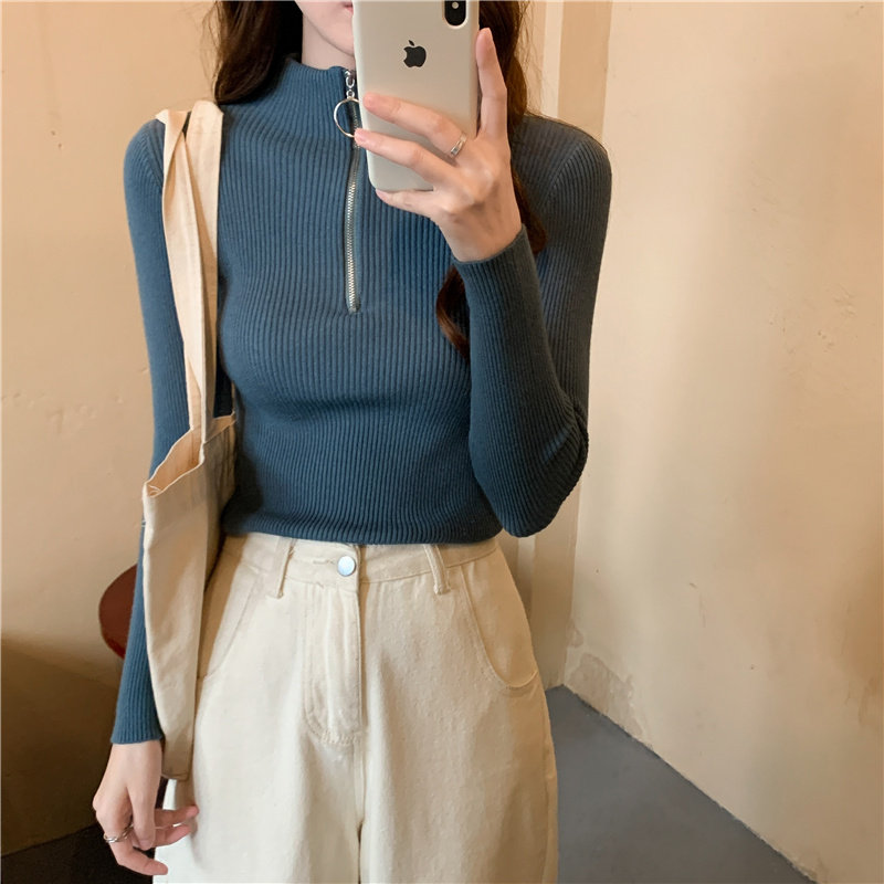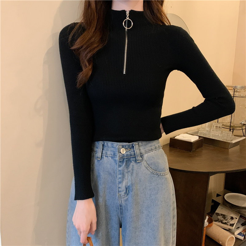 Тонкий трикотажный лонгслив, свитер, демисезонное дизайнерское термобелье, высокий воротник, тренд сезона, в западном стиле