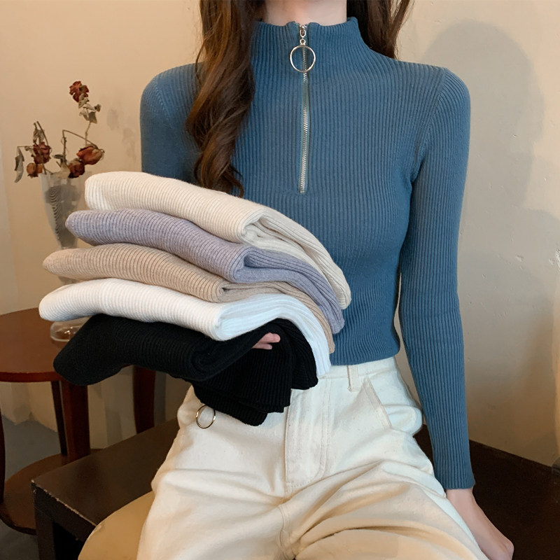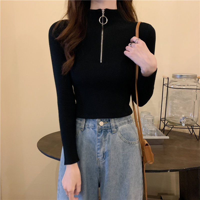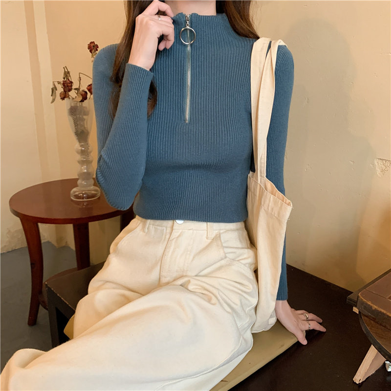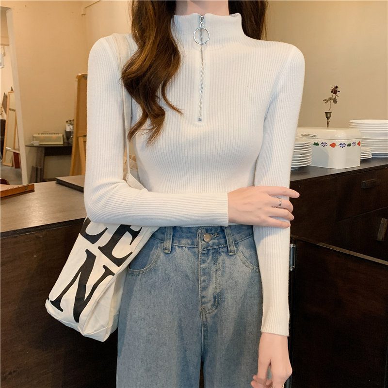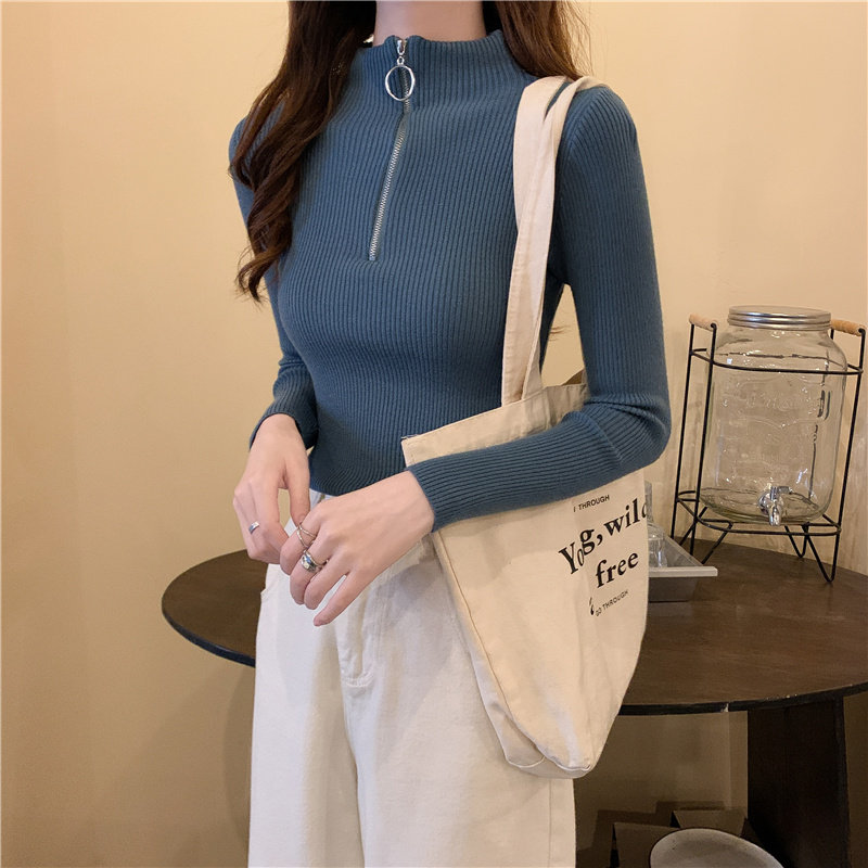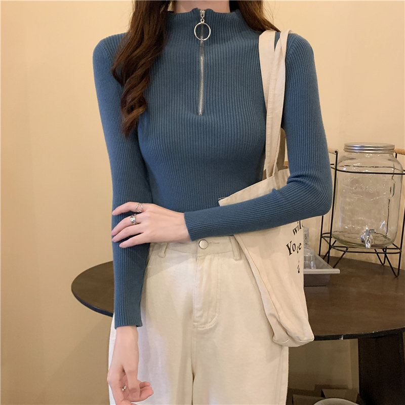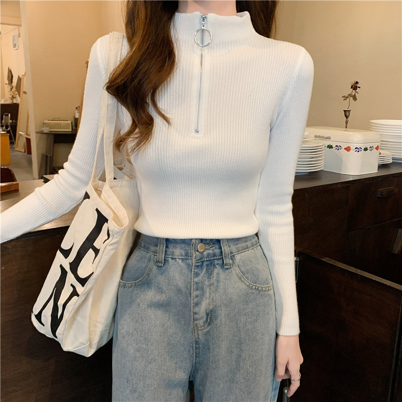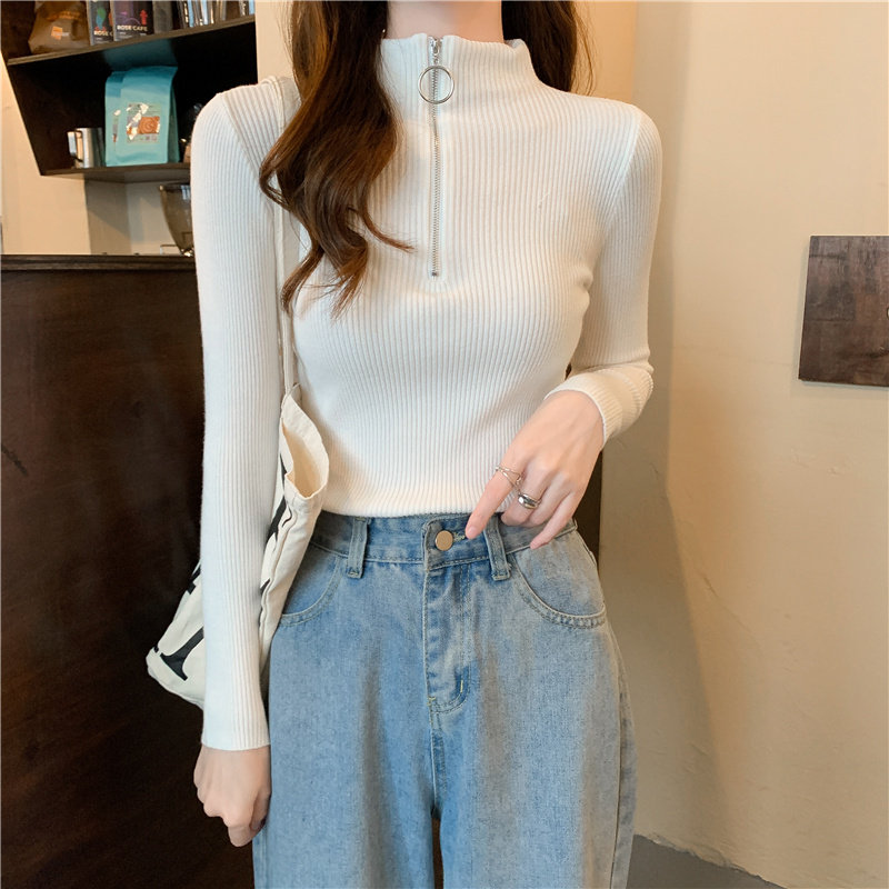 Тонкий трикотажный лонгслив, свитер, демисезонное дизайнерское термобелье, высокий воротник, тренд сезона, в западном стиле